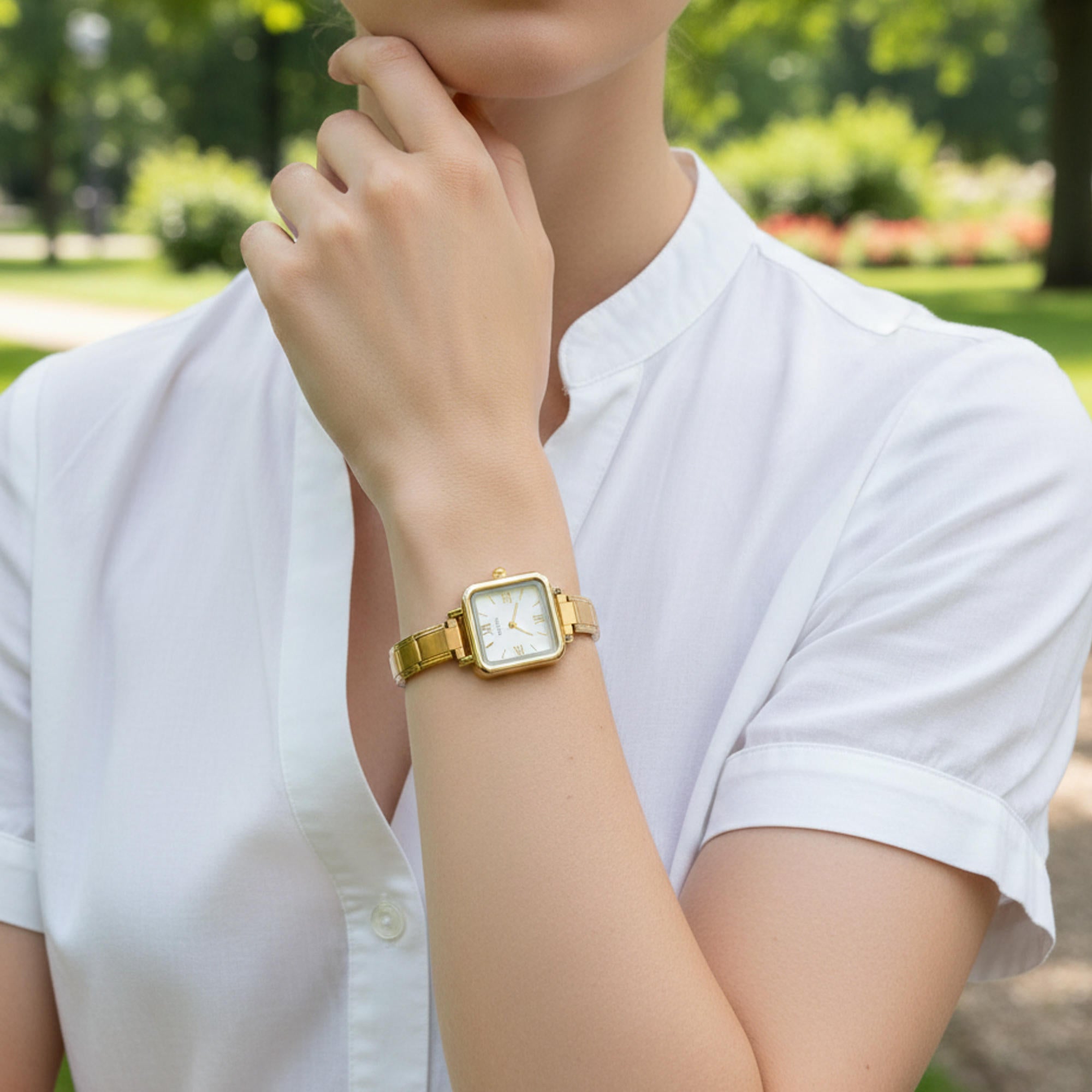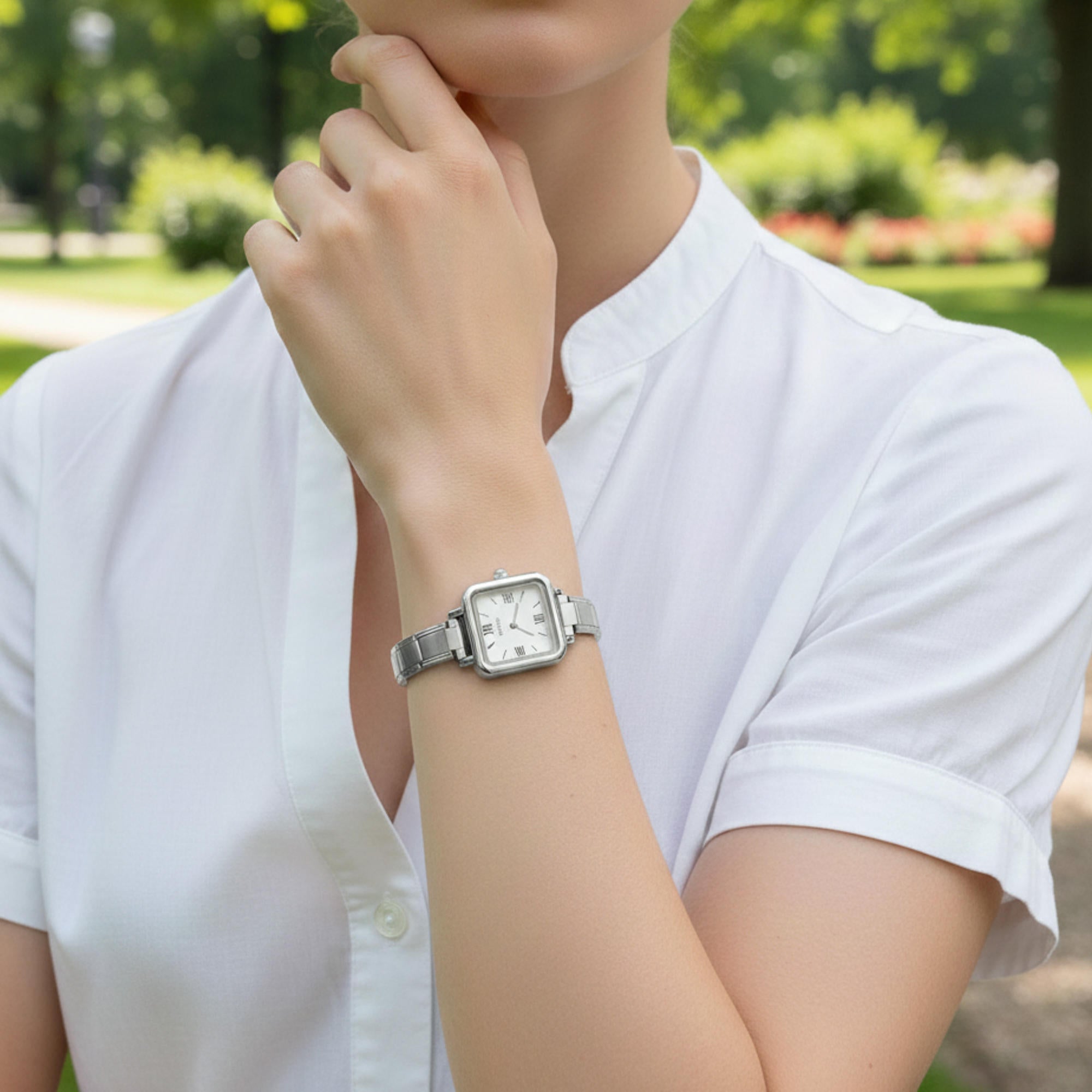 Reloj ajustable con eslabon italiano y caratula cuadrada 23mm