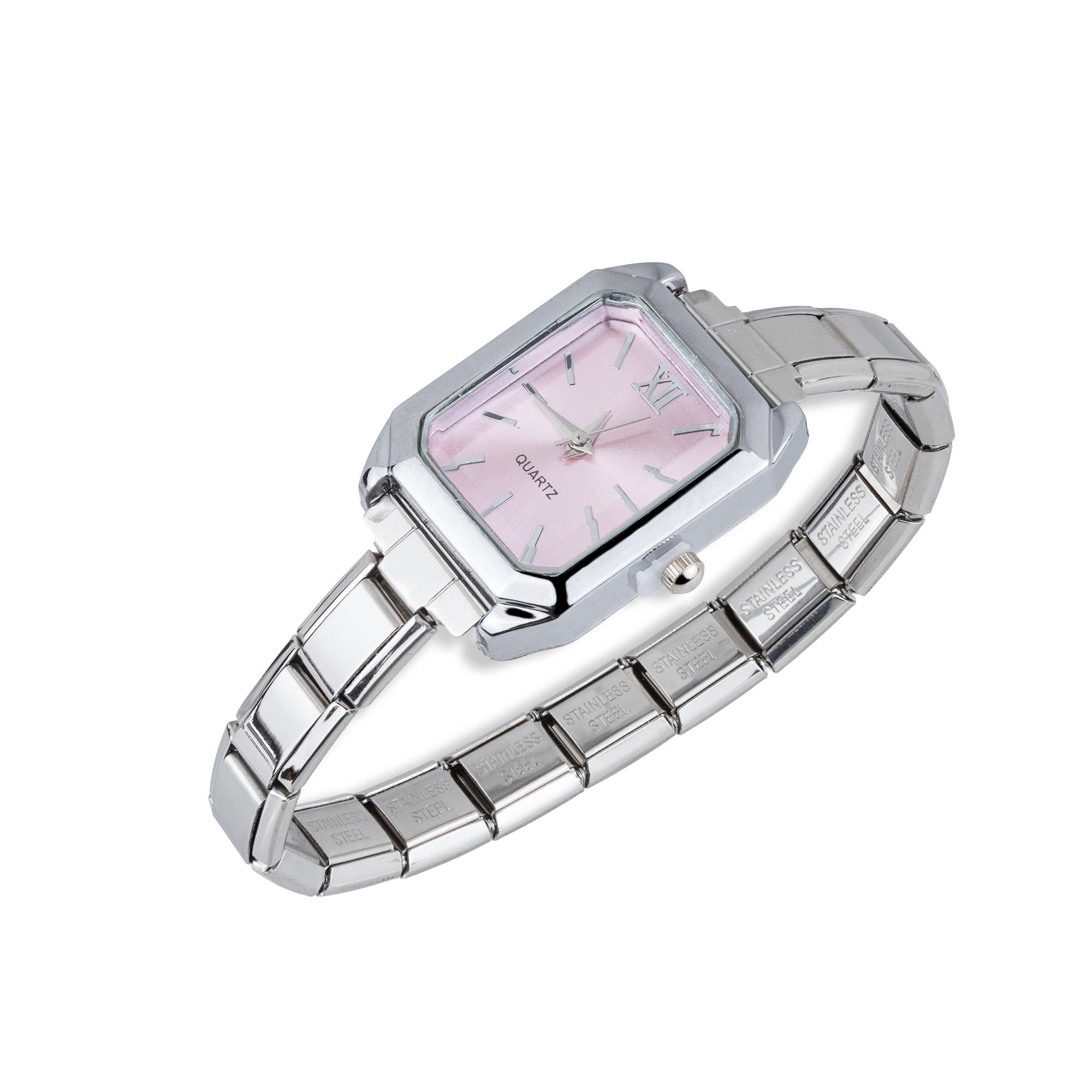Reloj ajustable eslabon italiano y caratula rectangular rosa 23mm