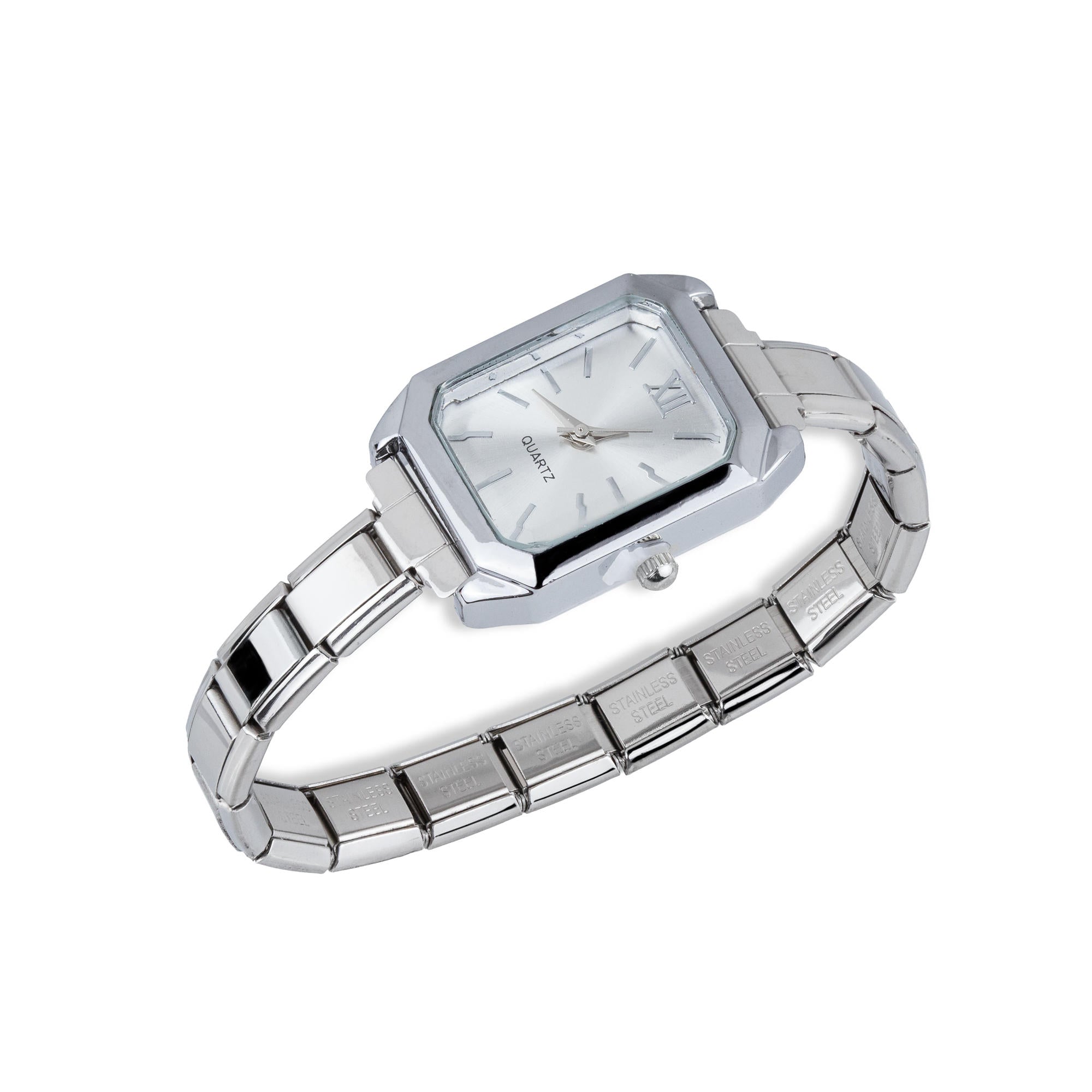 Reloj ajustable eslabon italiano y caratula rectangular gris 23mm