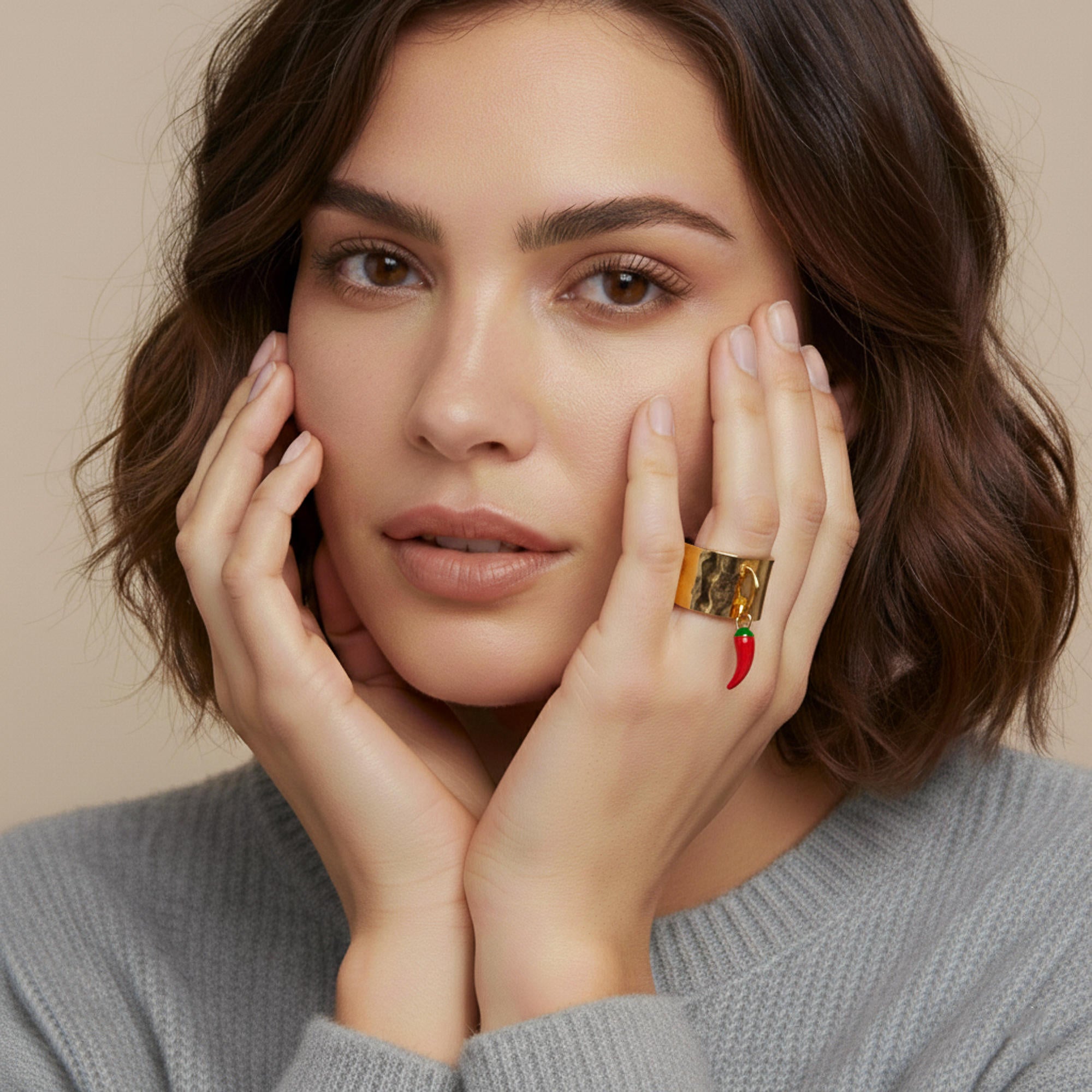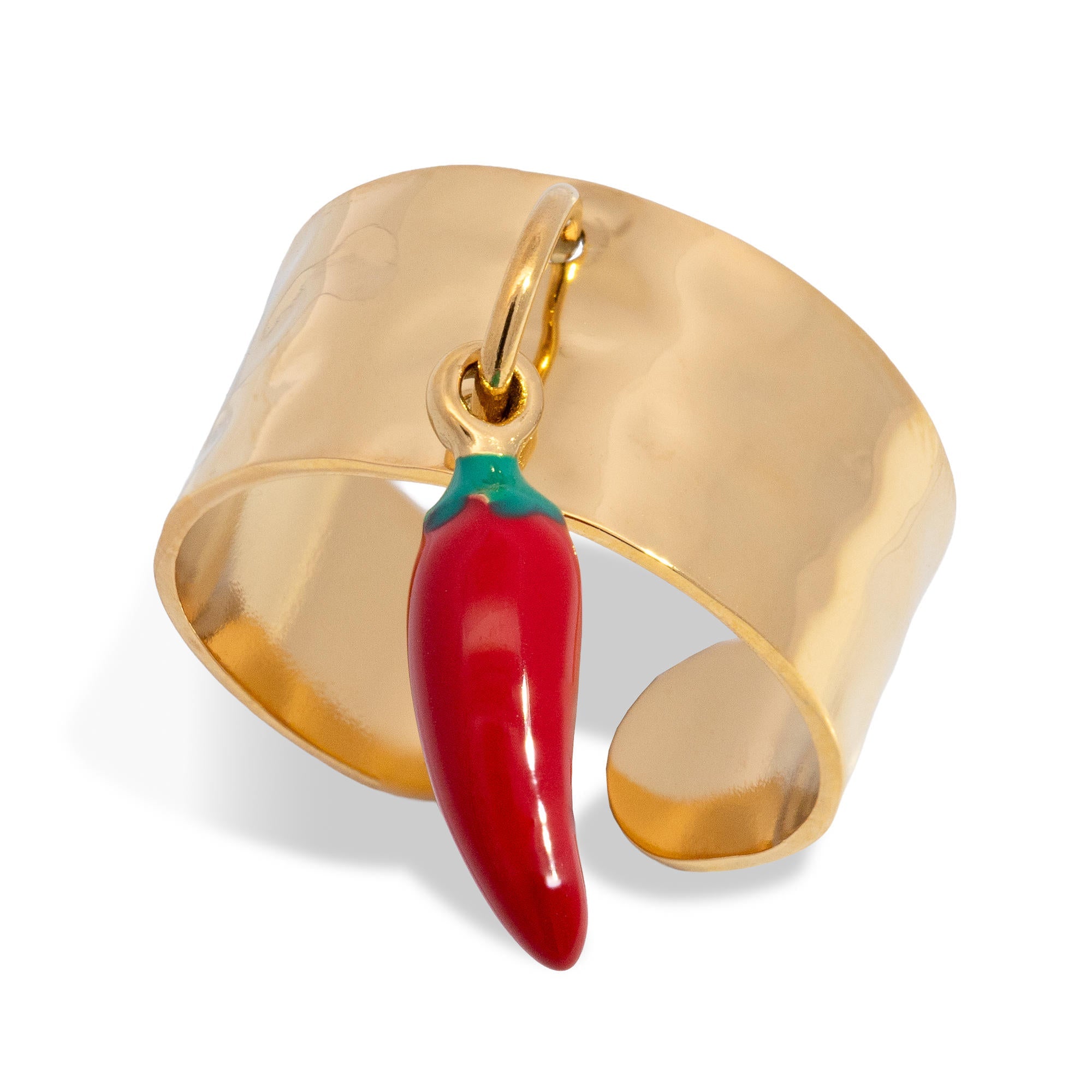 Anillo ajustable martillado con dije de chile esmaltado 10mm
