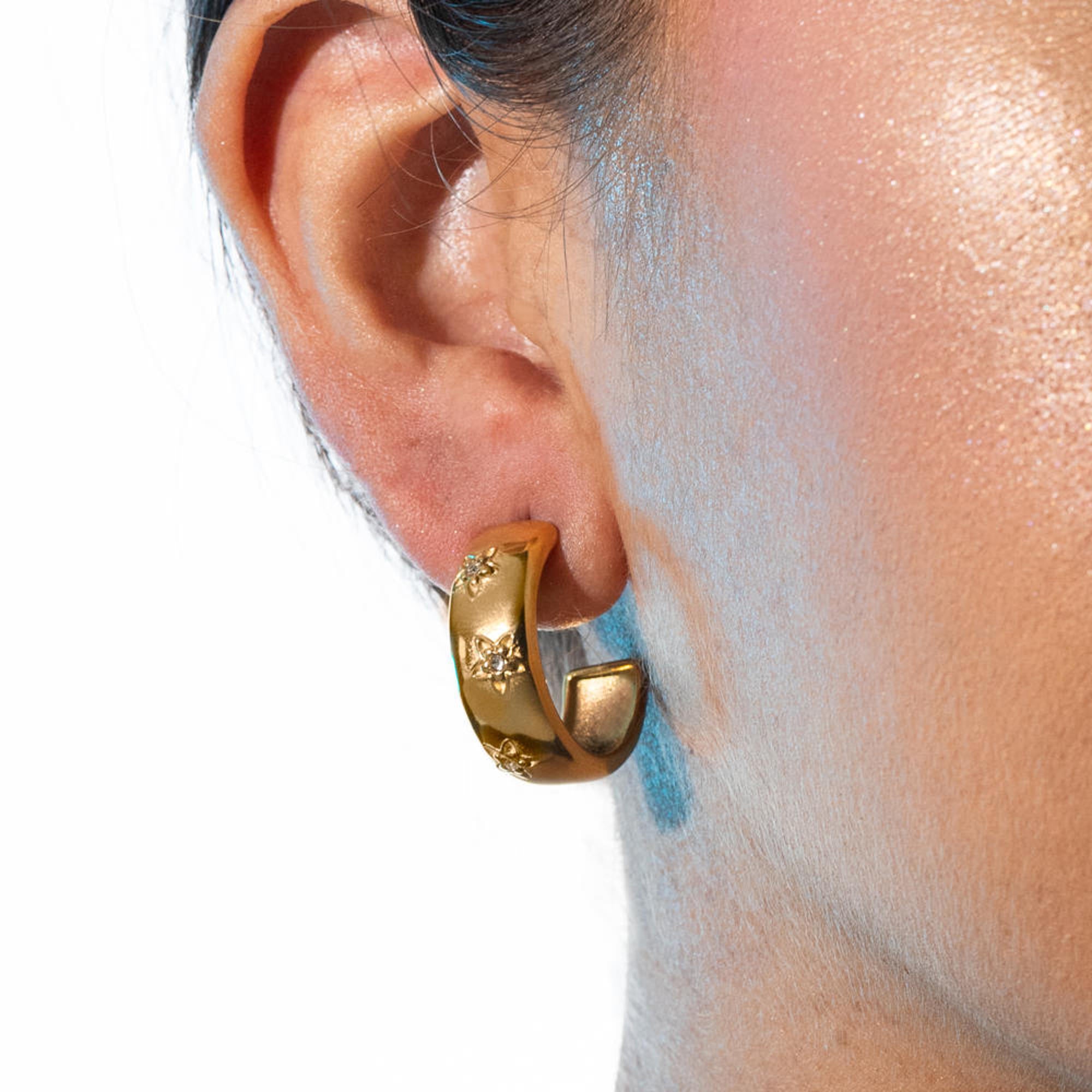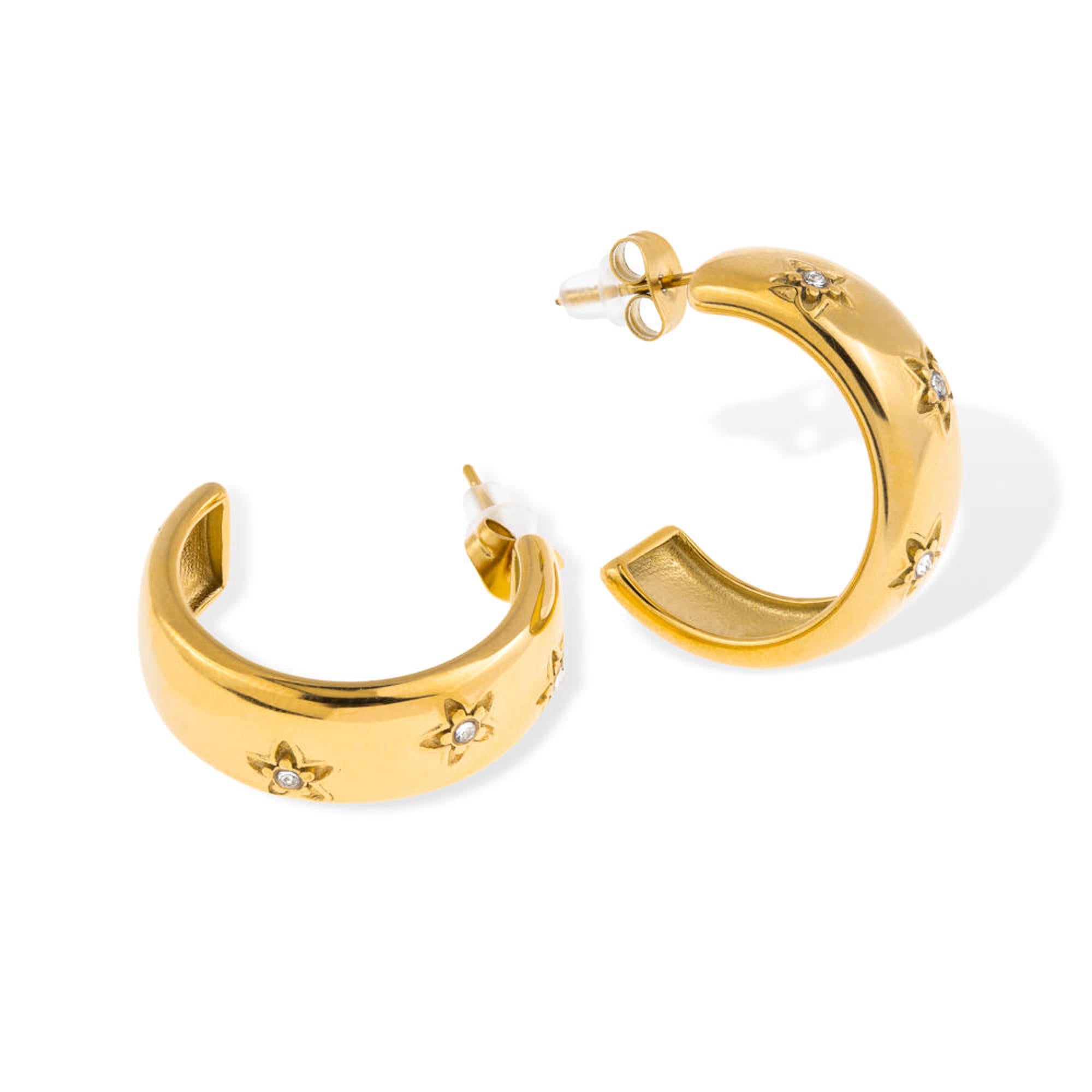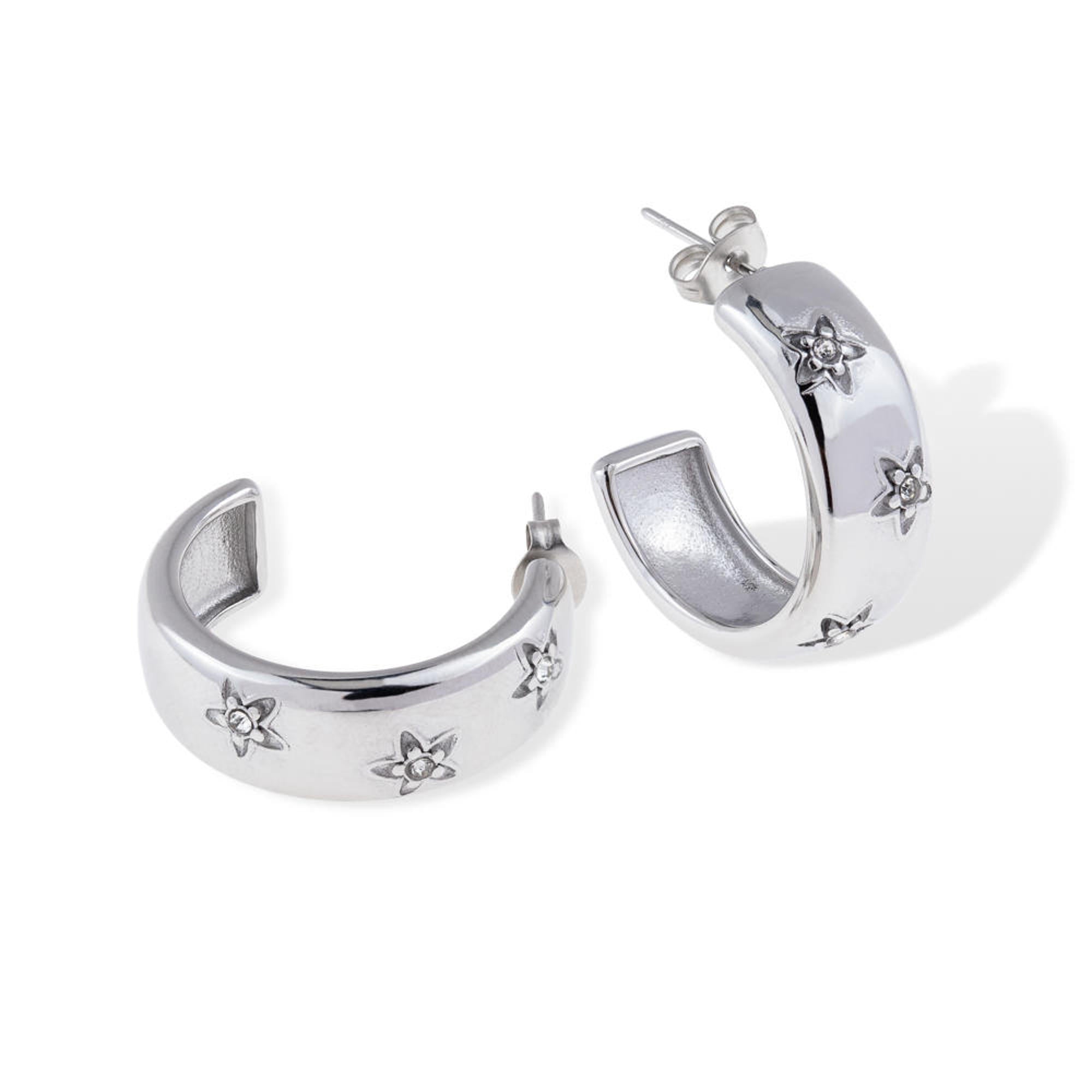 Media arracada ancha liso estrellas cristales 25mm