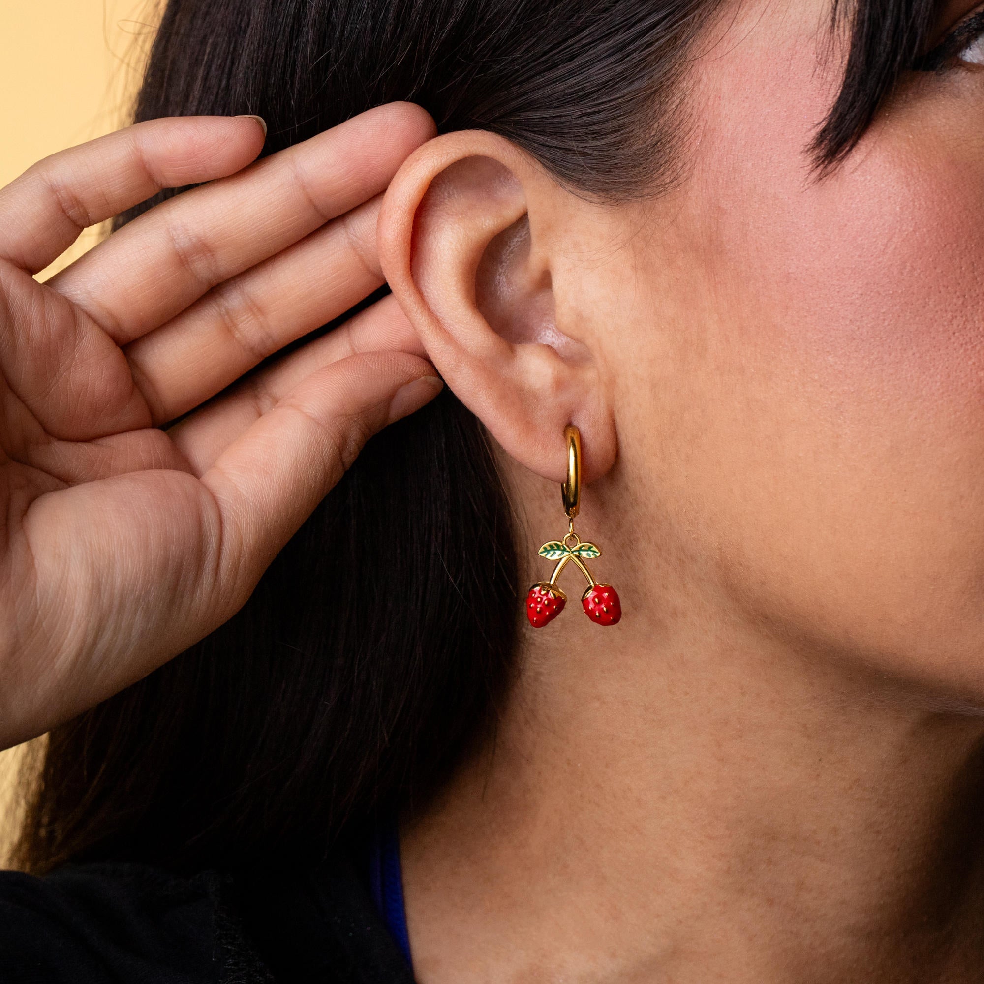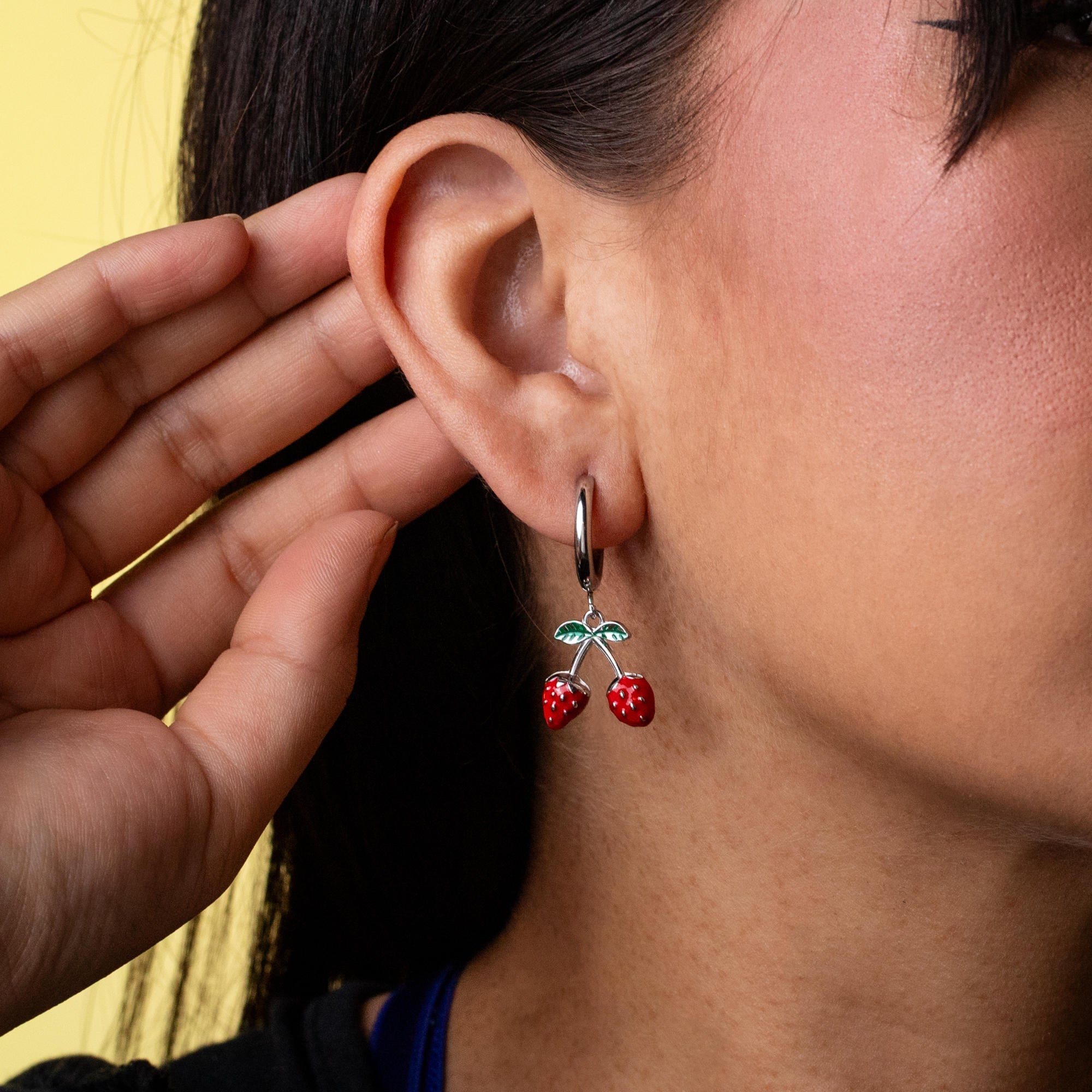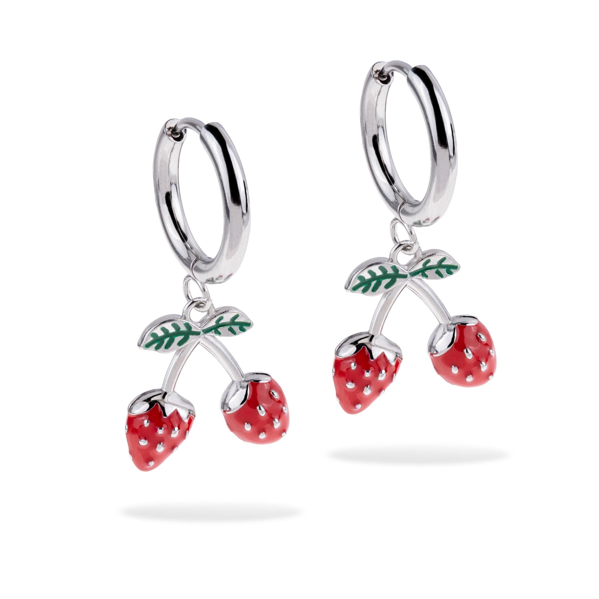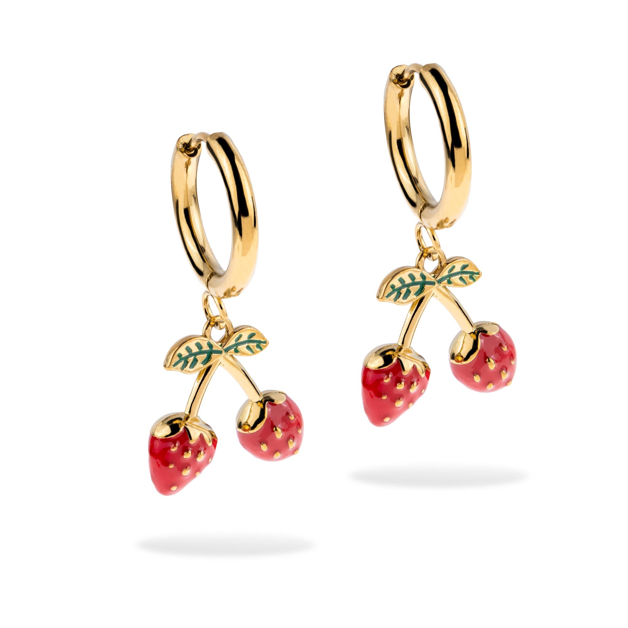 Huggies con colgante de fresas esmaltadas 35mm