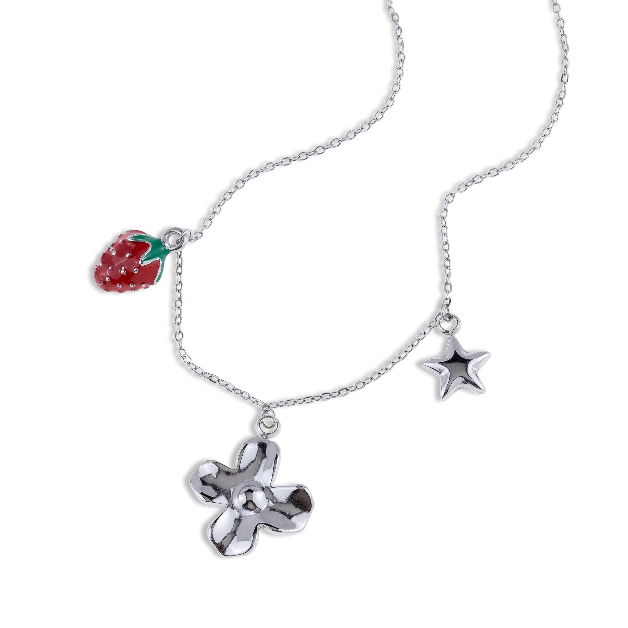 Collar ajustable de flor estrella y fresa esmaltada 50cm