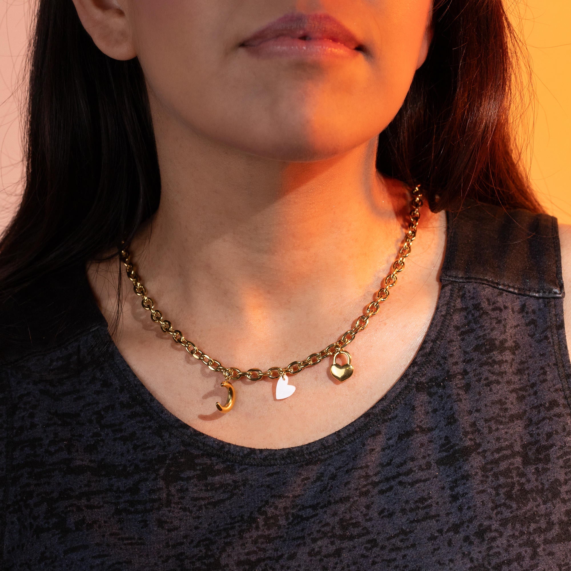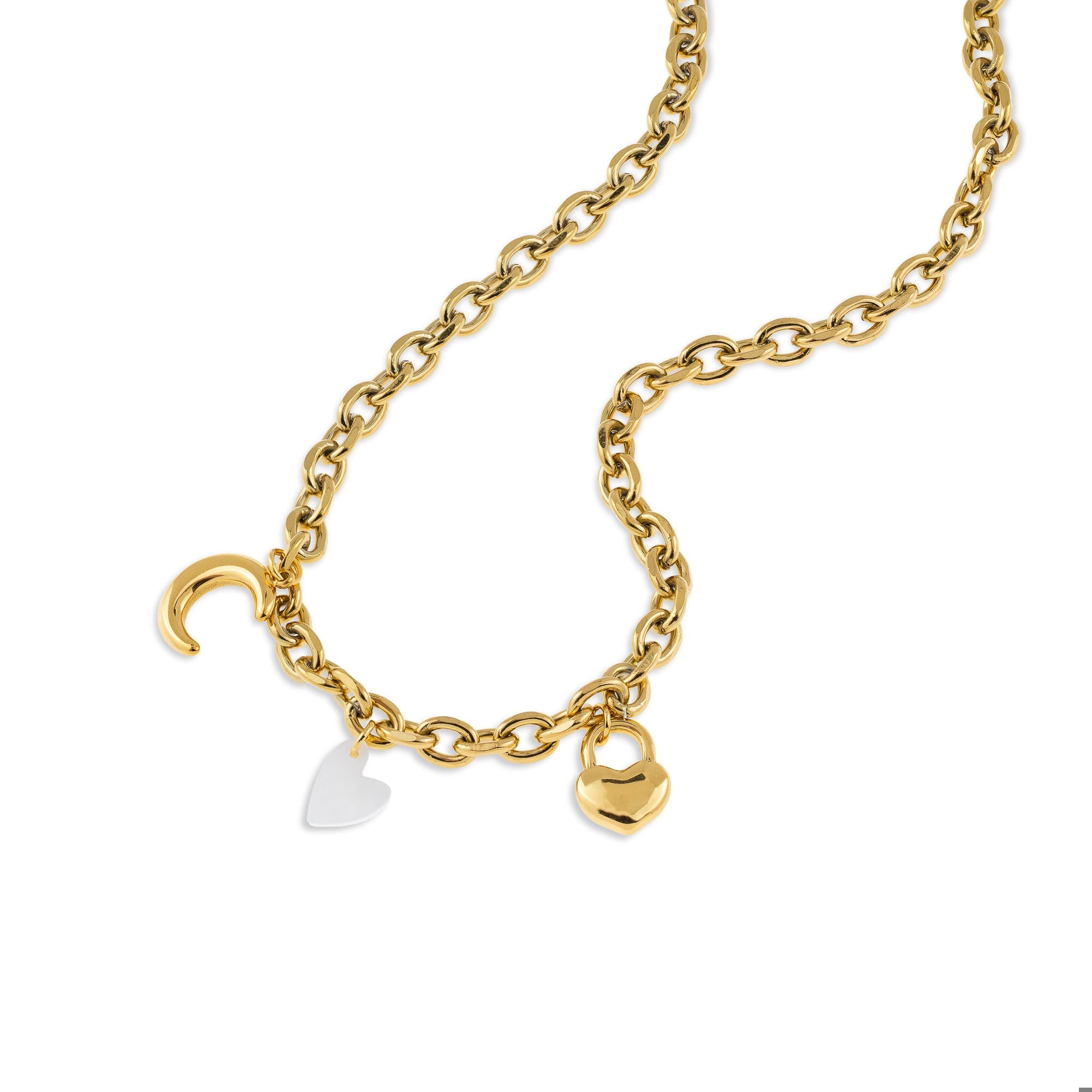 Collar de eslabon con colgantes de corazon y luna 48cm