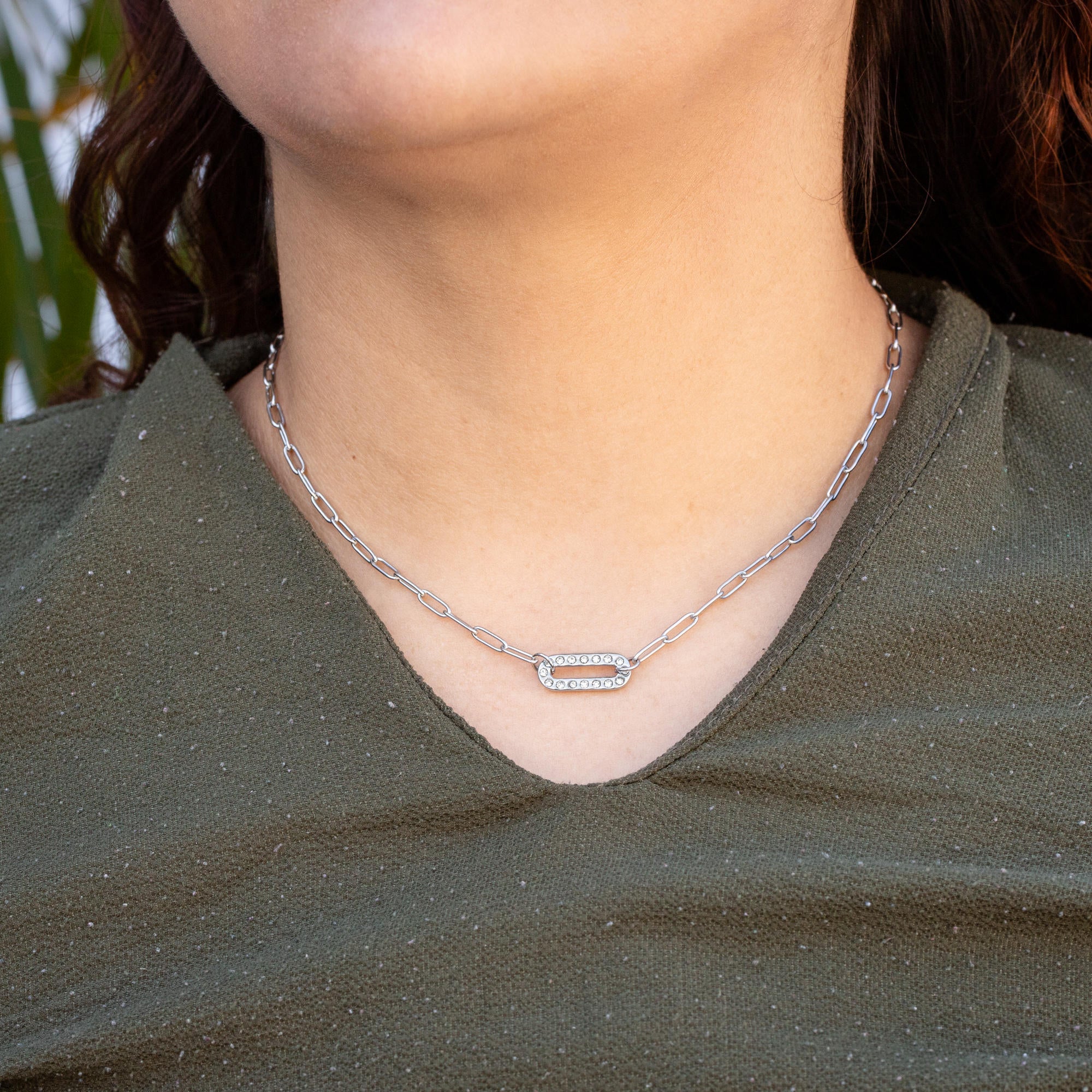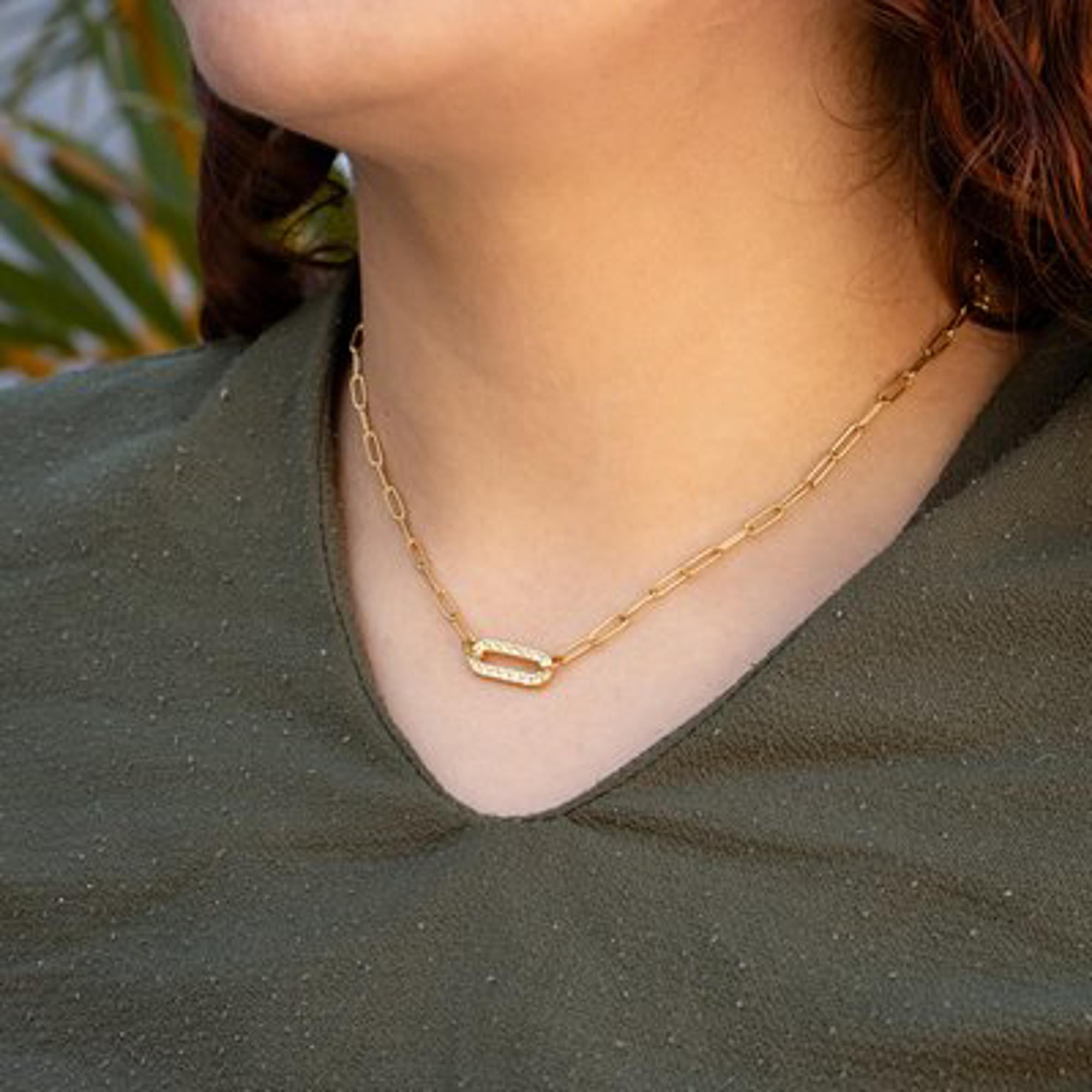 Collar de eslabones y dije ovalado con cristales 43-48cm