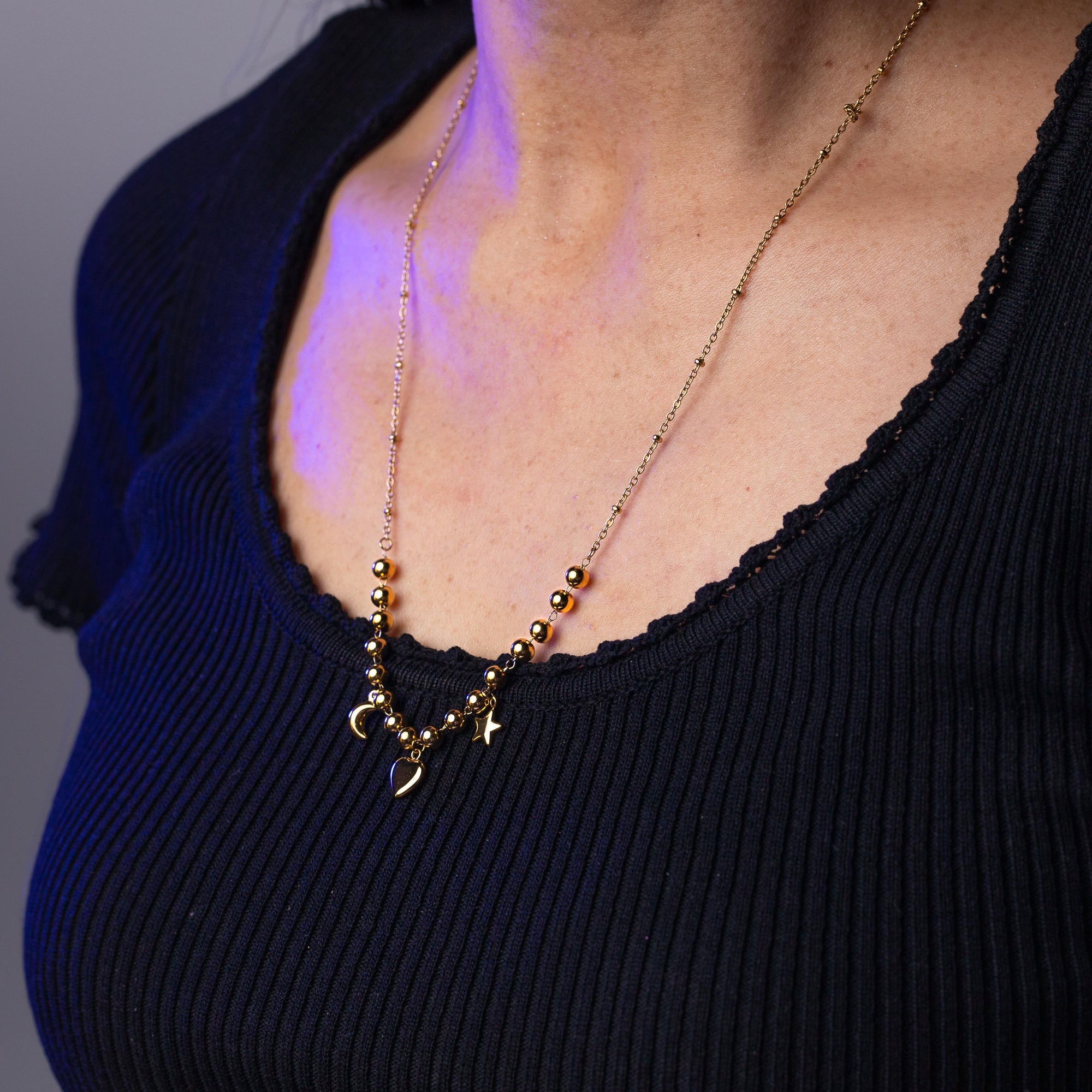 Collar balines dije de corazon luna estrella 50-55cm