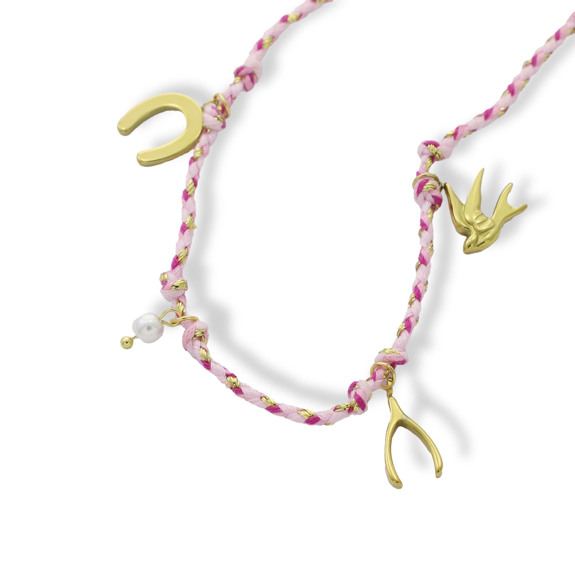 Collar hilo rosa perla dijes de la suerte 45-50cm