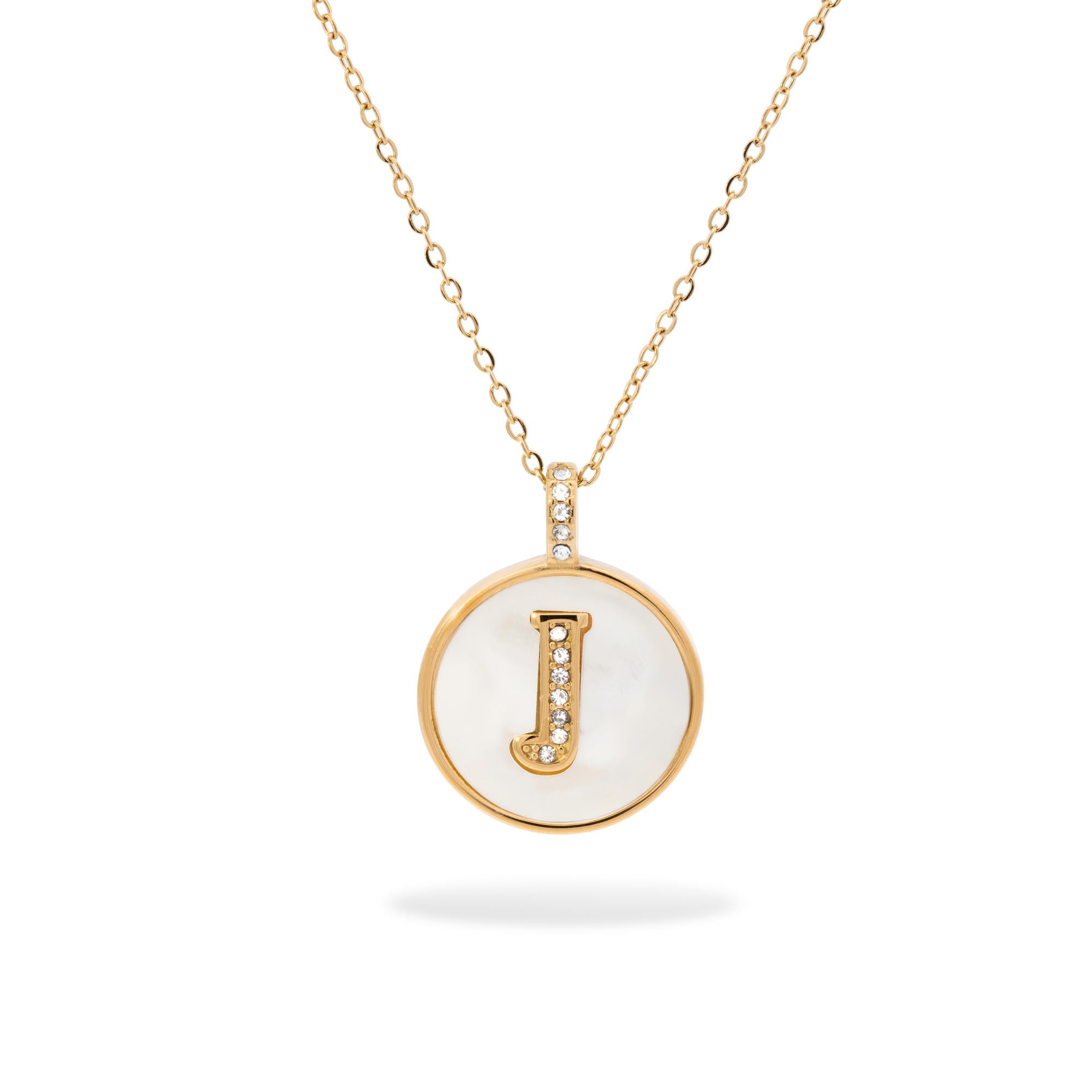 Collar dije redondo madre perla letra a cristales 55-60cm