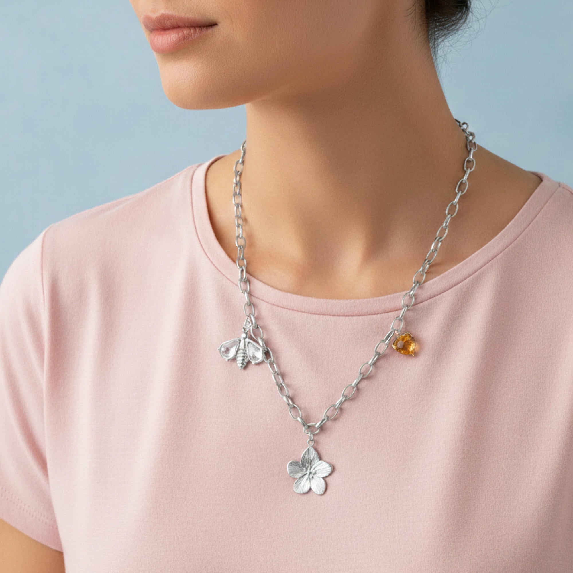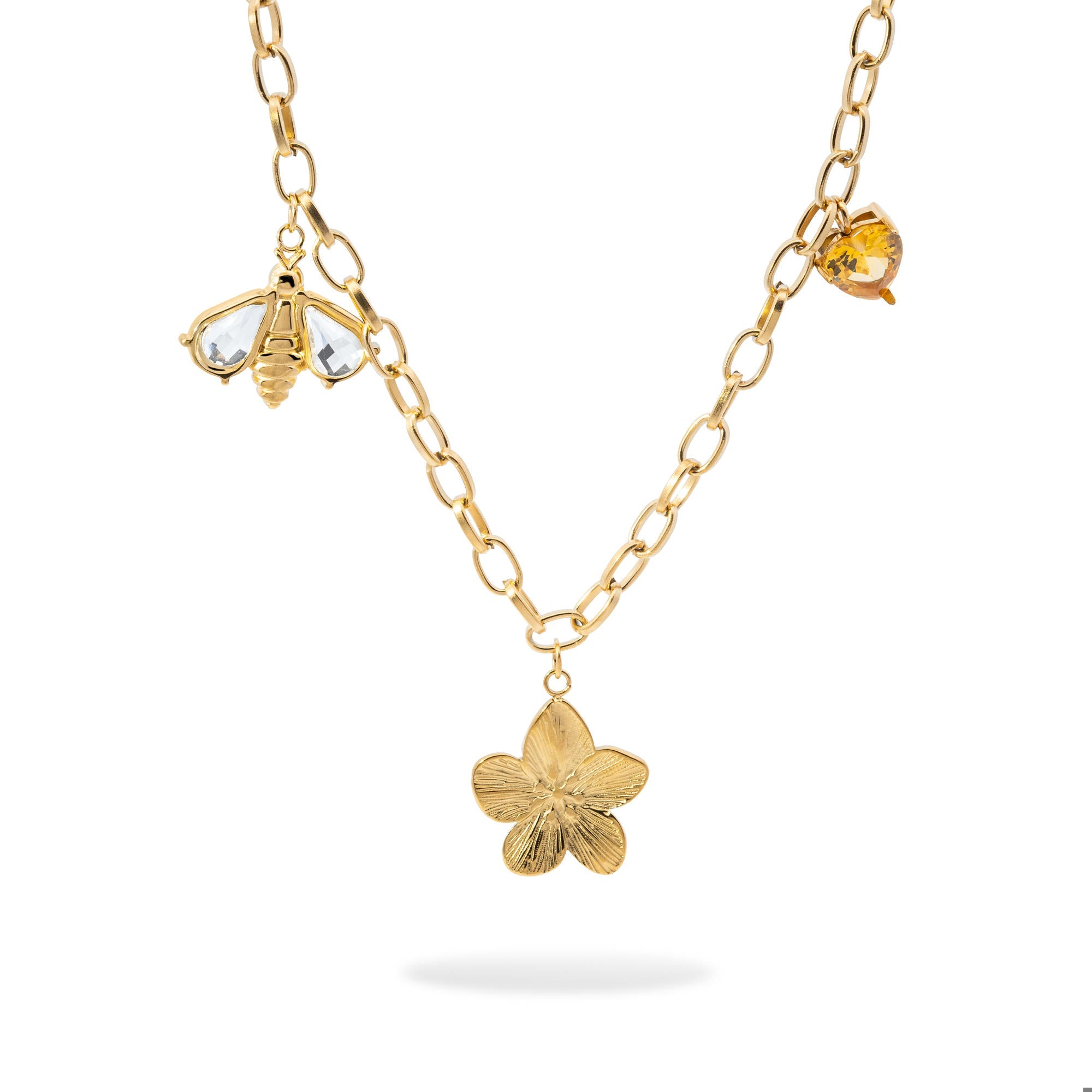Collar de flor abeja y corazon con cristal 45-50cm