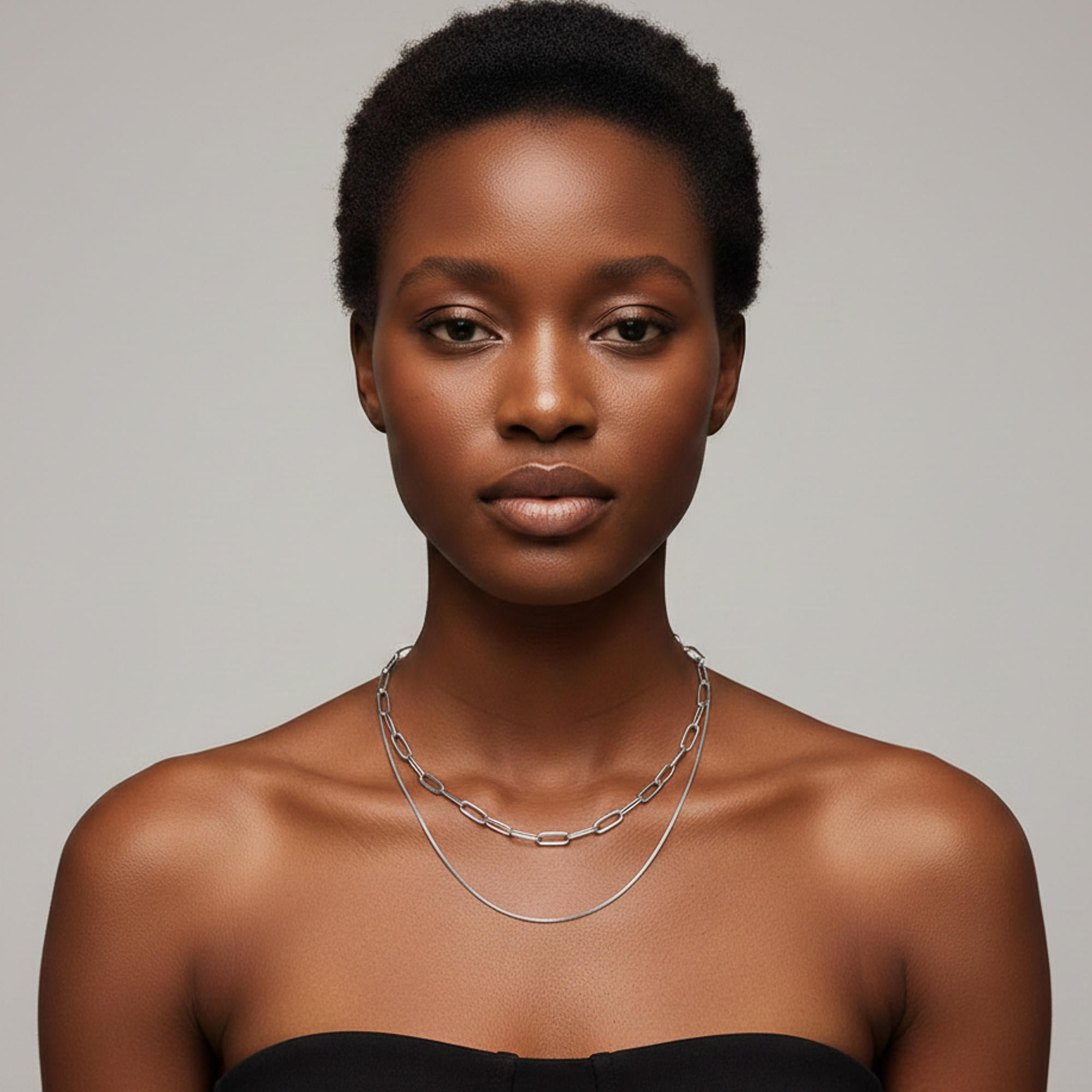 Collar doble con cadena cola de raton y eslabon largo 50-65cm