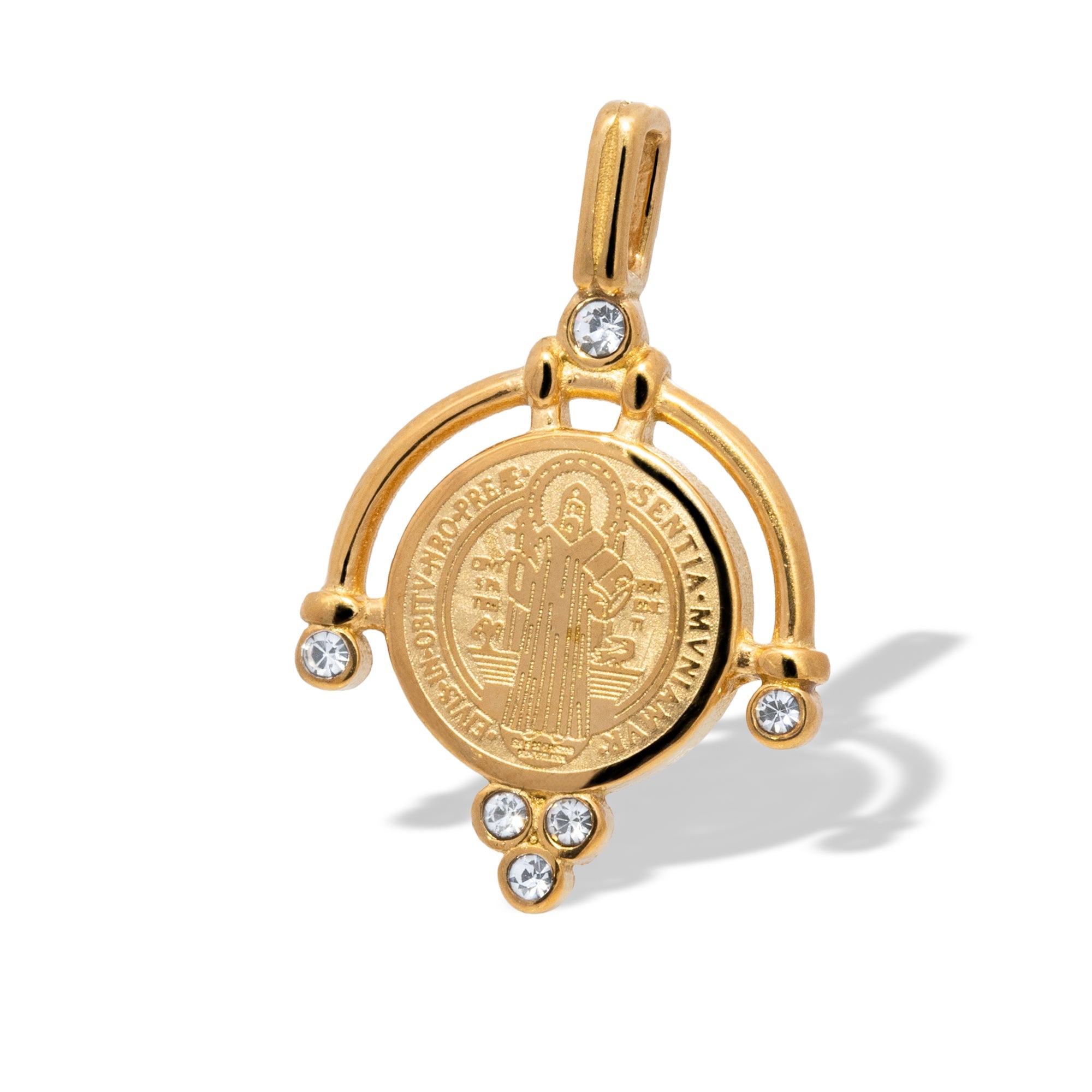 Dije medalla de san benito con cristales 17mm