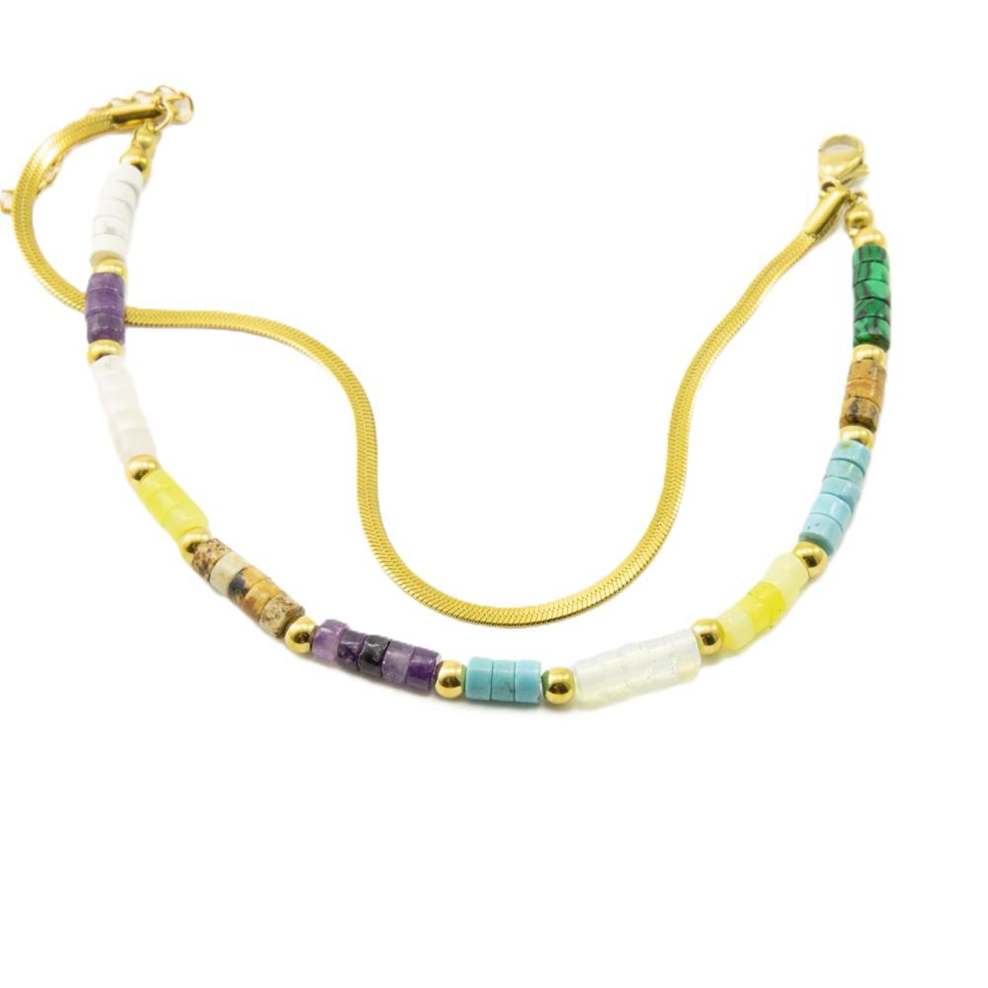 Pulsera doble panza de vivora y 7 chakras 19cm