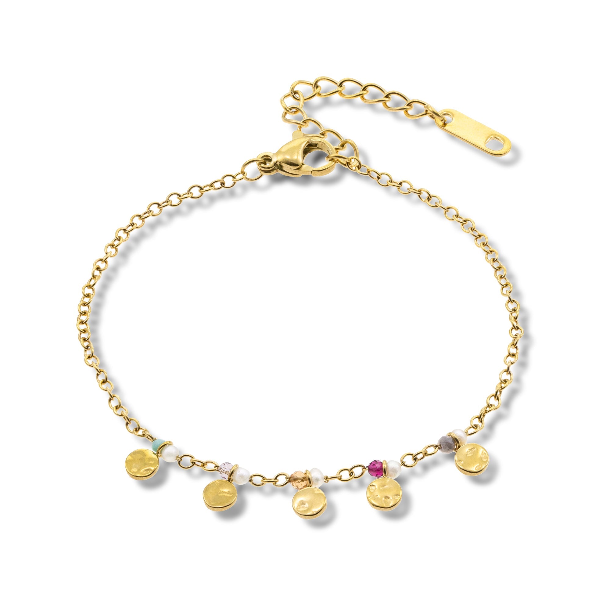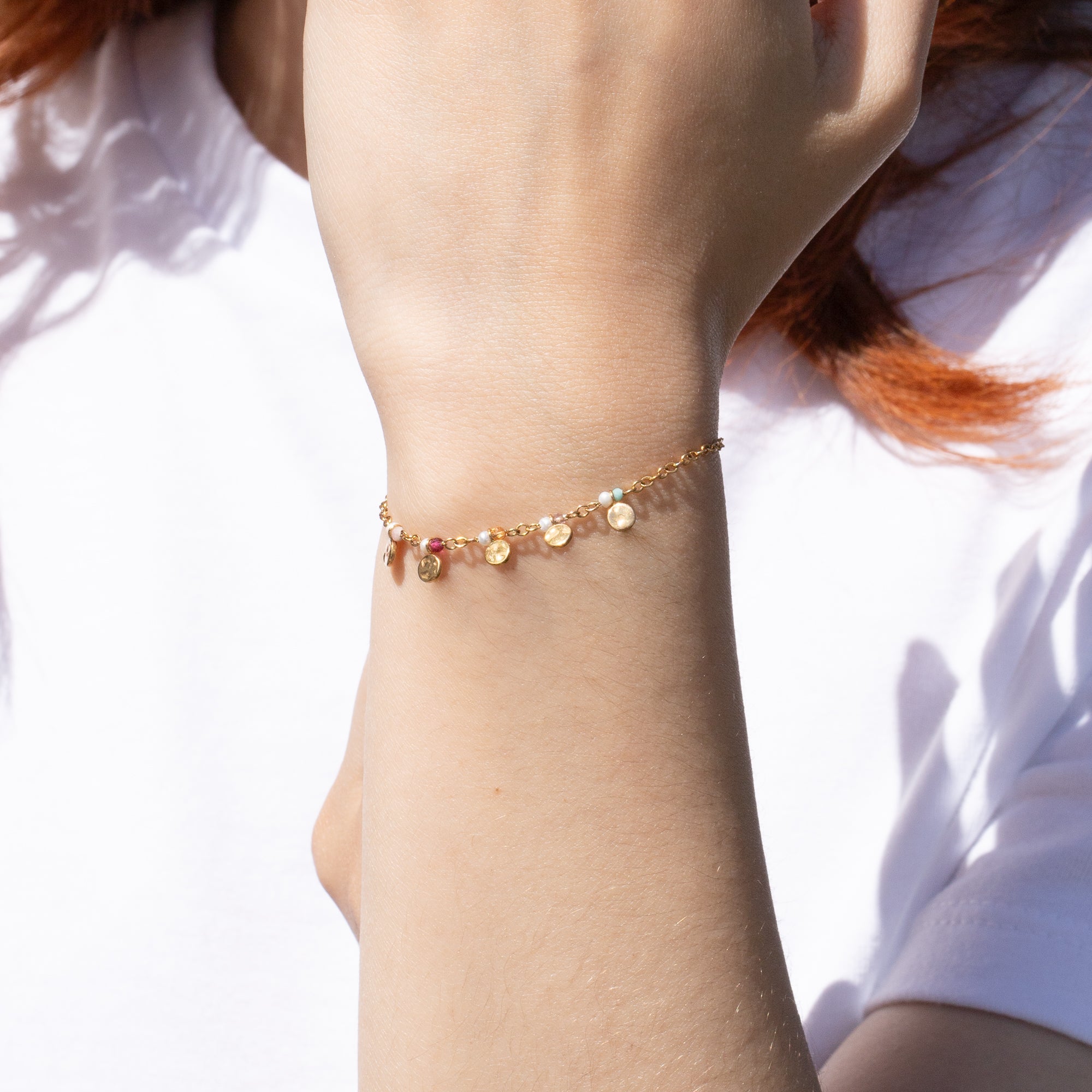 Pulsera circulos martillados con cristal multicolor 16-20cm