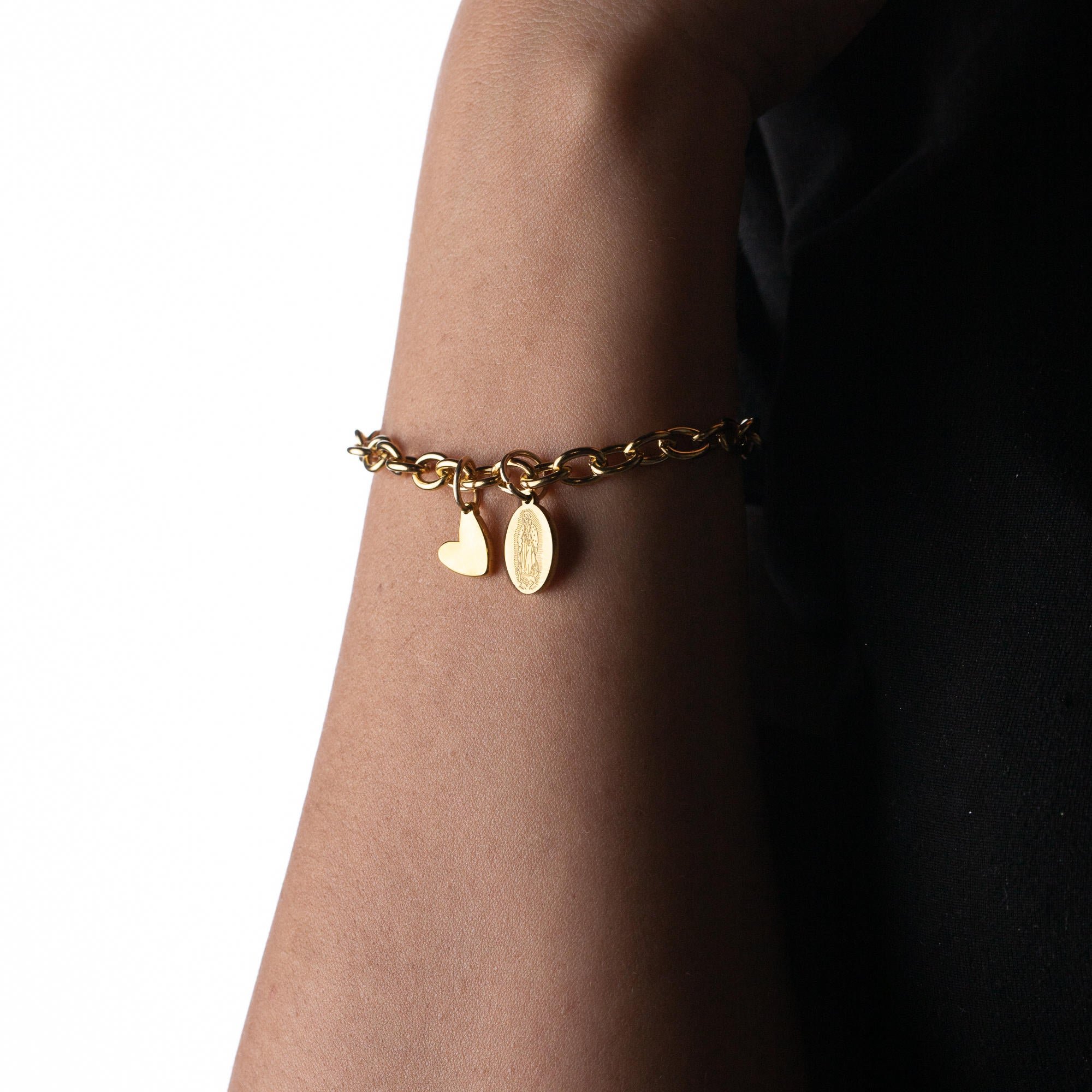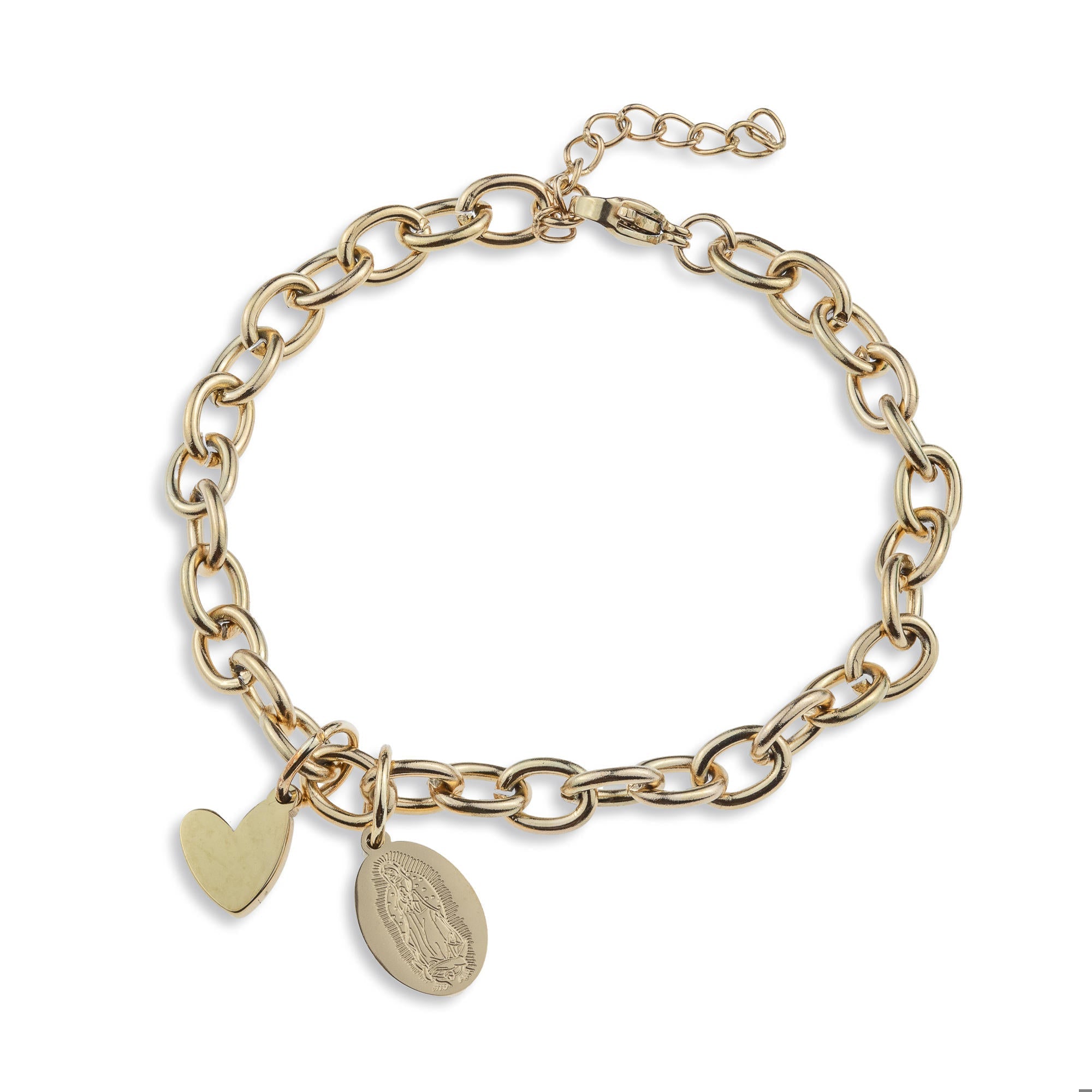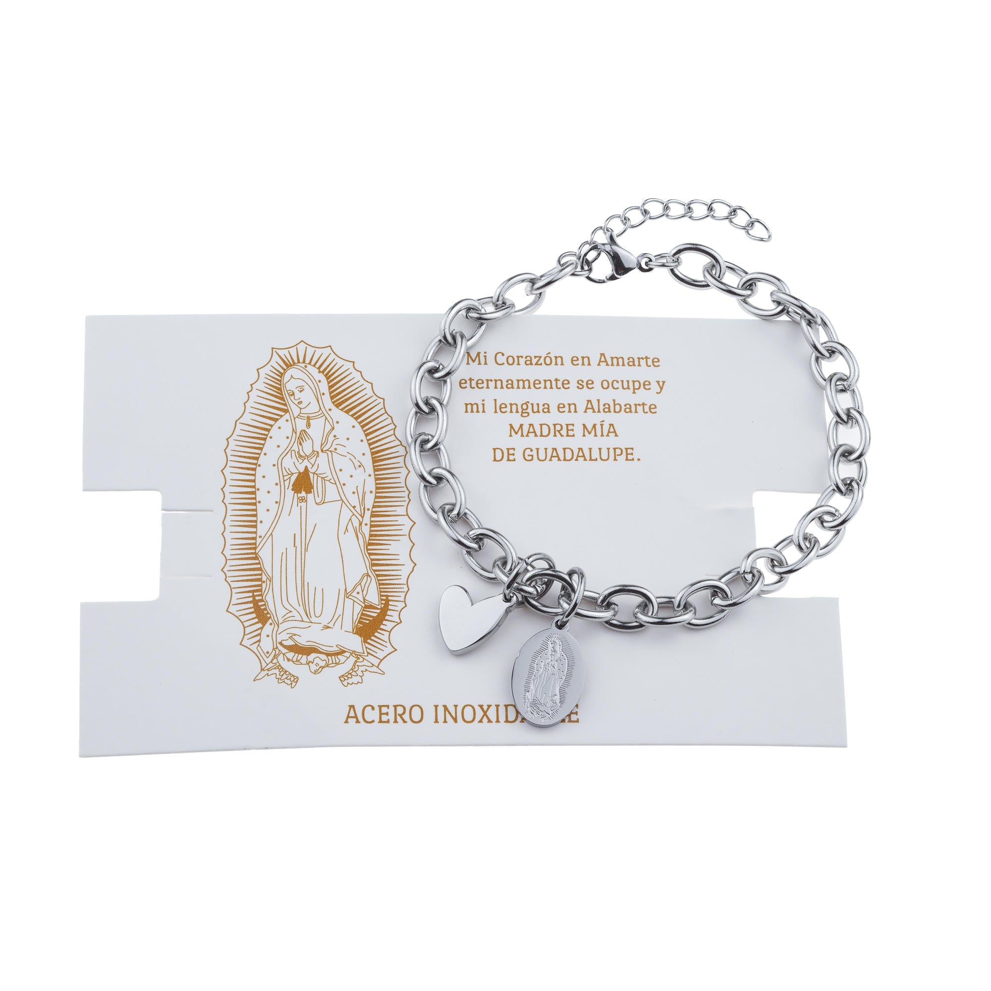 Pulsera dije corazon y medalla virgen de guadalupe 17-20cm