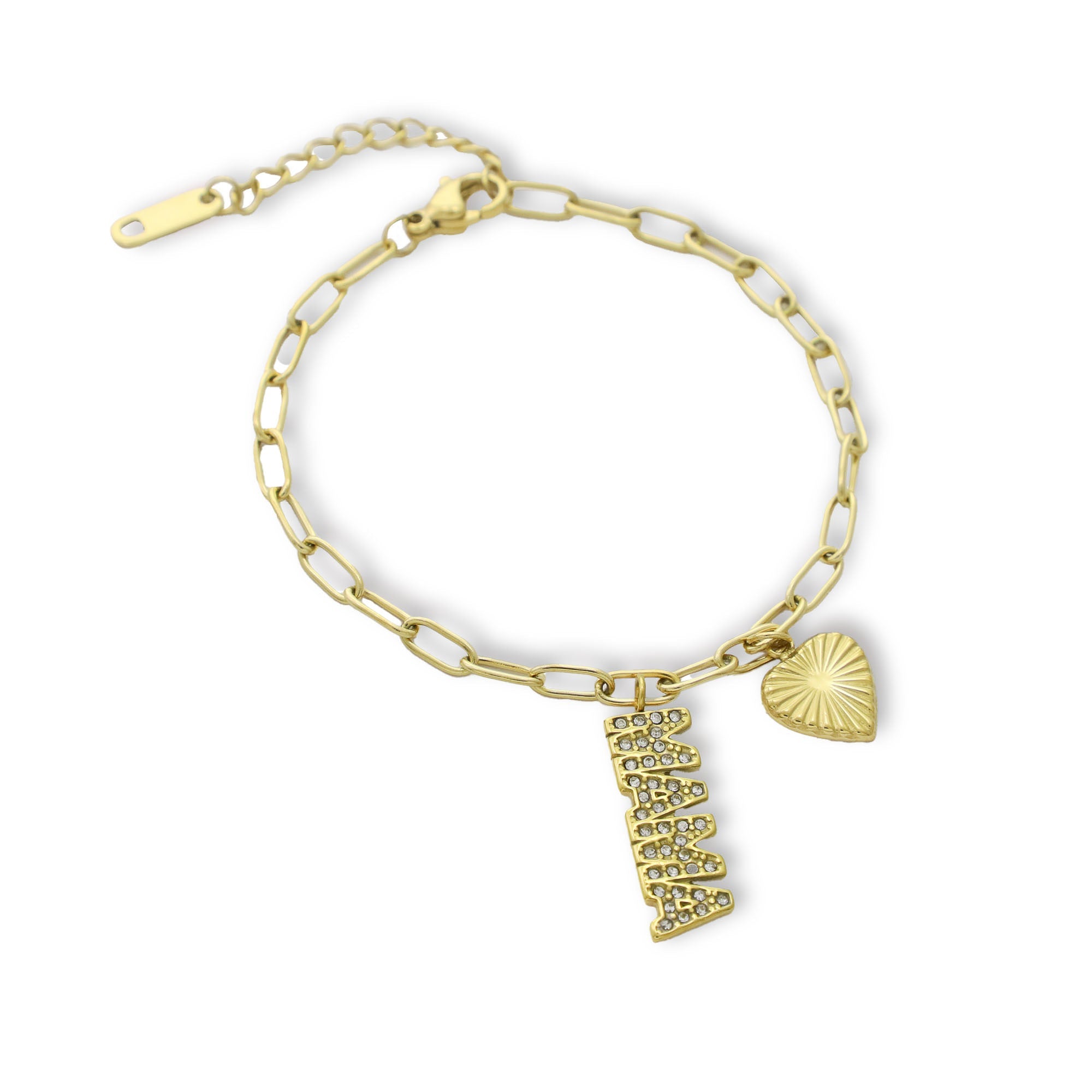 Pulsera dije colgante corazon mama cristales 17-20cm