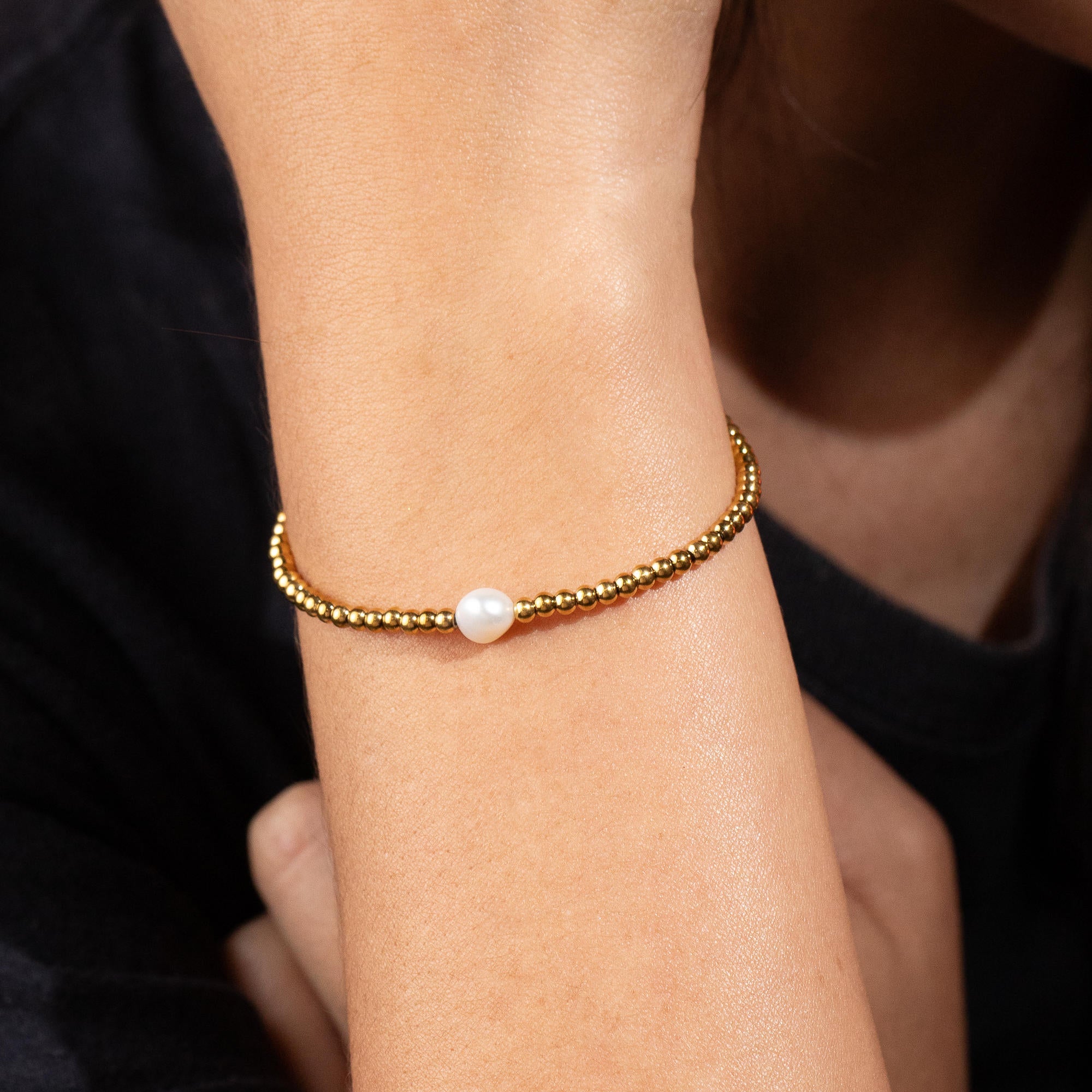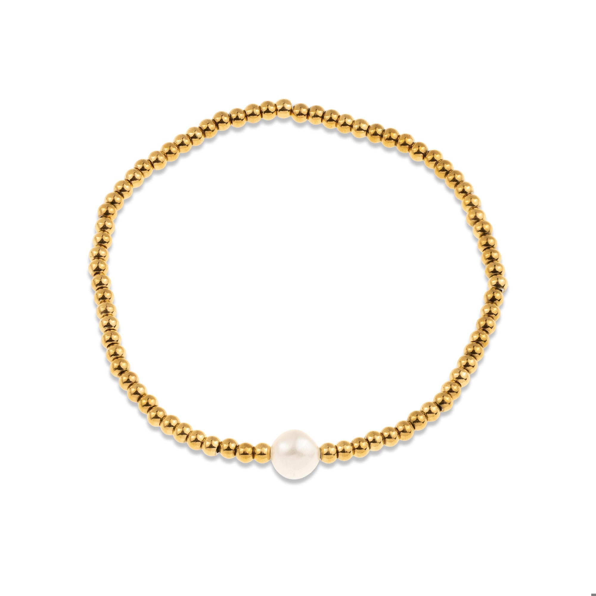 Pulsera elastica perla y cuentas redondas 18cm ancho 3mm