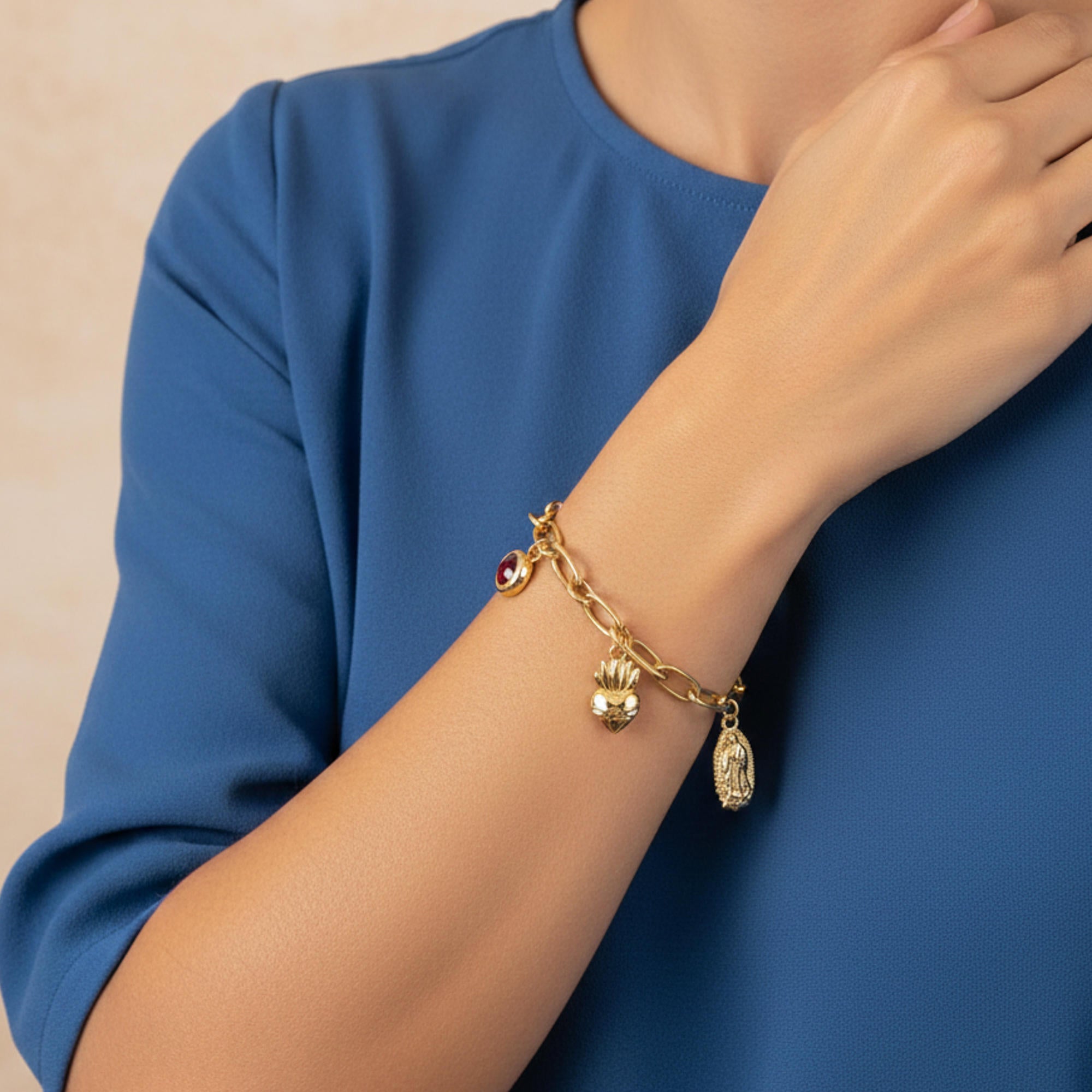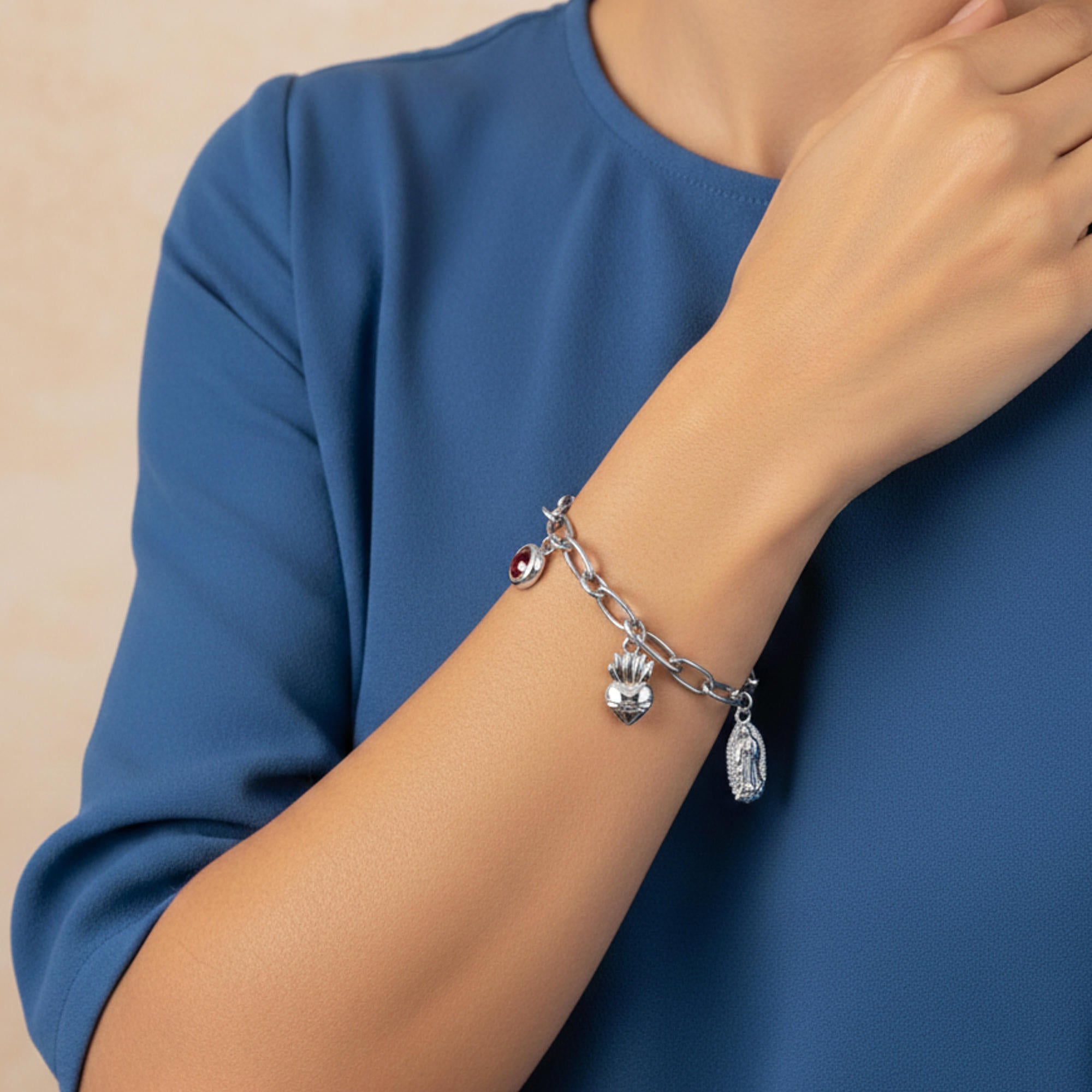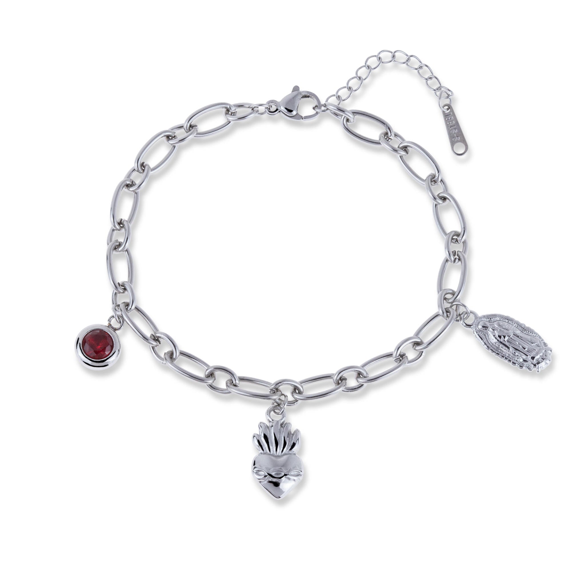 Pulsera Virgen de Guadalupe y Sagrado Corazon con cristal 19-22cm