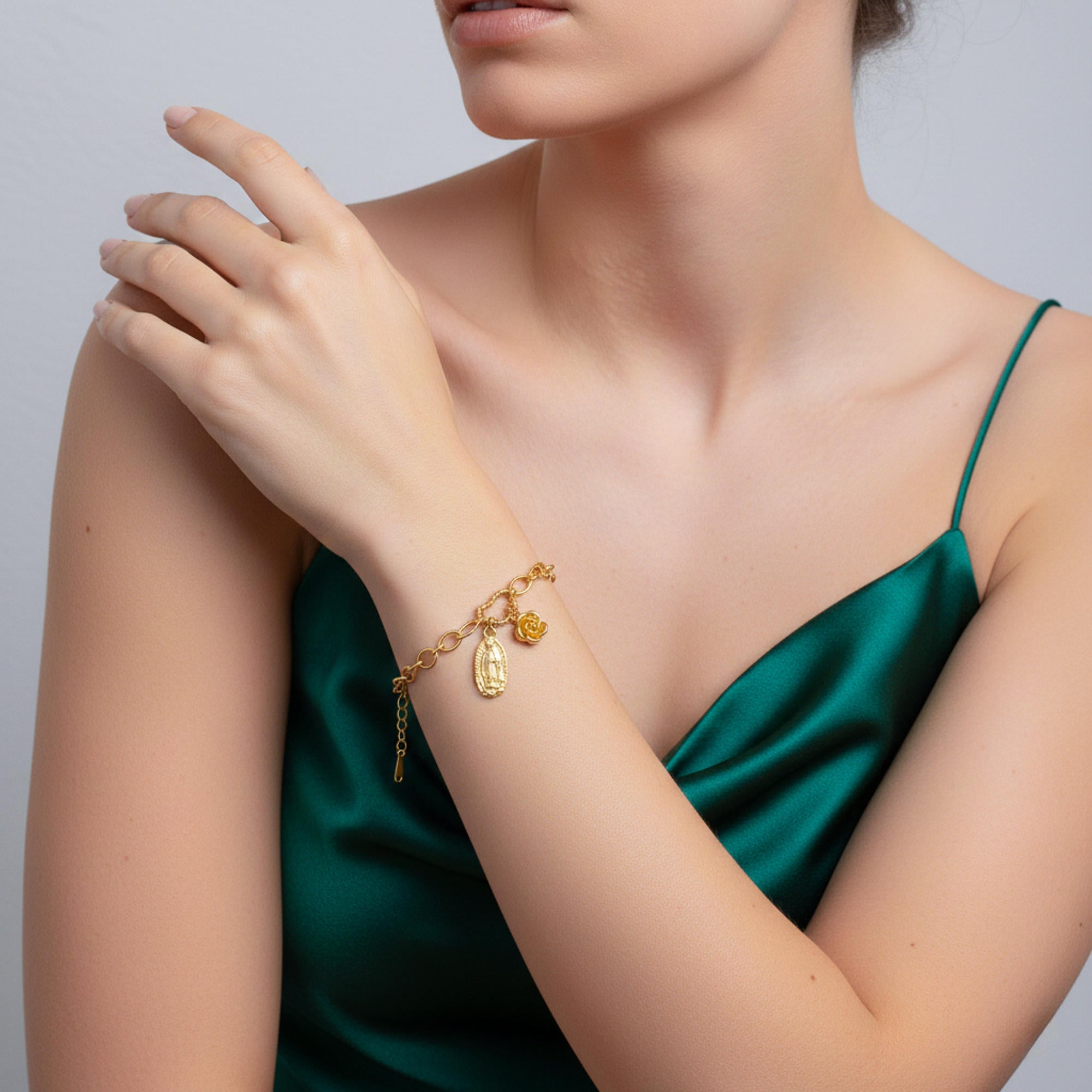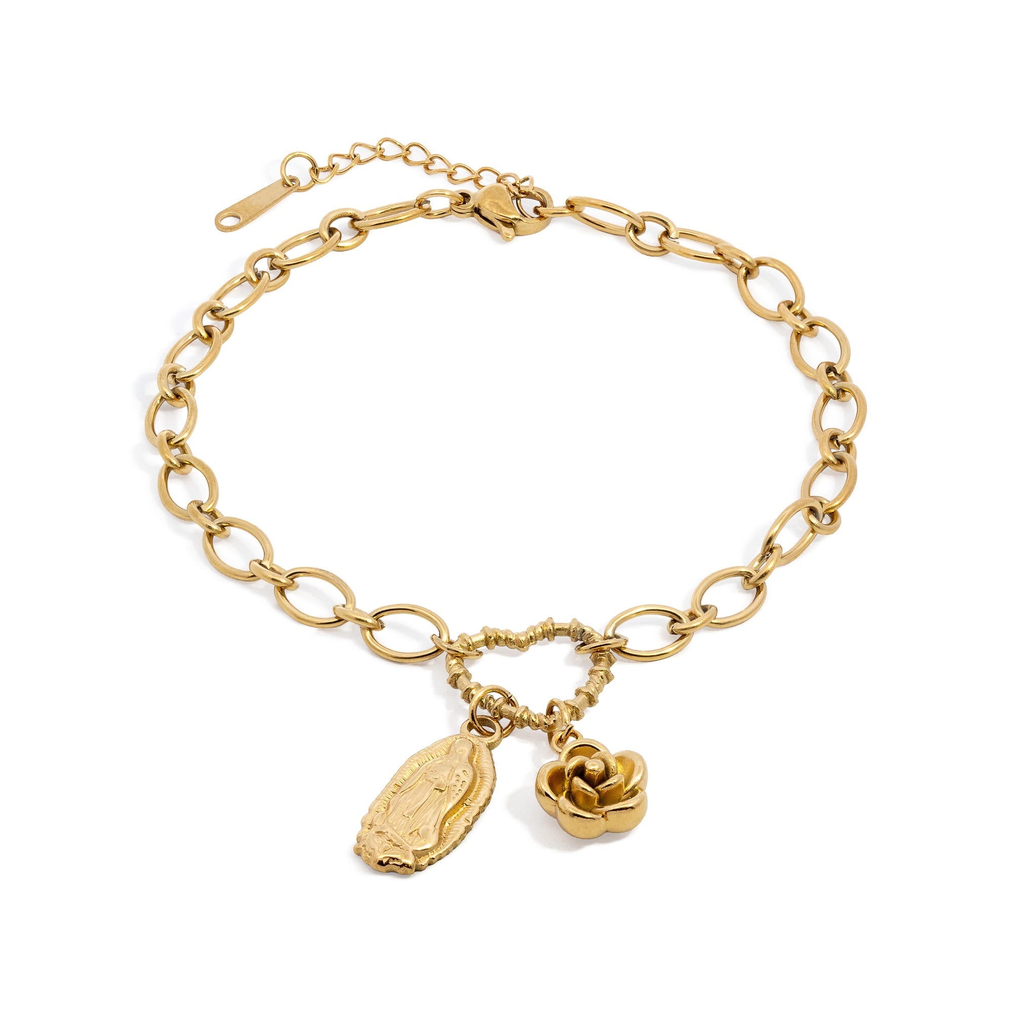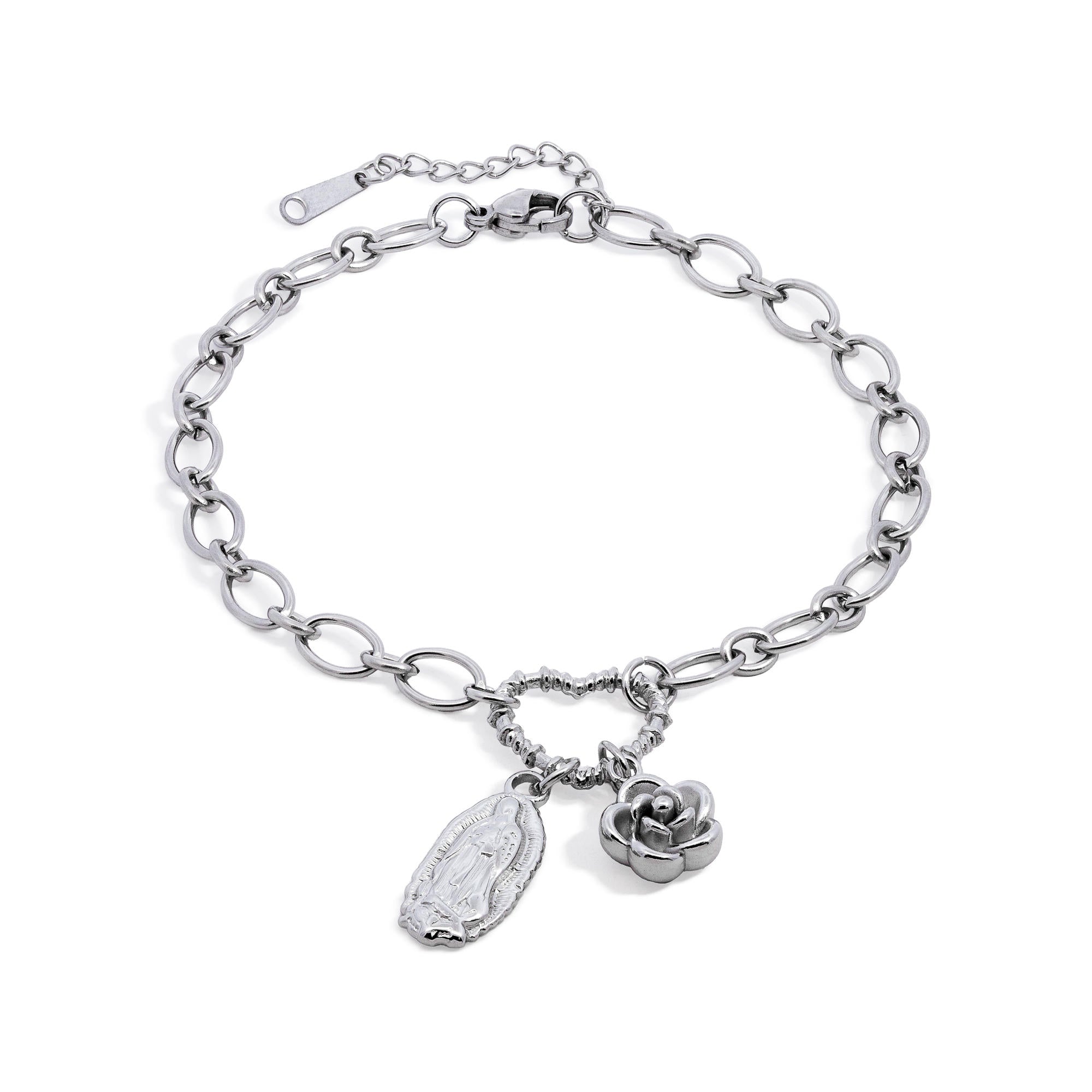Pulsera de corazon Virgen de Guadalupe y rosa 20-23cm