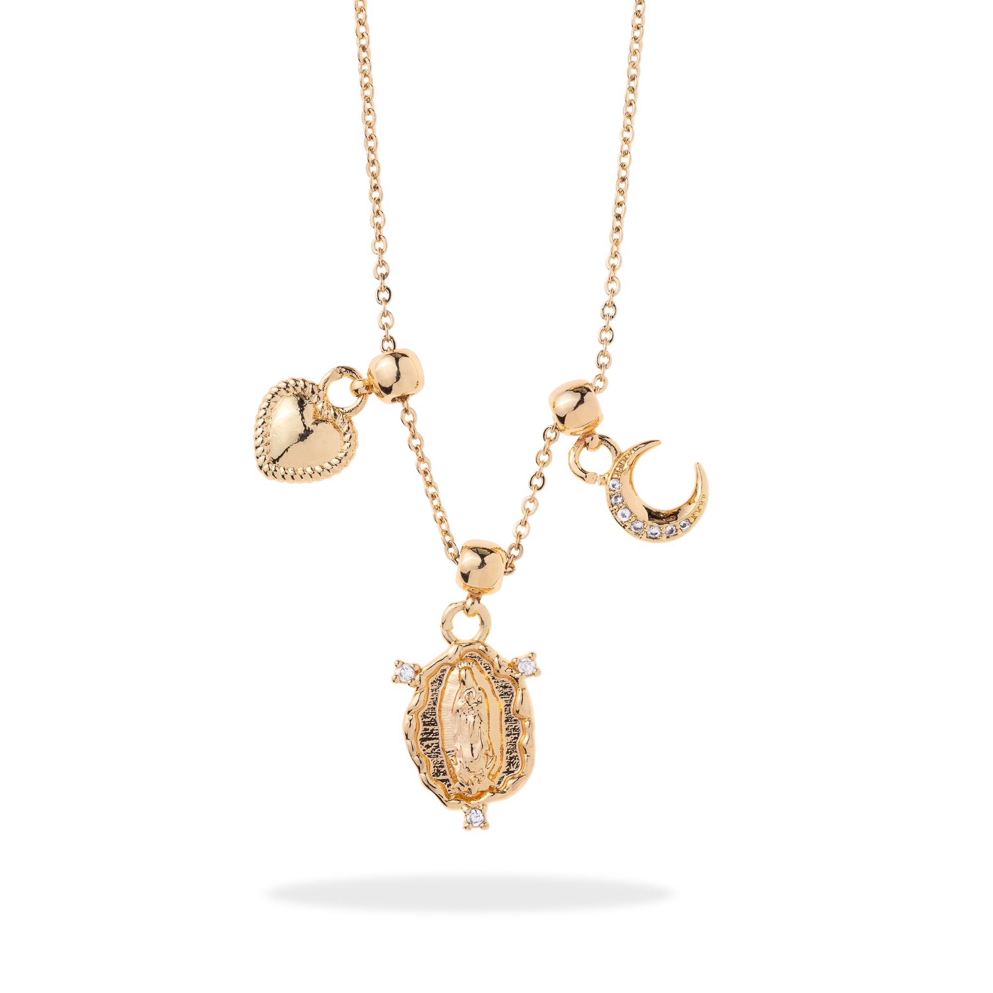 Collar ajustable con Medalla Virgen de Guadalupe luna y corazón 45cm