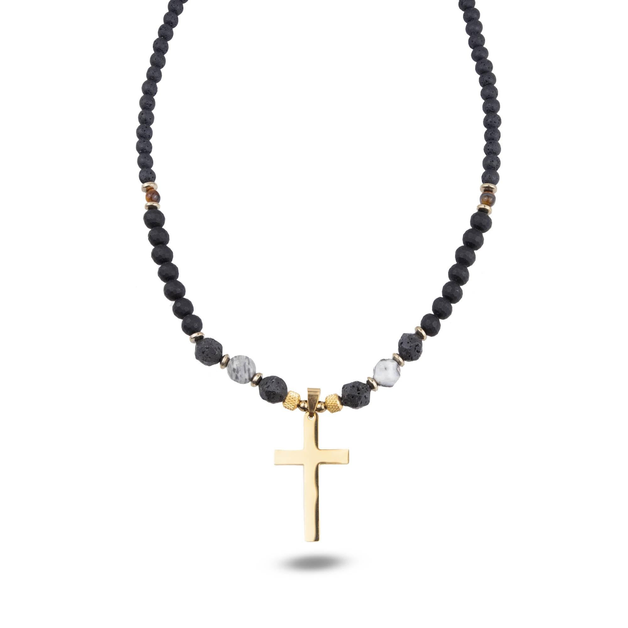 Collar de Cruces con bola facetada y piedra natural 70-80cm