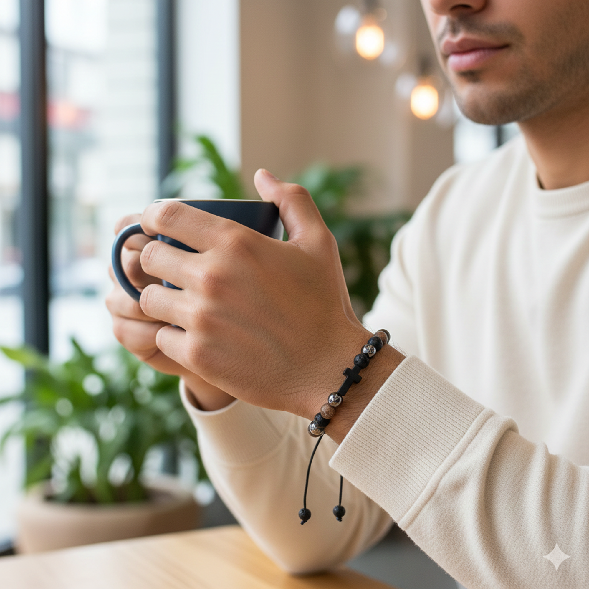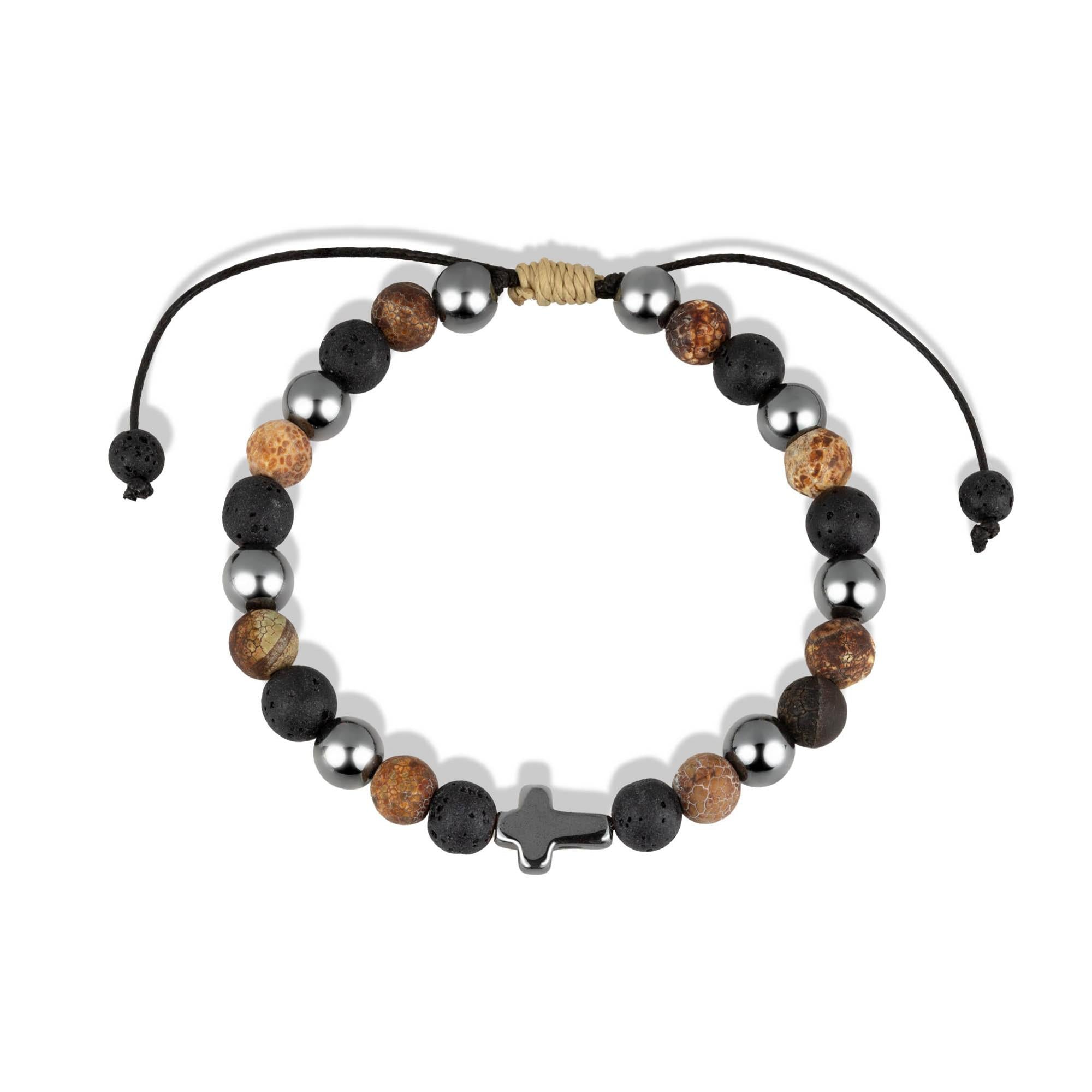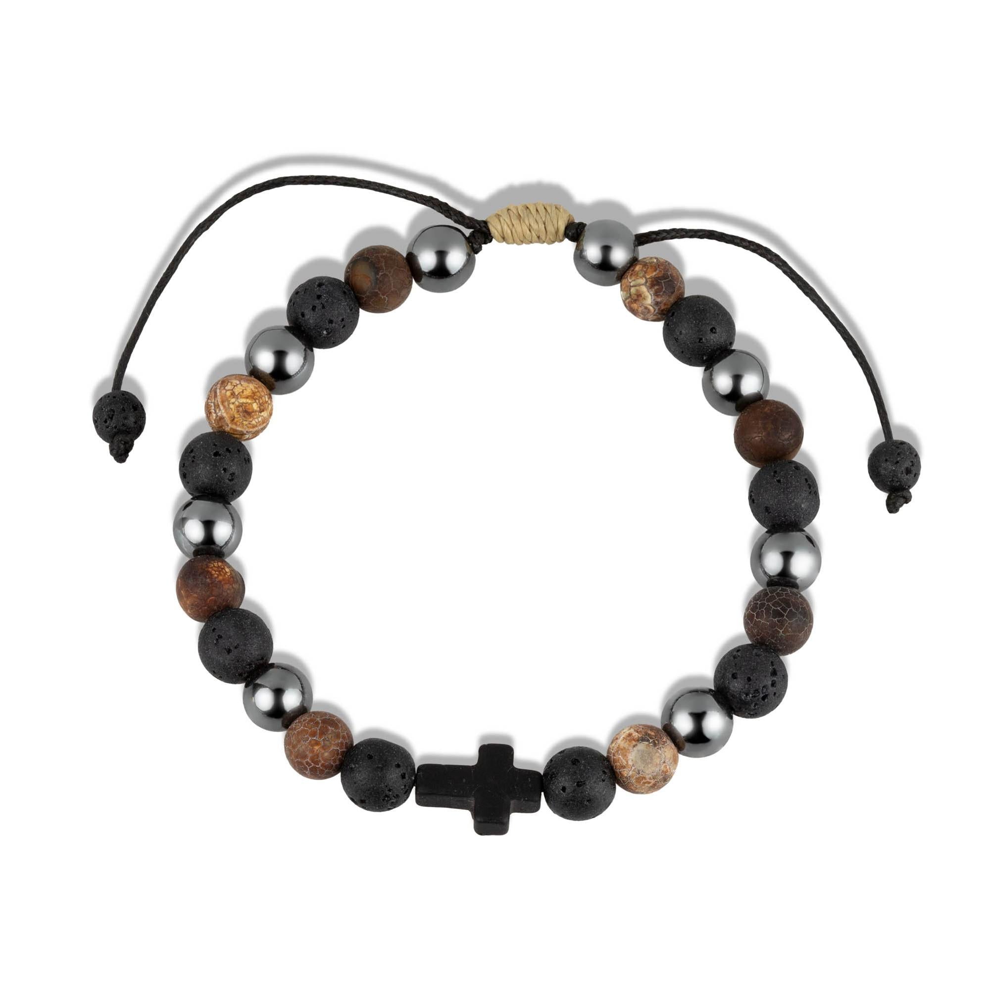Pulsera ajustable de vinipiel con Cruces y piedra natural 8mm