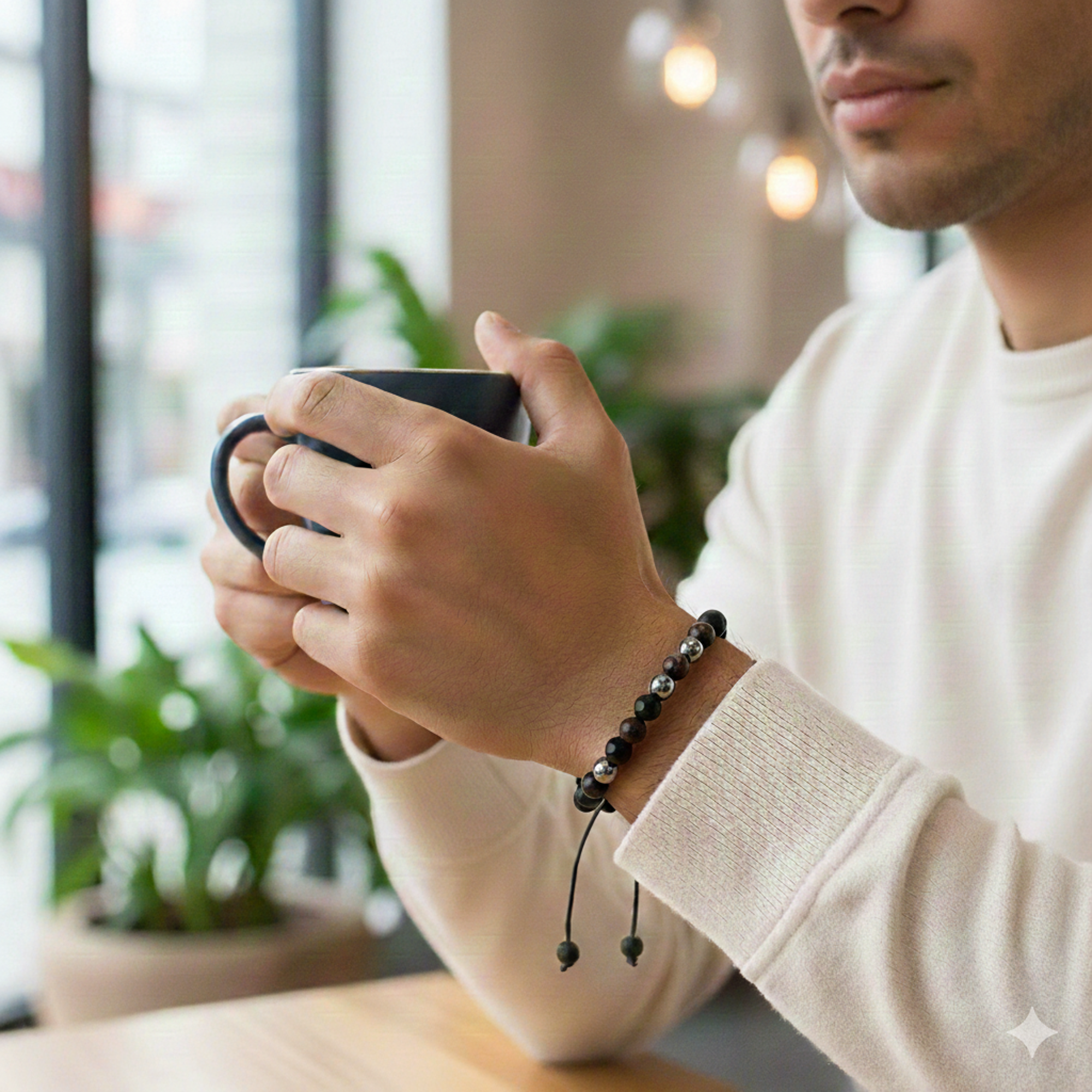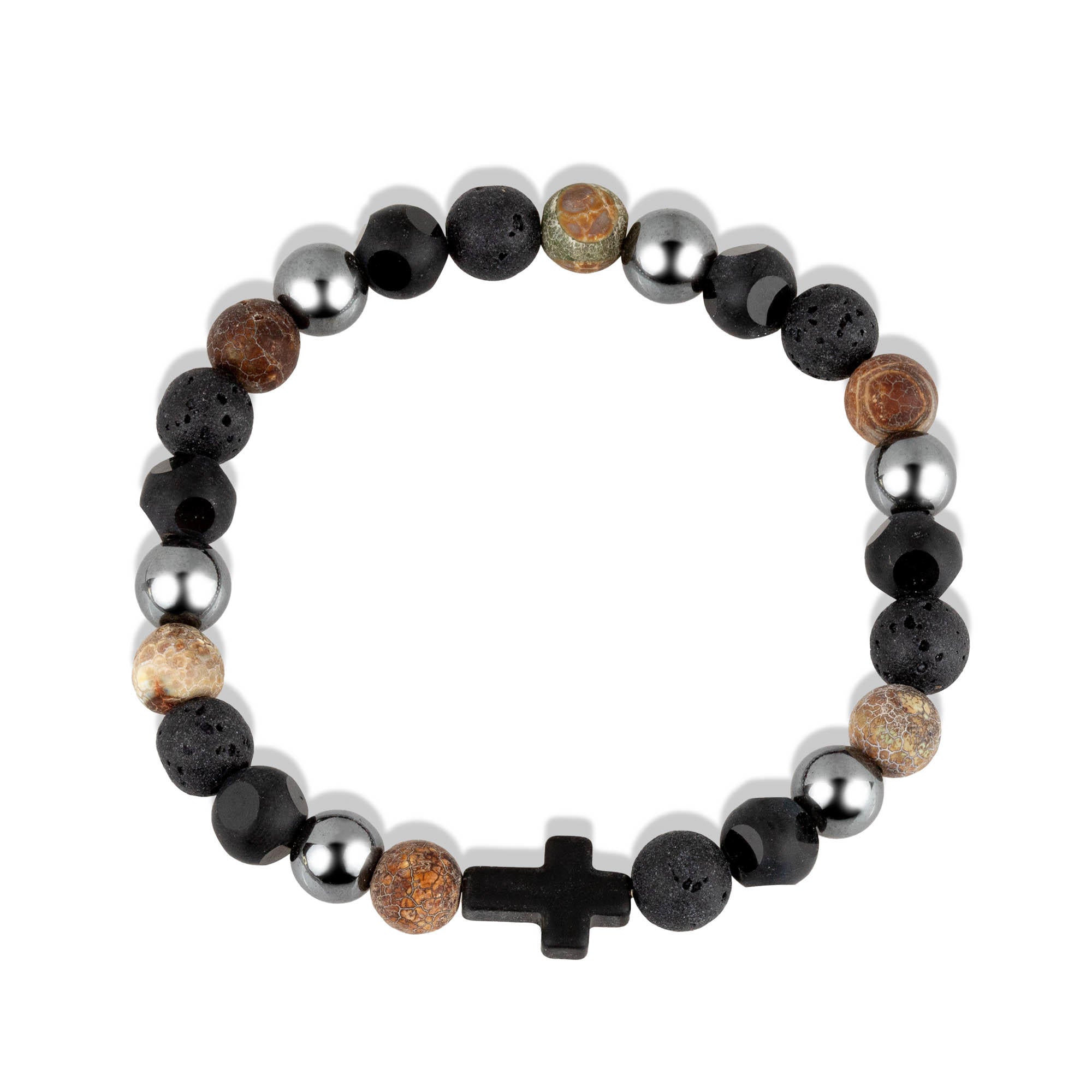 Pulsera ajustable de elastico con Cruces y piedra natural 8mm