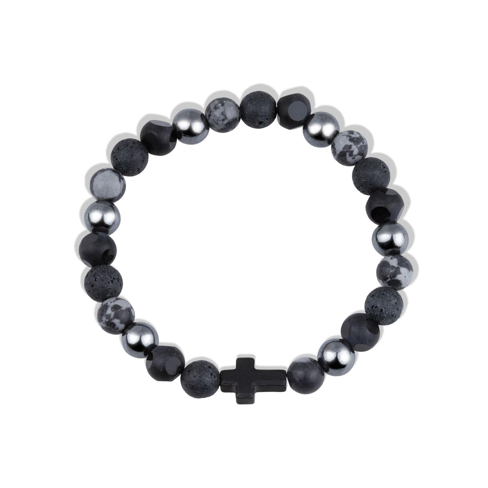 Pulsera ajustable de elastico con Cruces y piedra natural 10mm