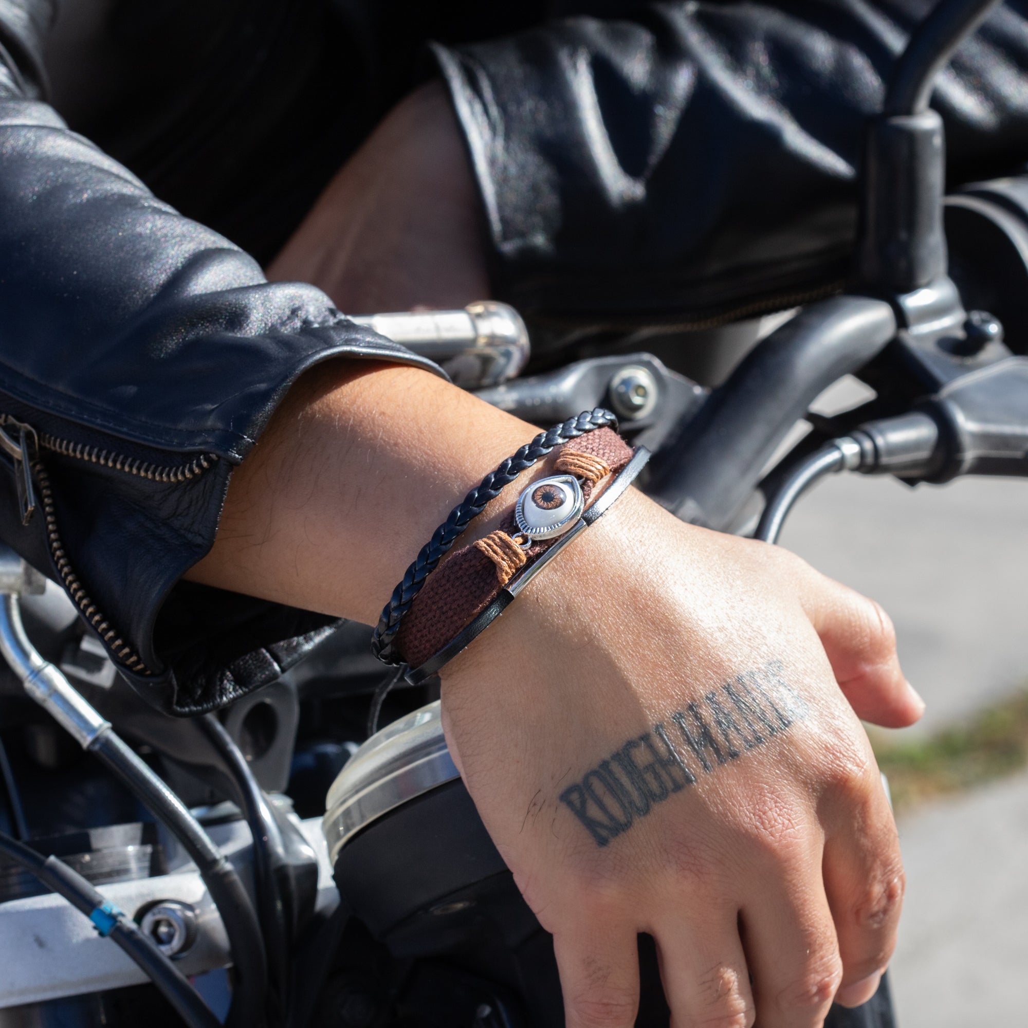 Pulsera de vinipiel ajustable triple con ojo turco 22mm
