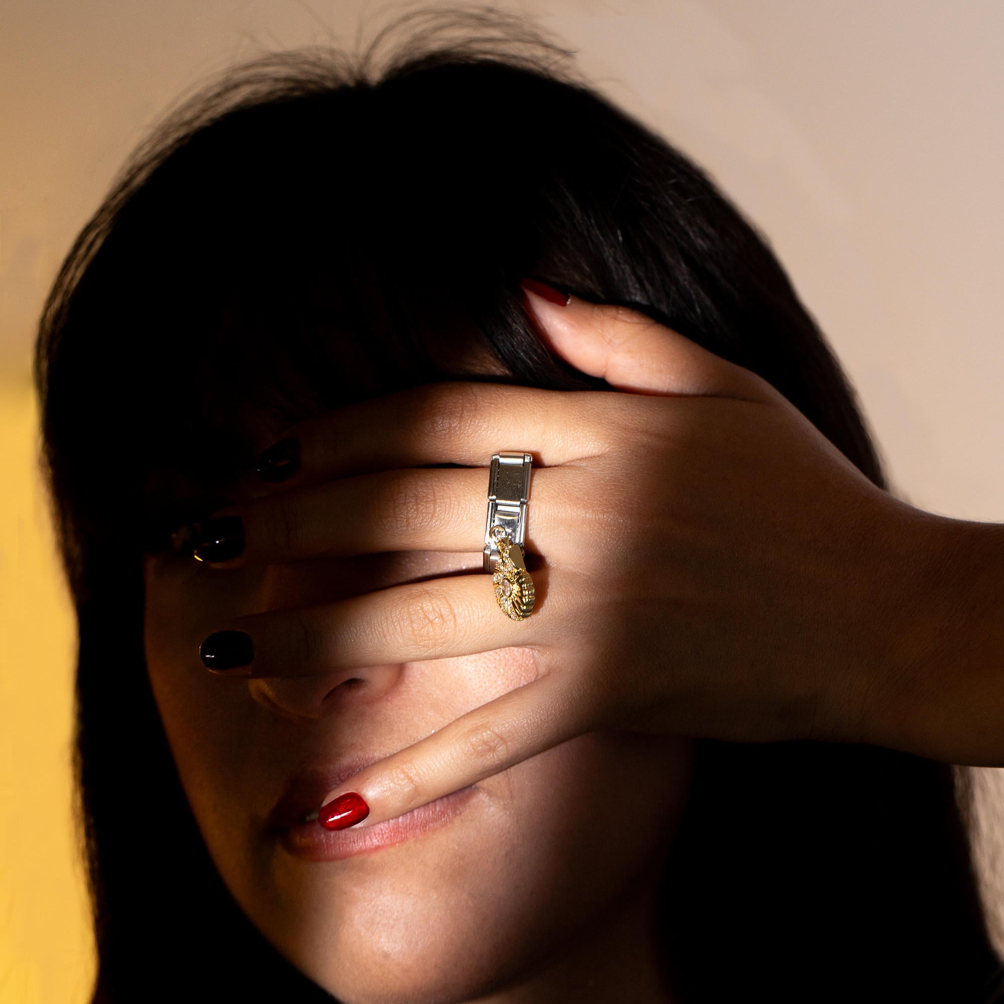 Anillo ajustable eslabon italiano dije caracol circonias 9mm
