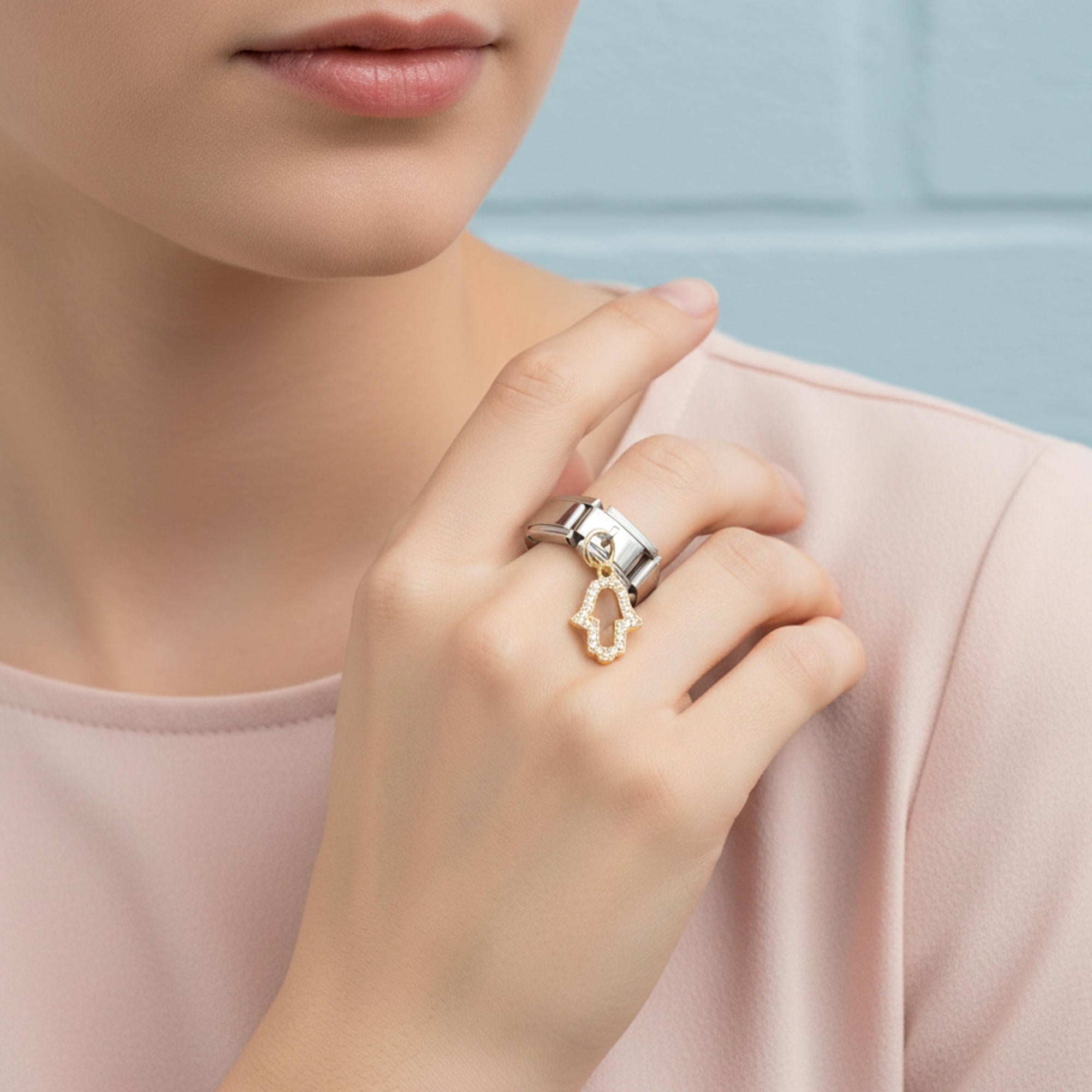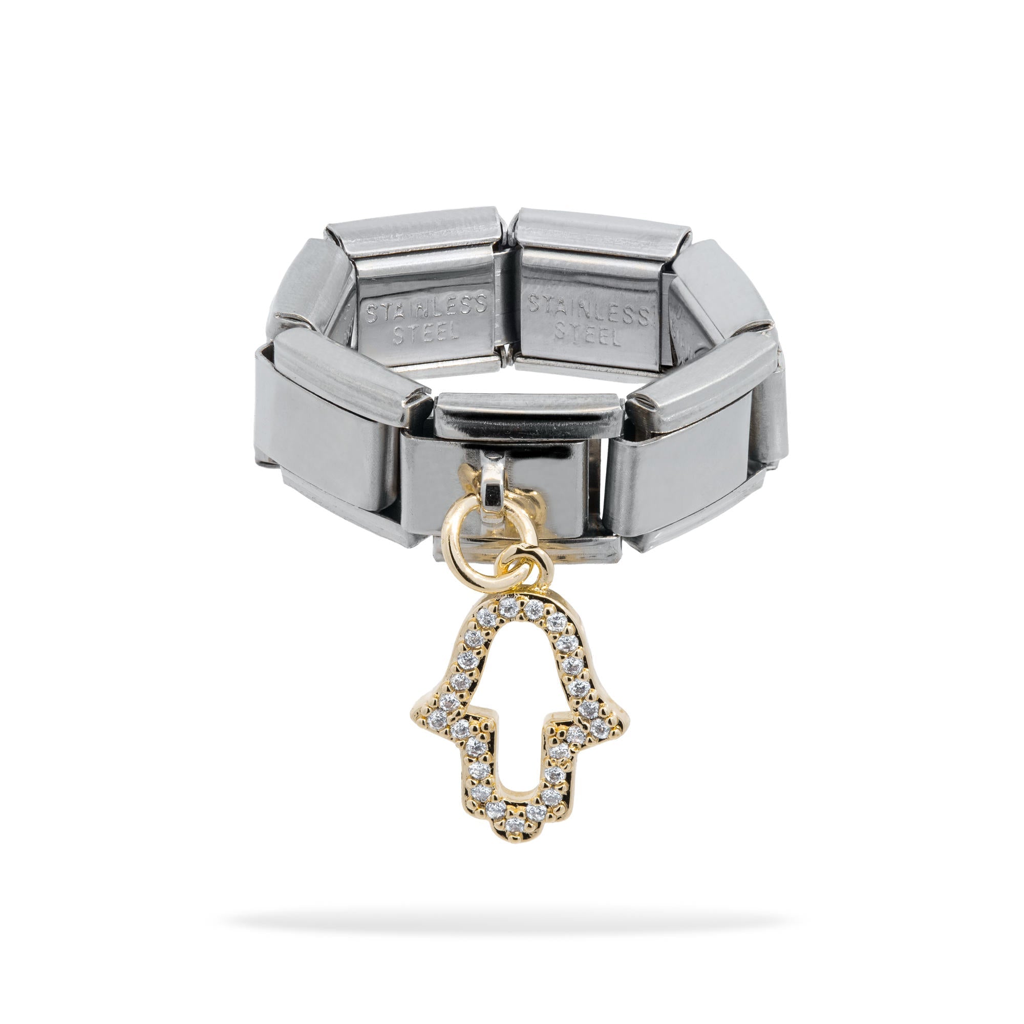 Anillo ajustable eslabon italiano mano de fatima y circonias 9mm