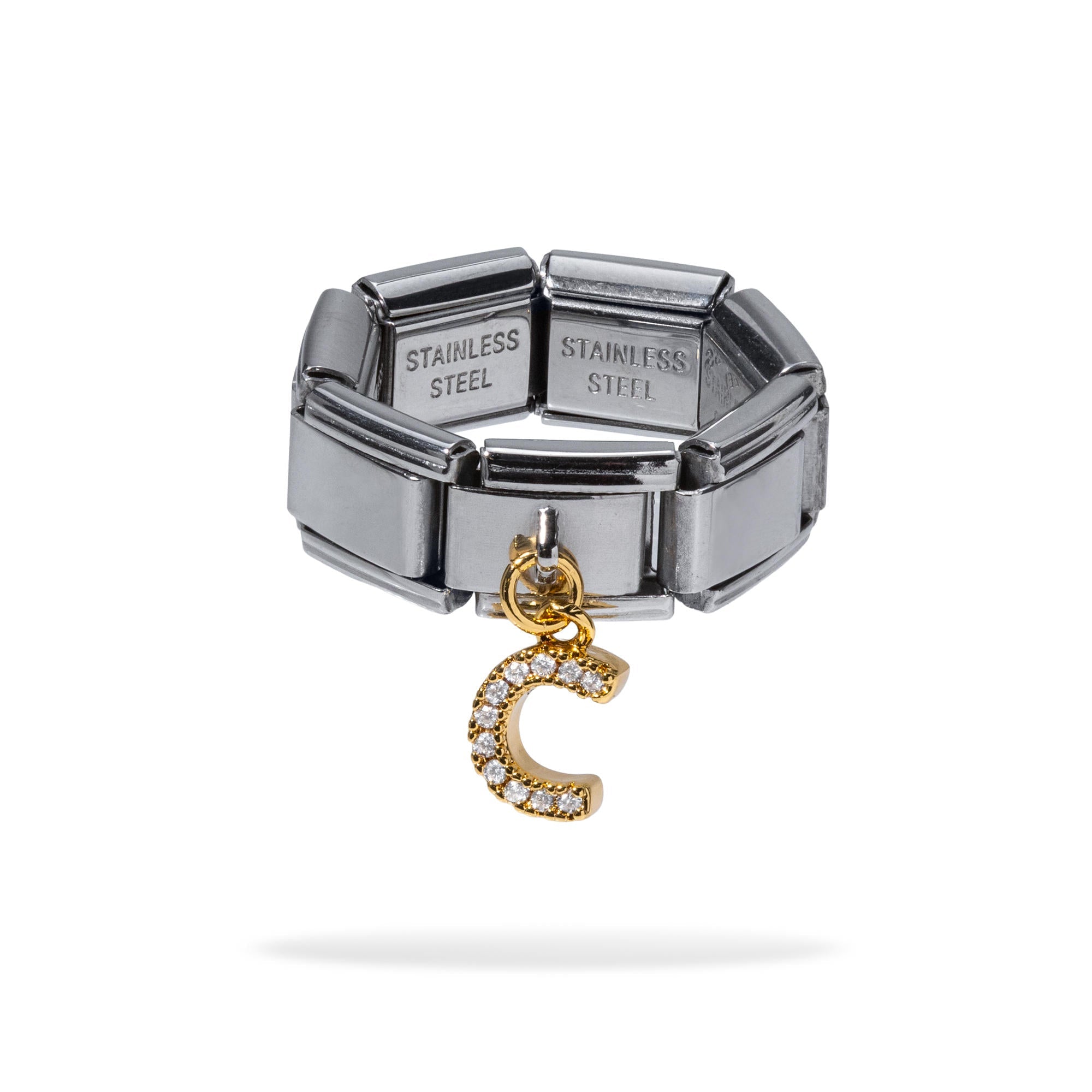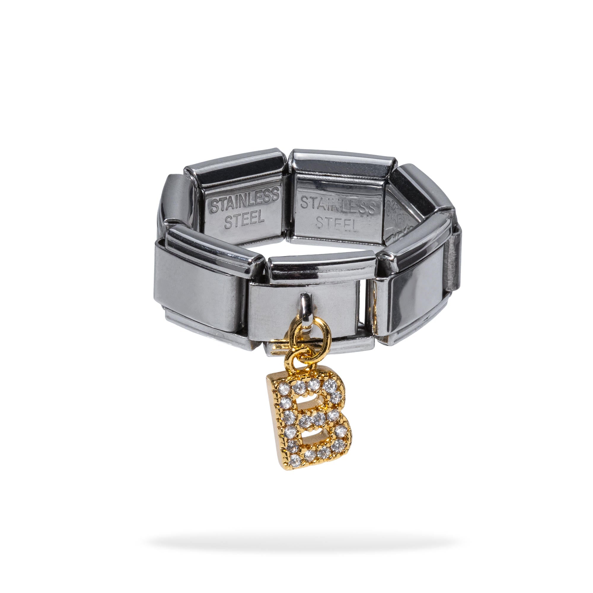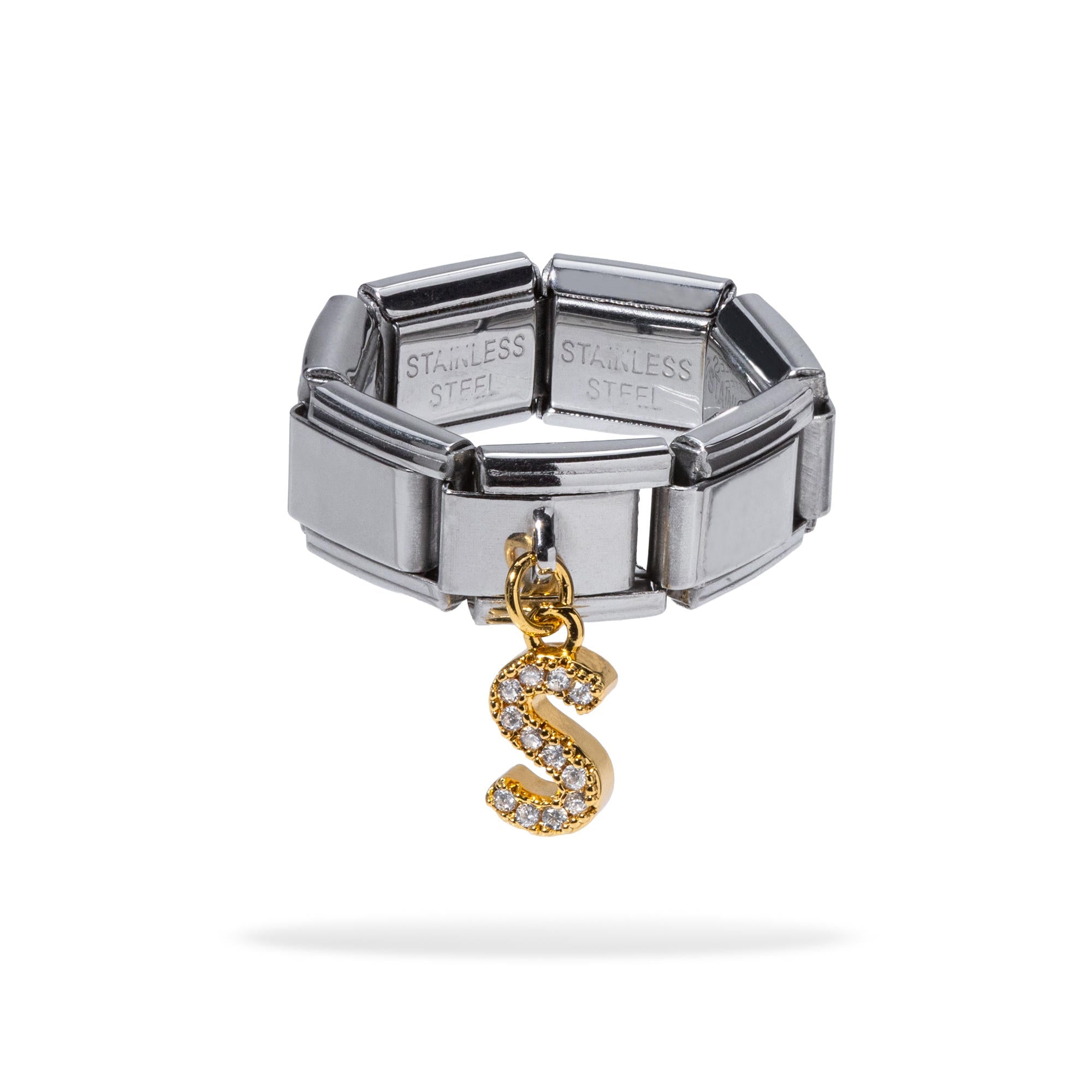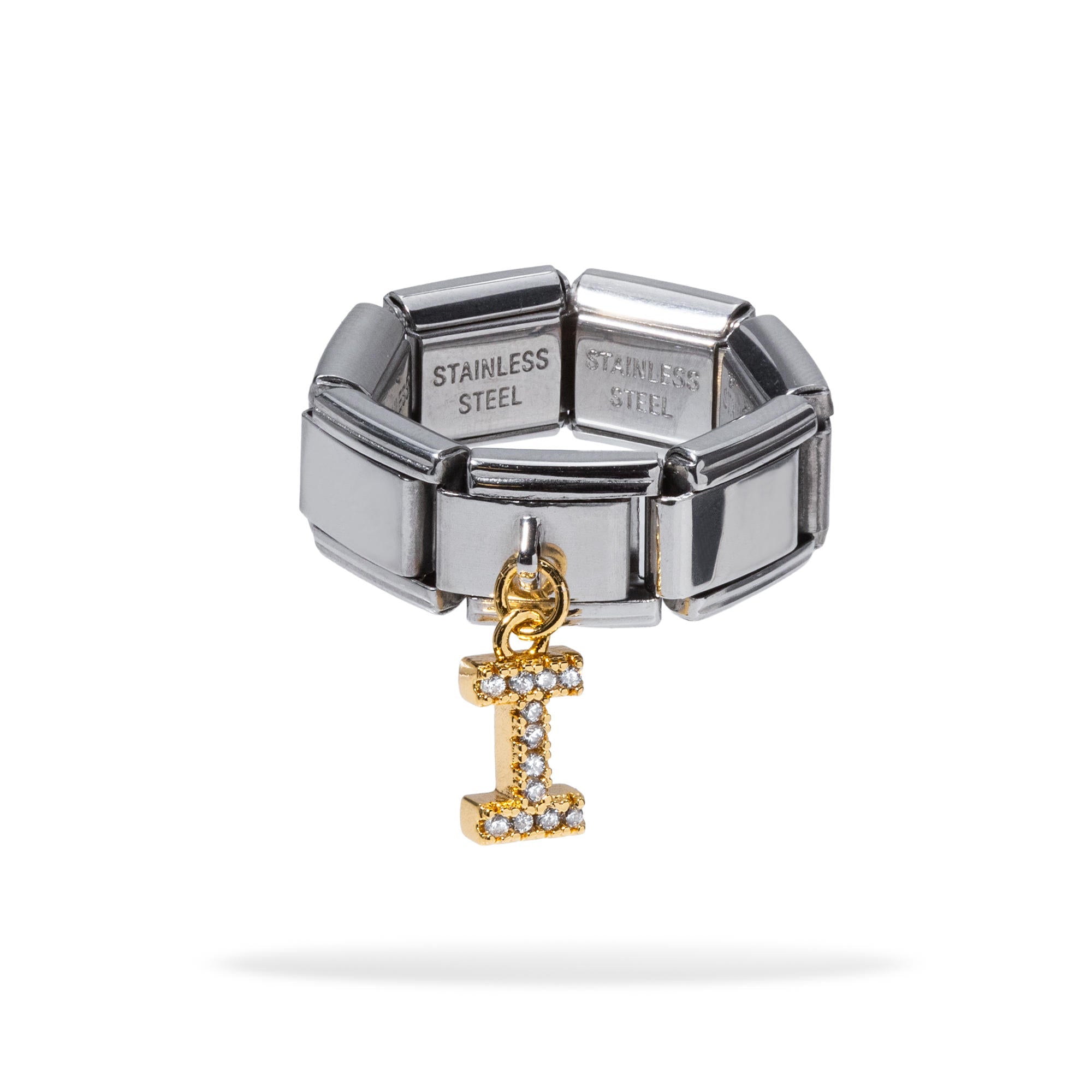 Anillo ajustable eslabon italiano de letra con circonias 9mm