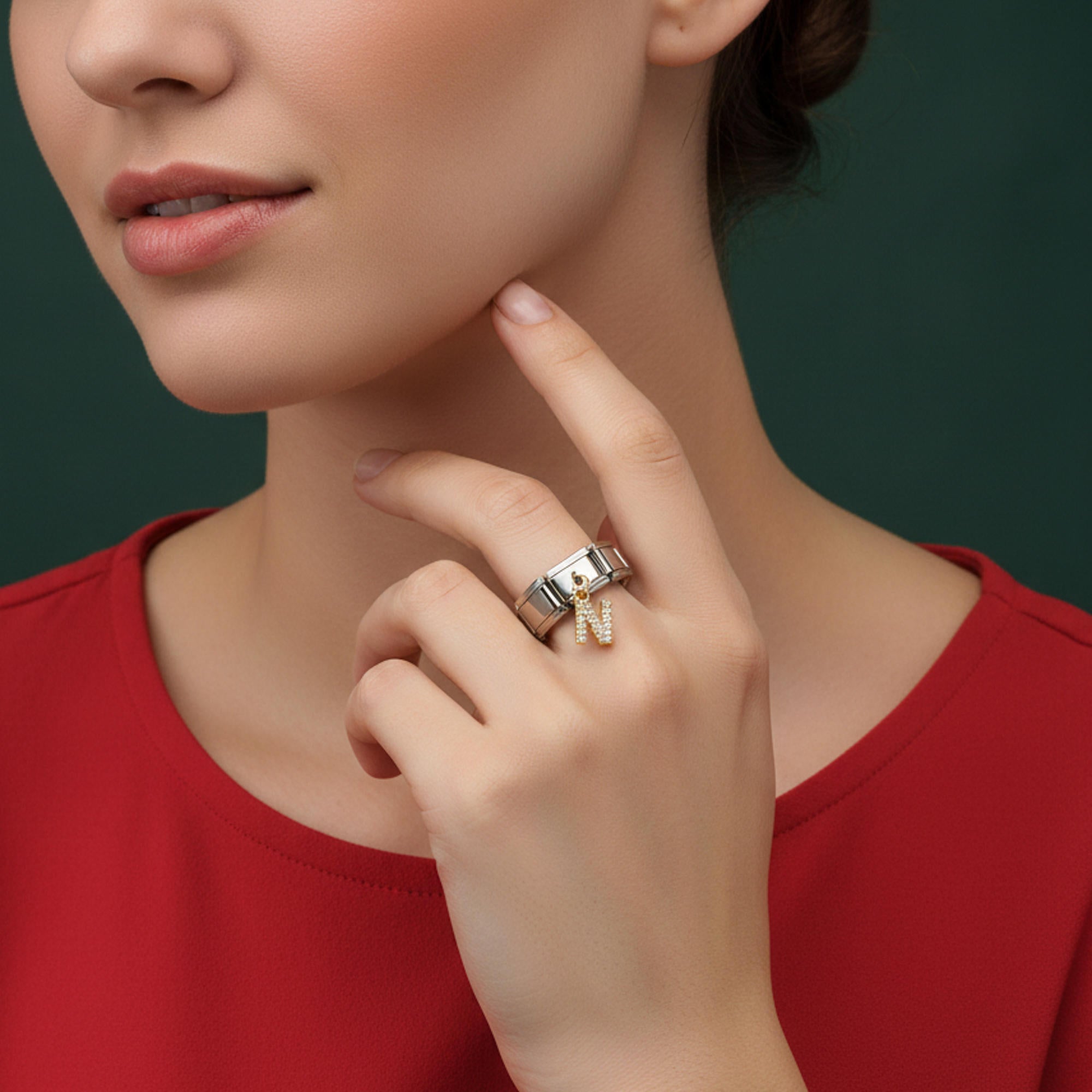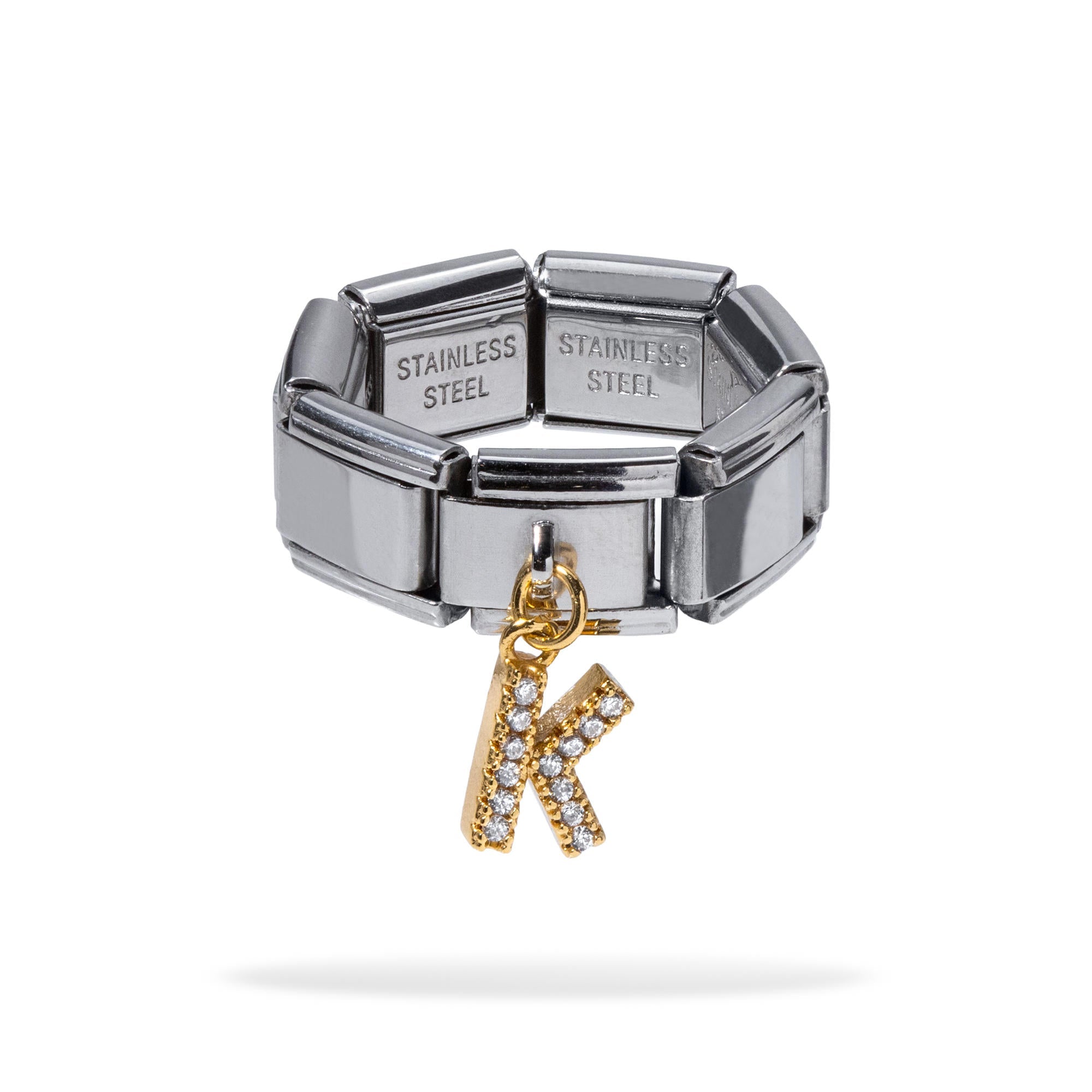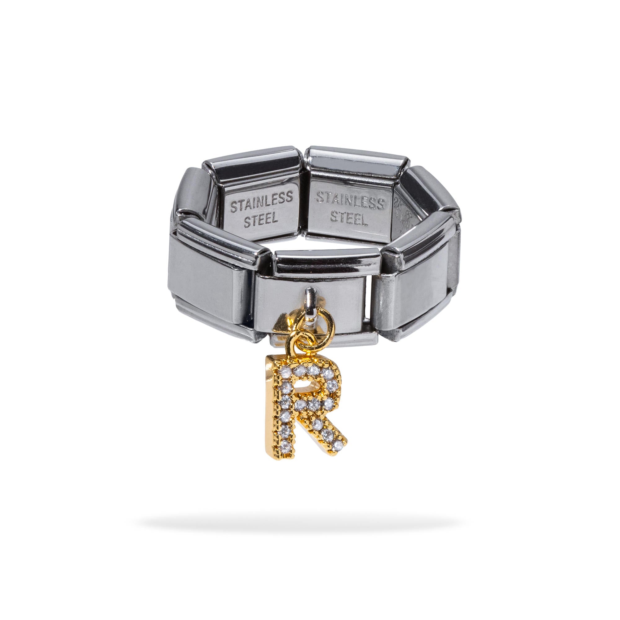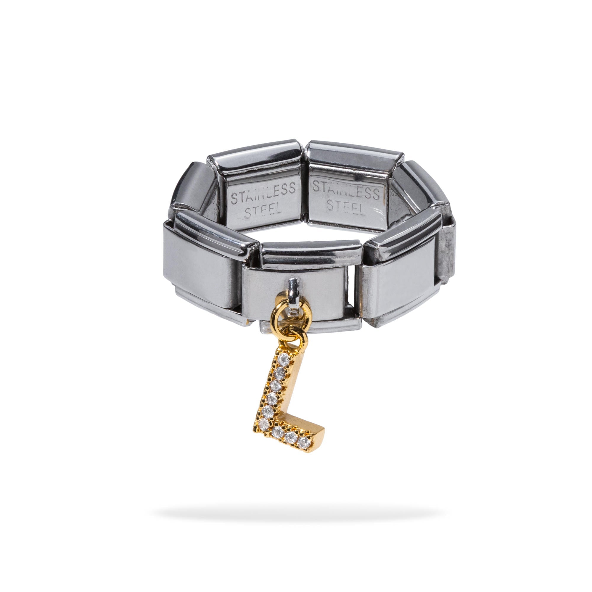 Anillo ajustable eslabon italiano de letra con circonias 9mm