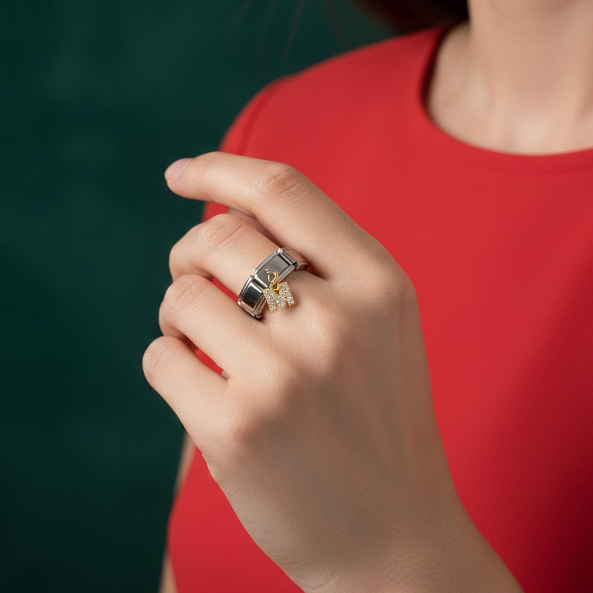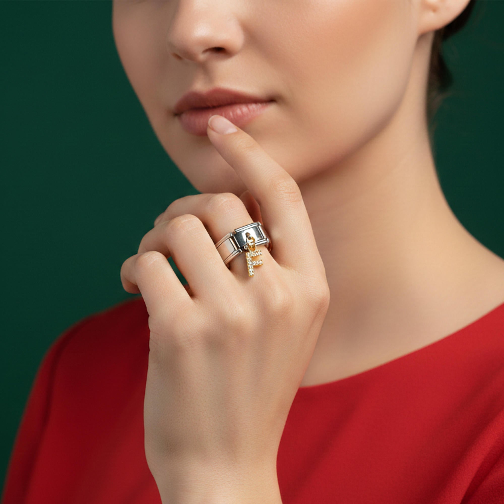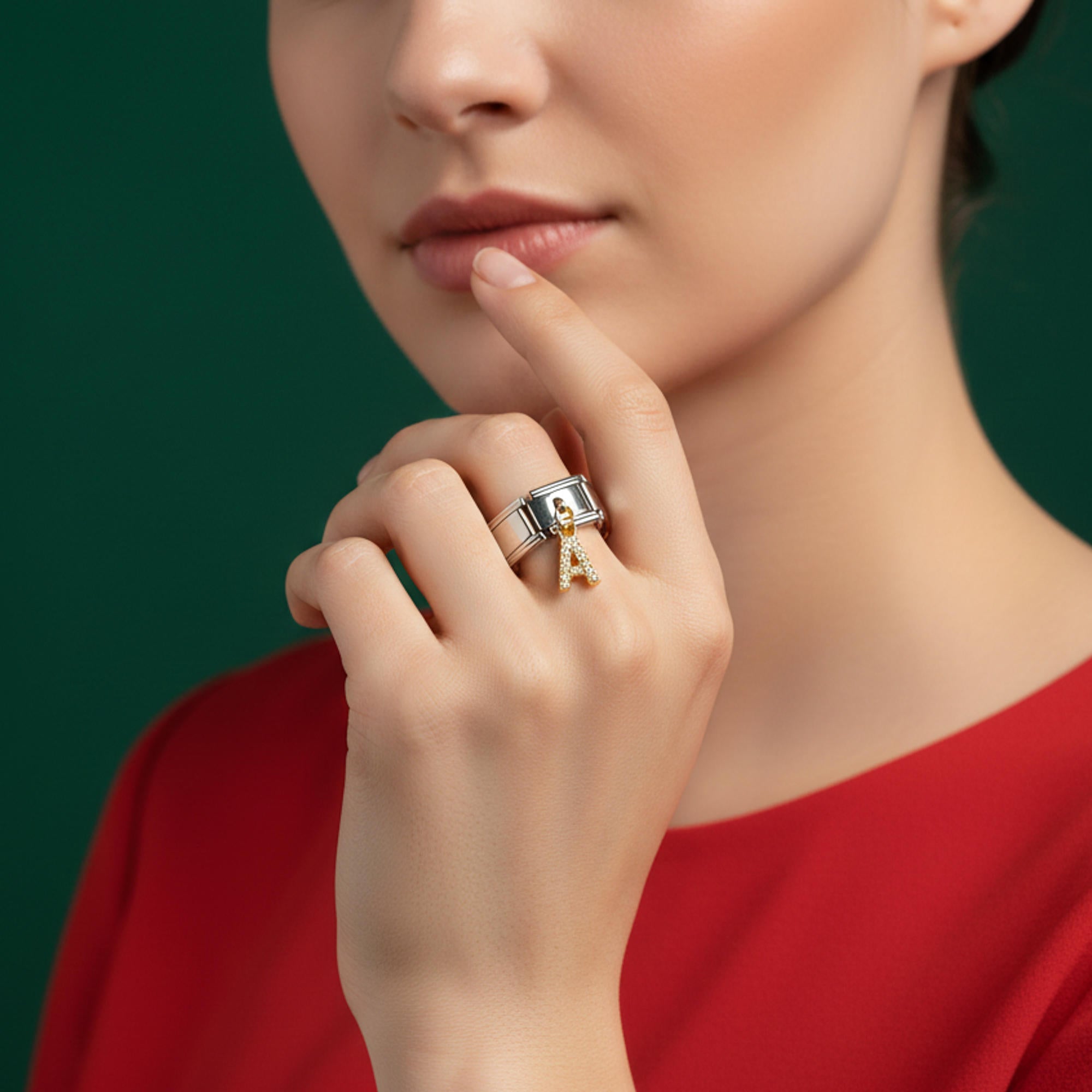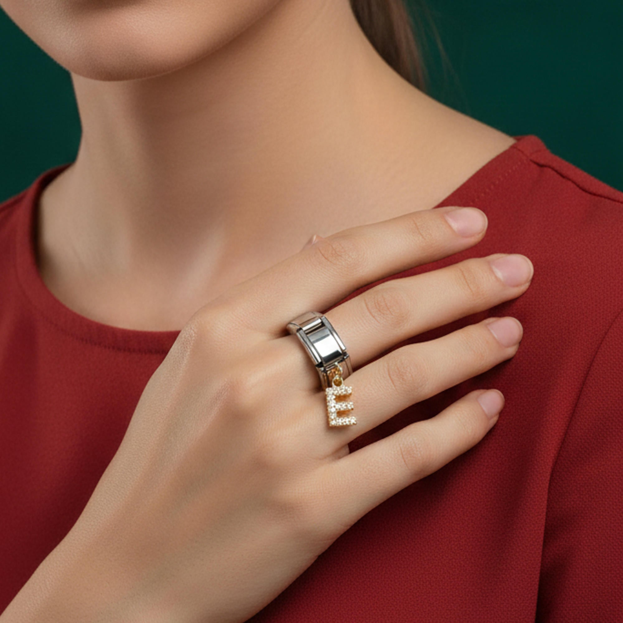 Anillo ajustable eslabon italiano de letra con circonias 9mm