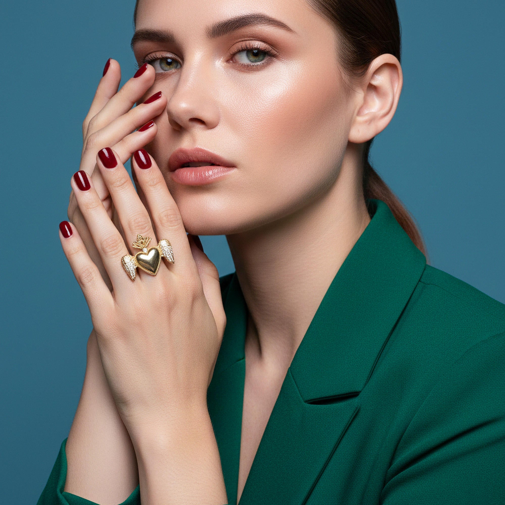 Anillo ajustable del Sagrado Corazon con circonias 28mm