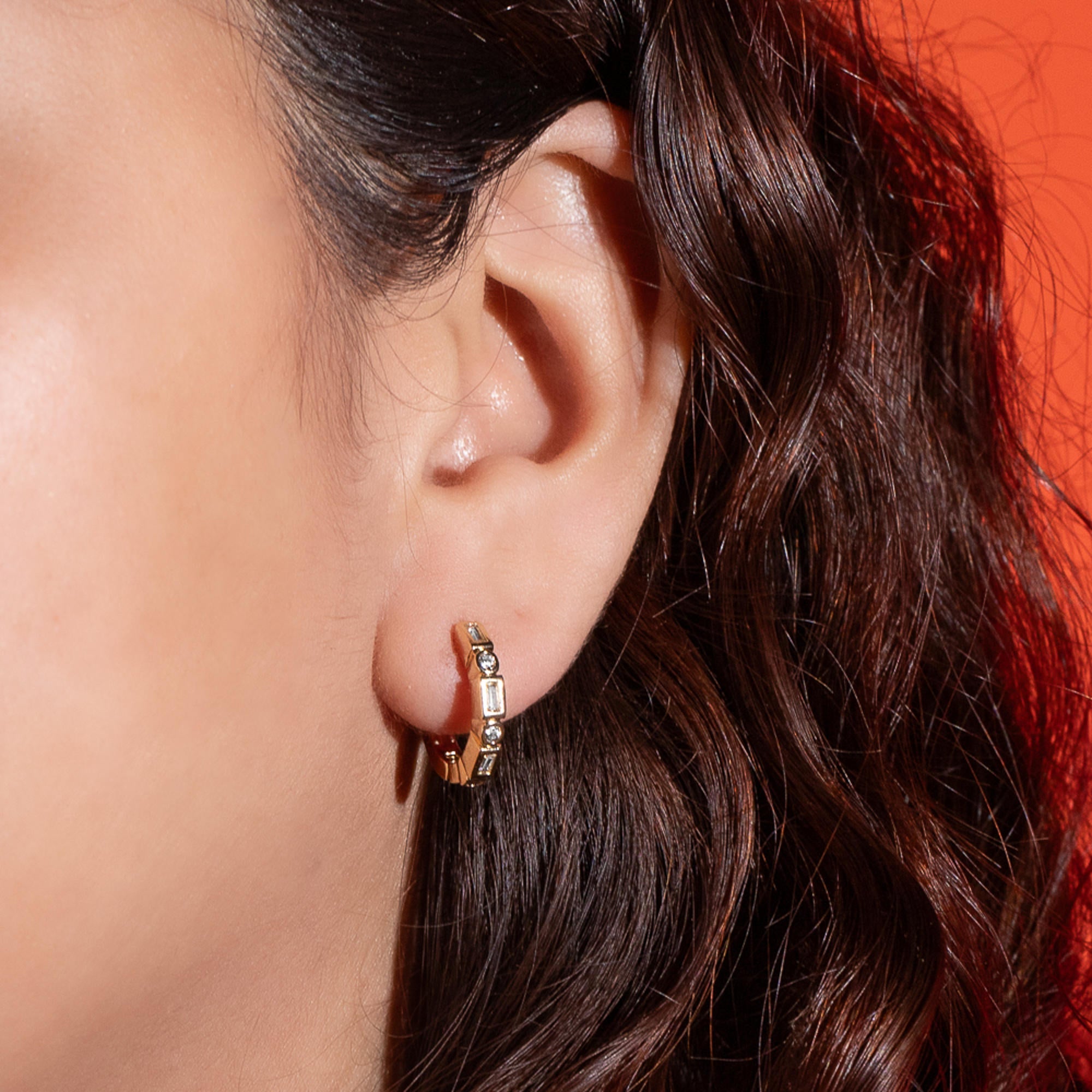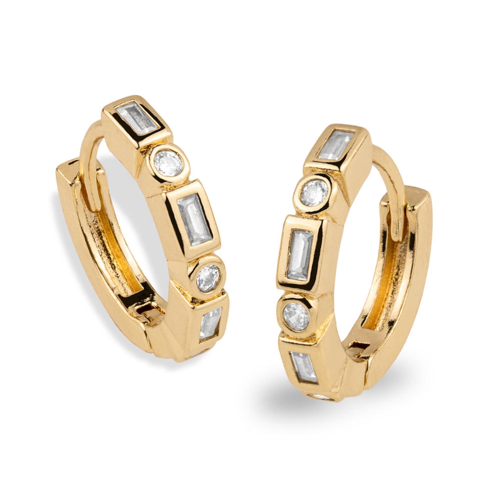 Huggies con circonias redondas y rectangulares 16mm