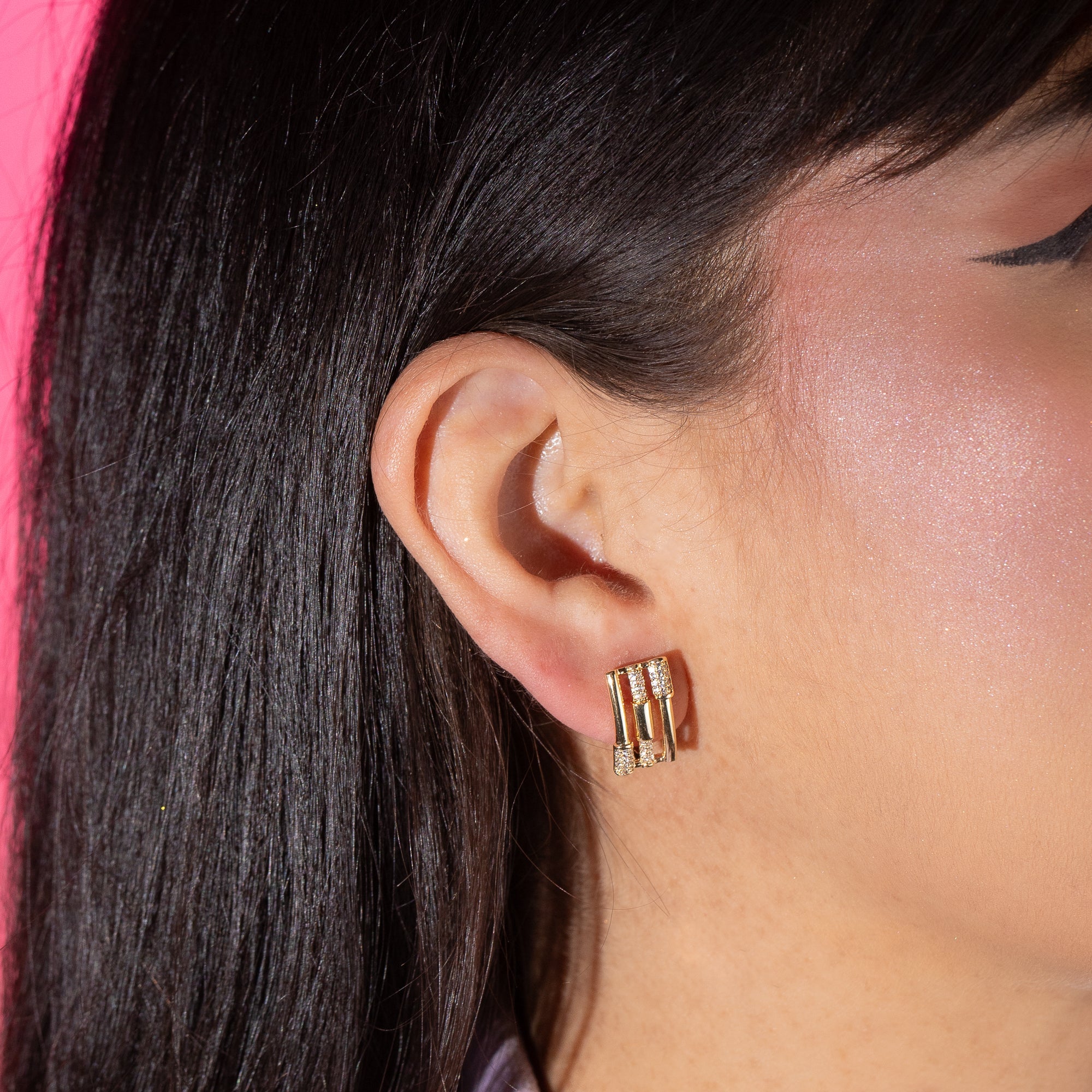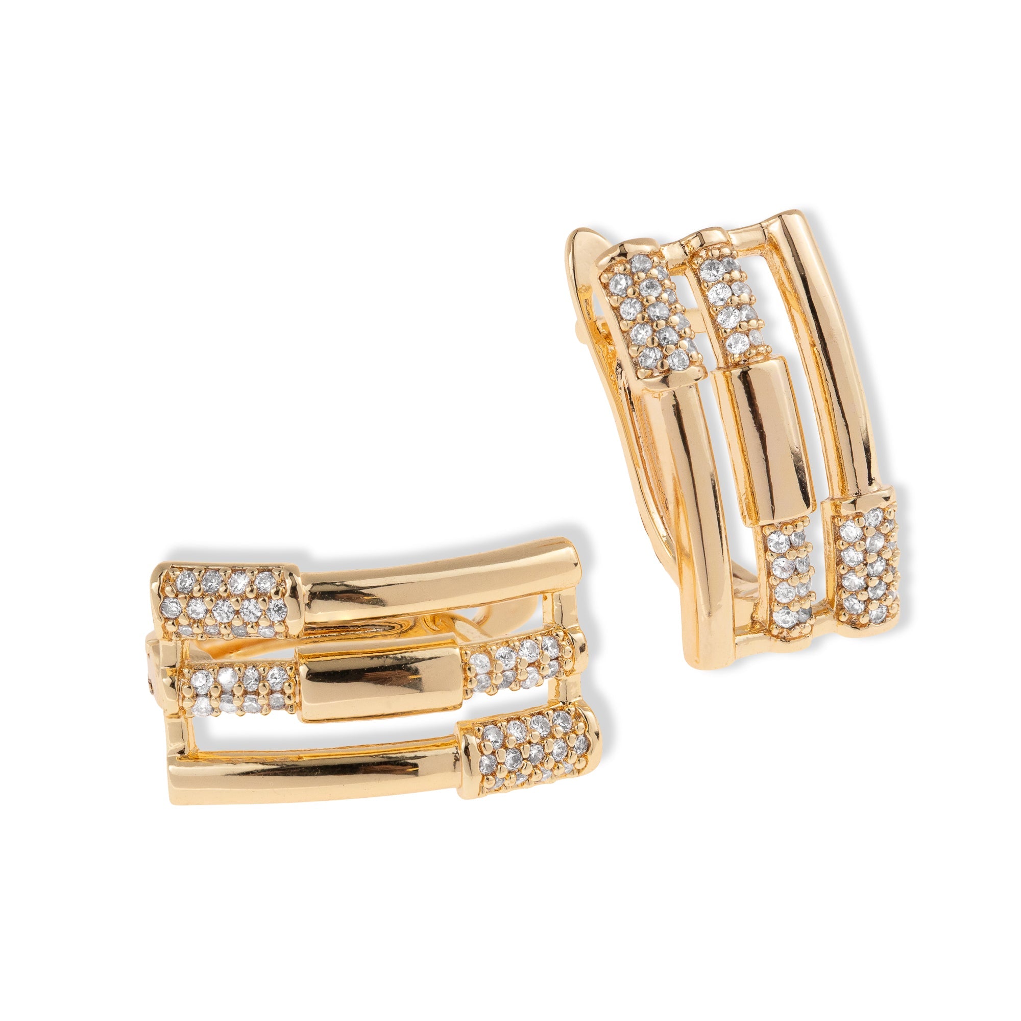 Arracada rectangular de lineas y circonias 16mm