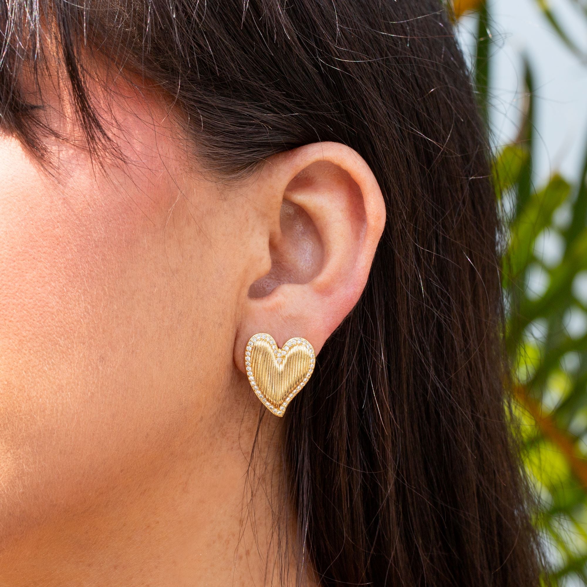 Arete de corazon acanalado con borde de circonias 22mm