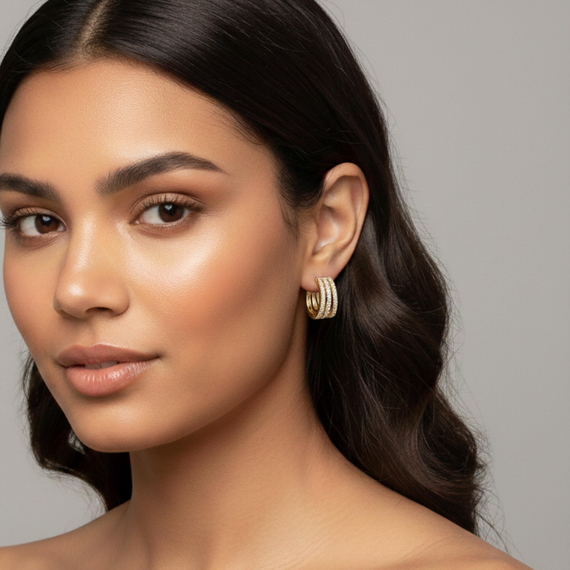 Arracada con triple linea de circonias 14mm