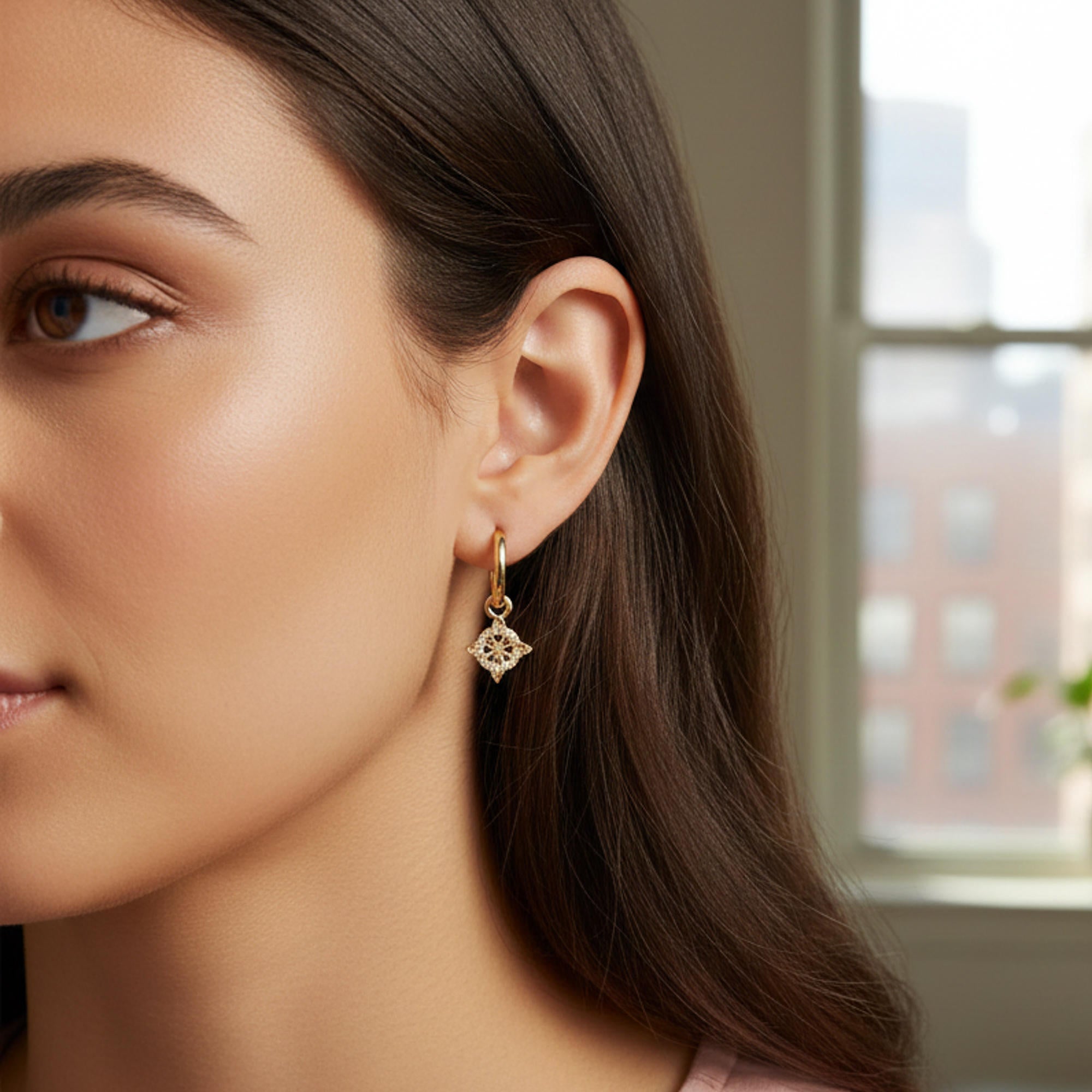 Huggies con colgante nudo de bruja con circonias 29mm