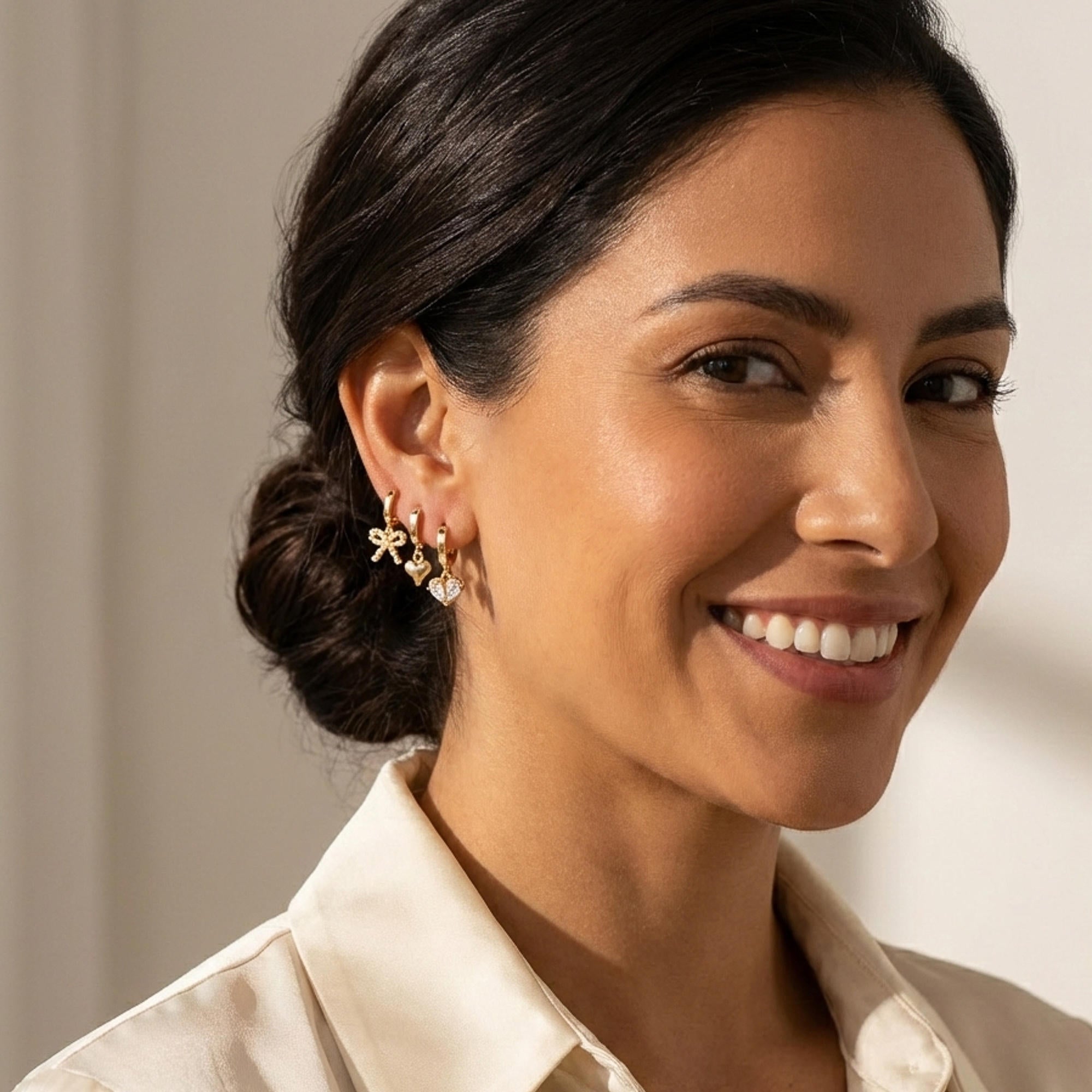 Set Huggies colgante de corazon y moño con perlas y circonias 20mm