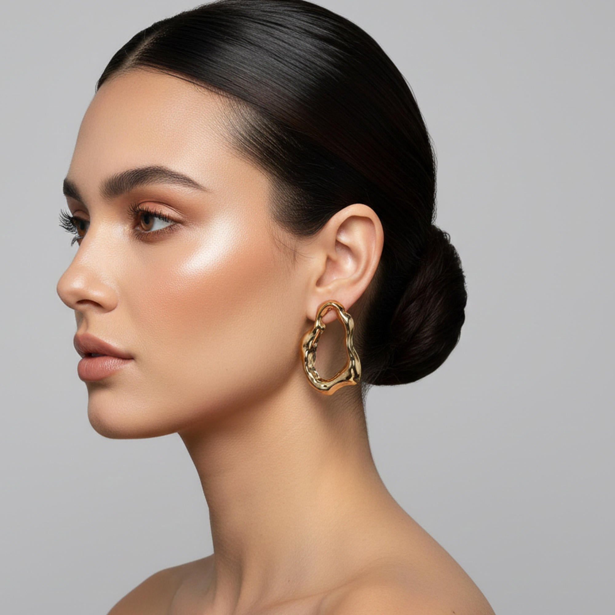 Arete largo con diseño organico ovalado 70mm
