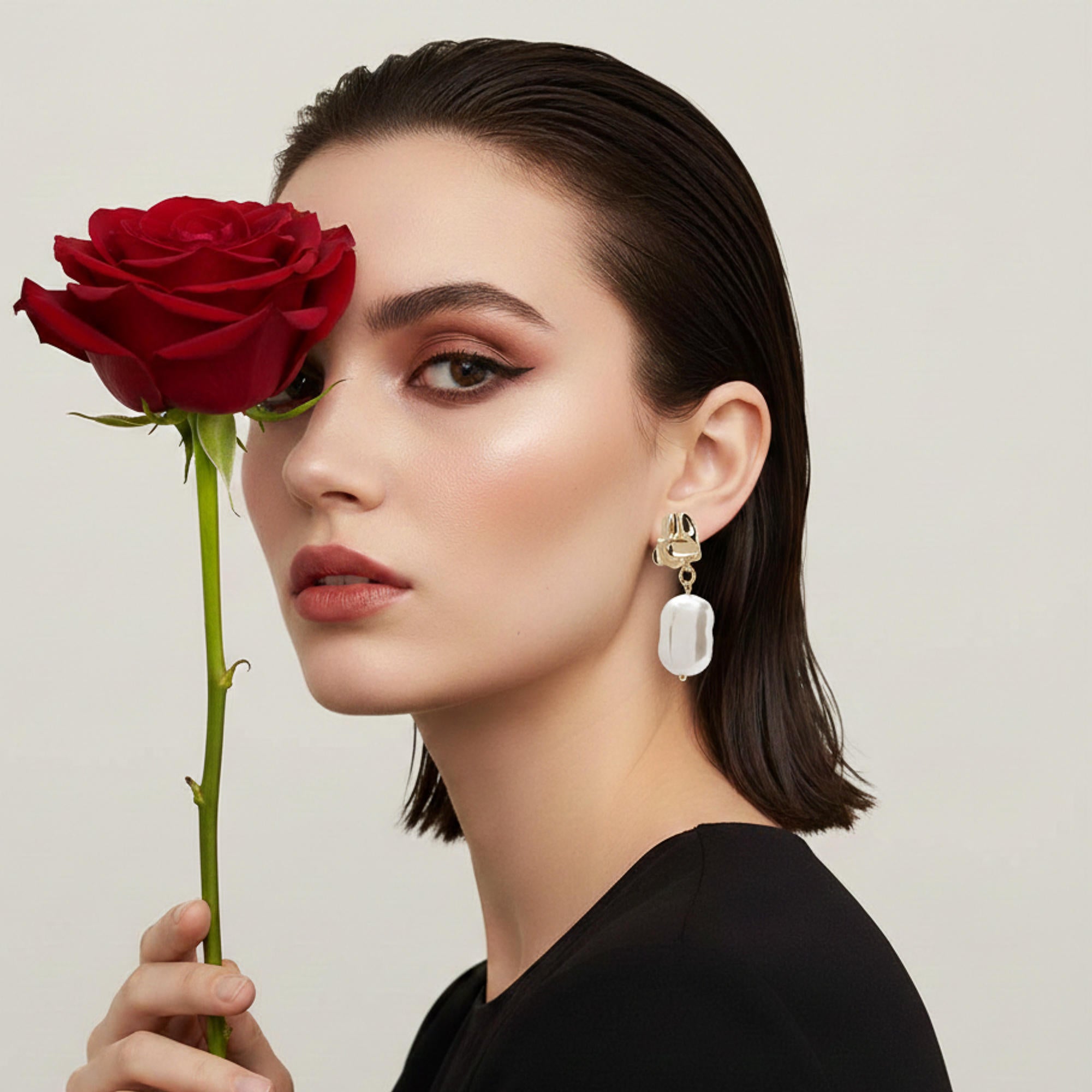 Arete irregular con colgante de perla 44mm
