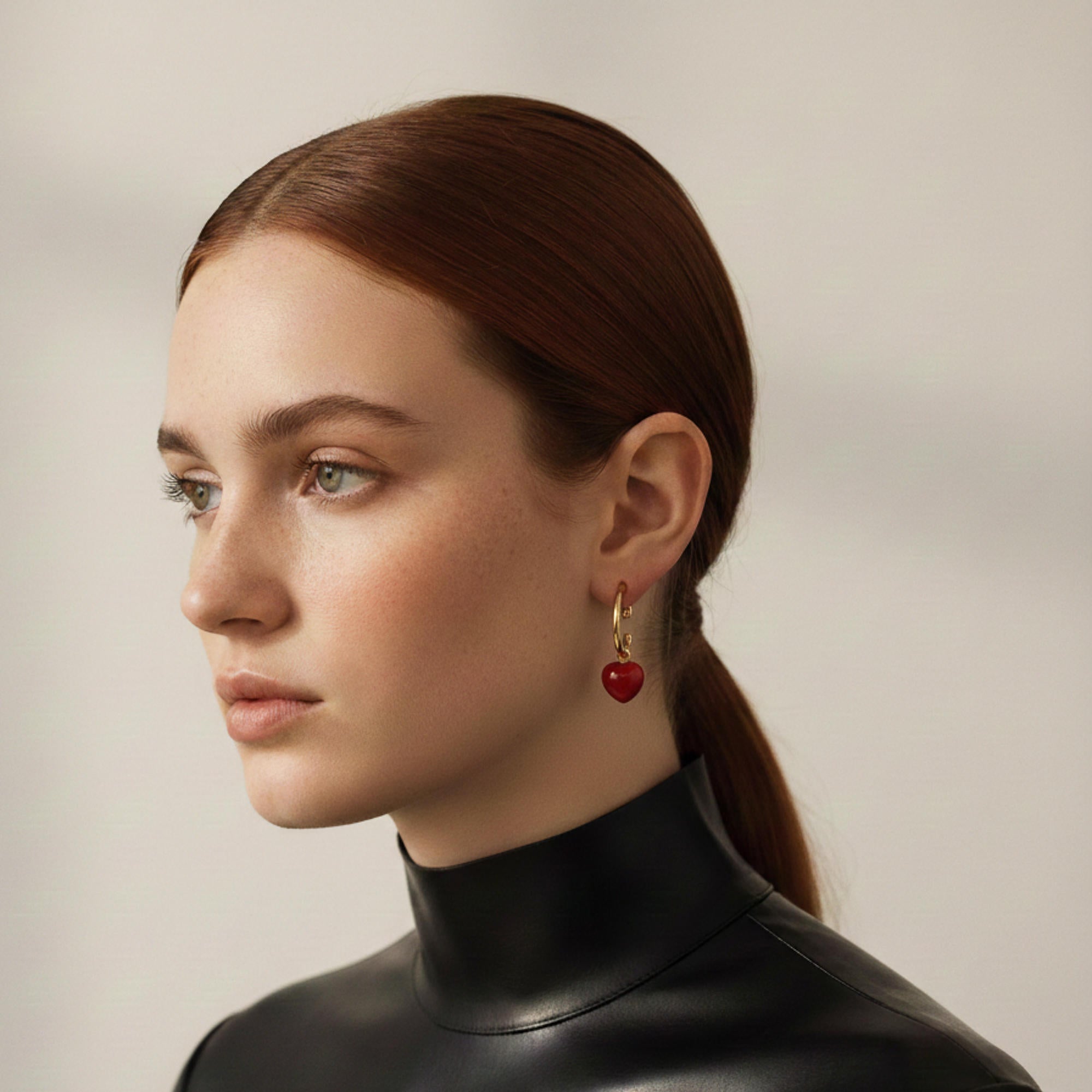 Media arracada tubular con colgante de corazon esmaltado 35mm