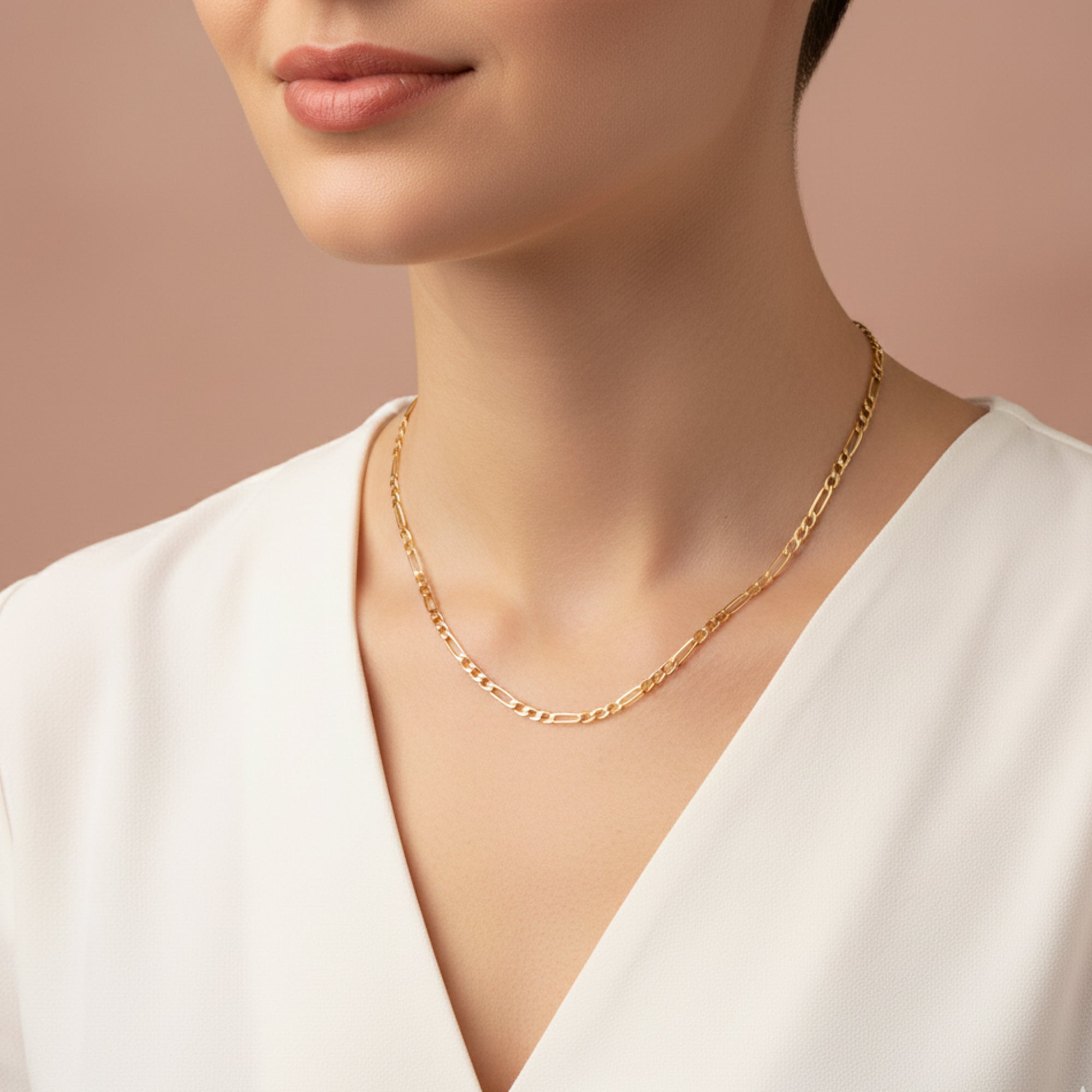 Material: Aleación de metal con chapa de oro Medidas: Largo 45-50cm y Ancho 4mm / Peso: 8.4 Gramos SKU: JCD0064-14P