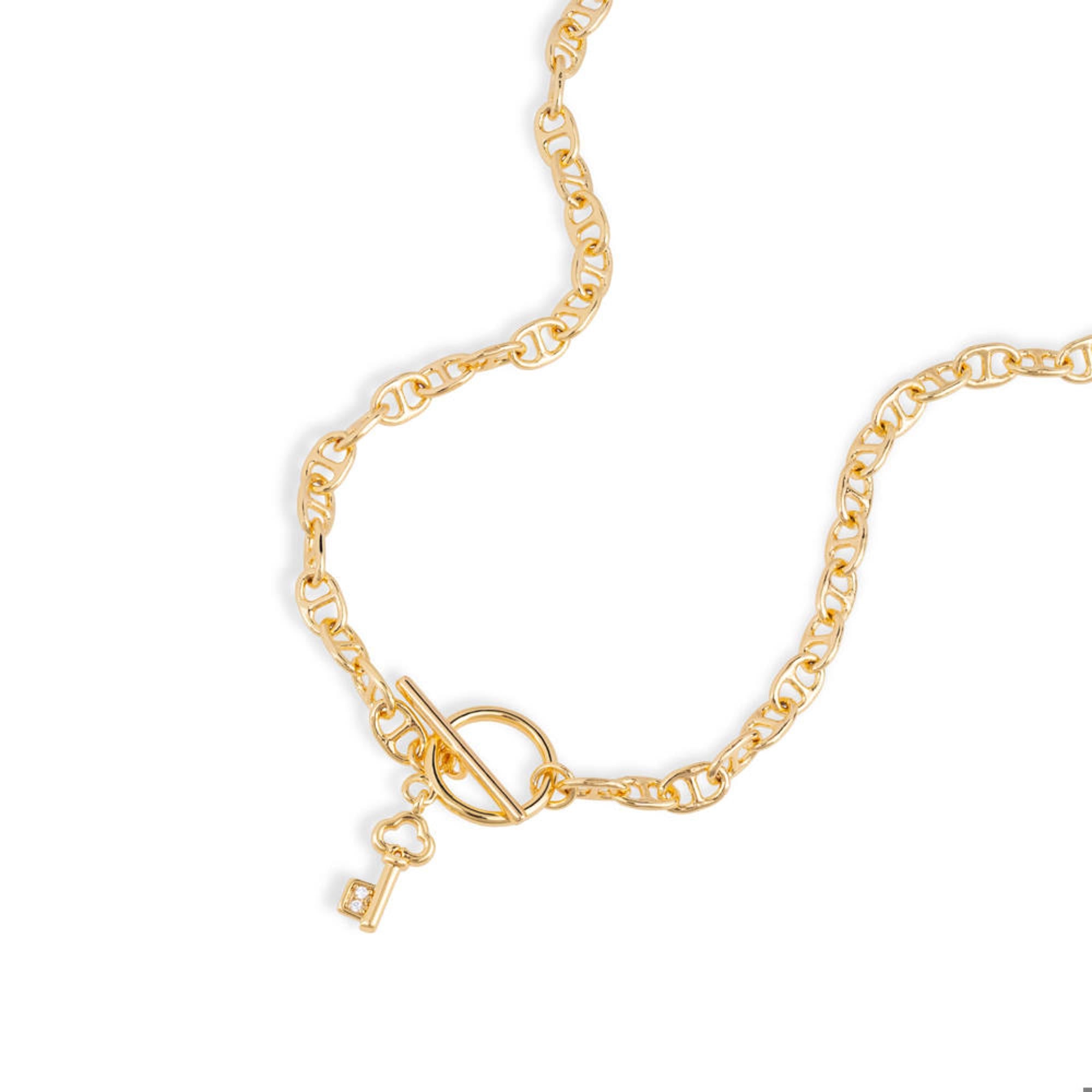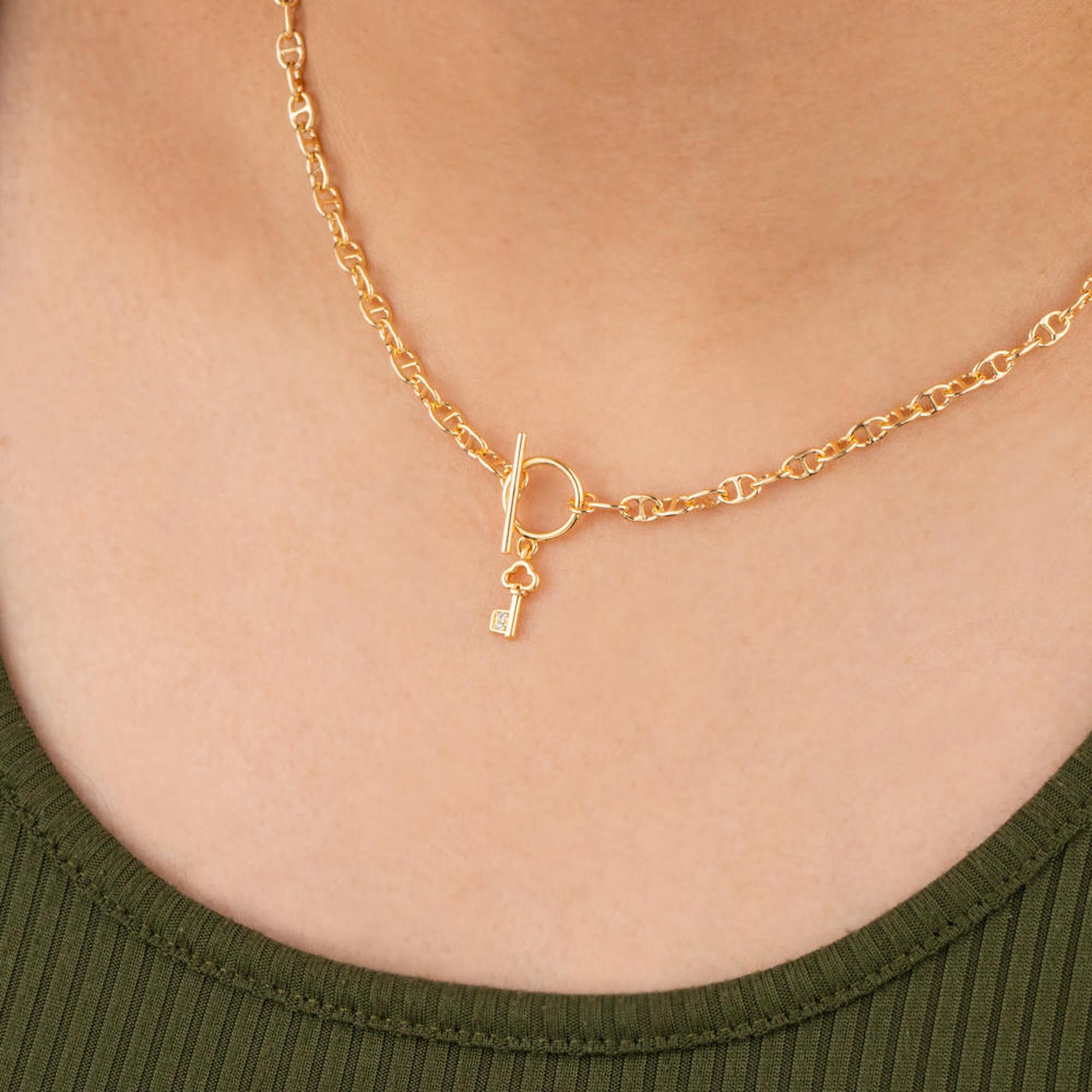 Collar de eslabones marineros y llave con circonias 45-50cm