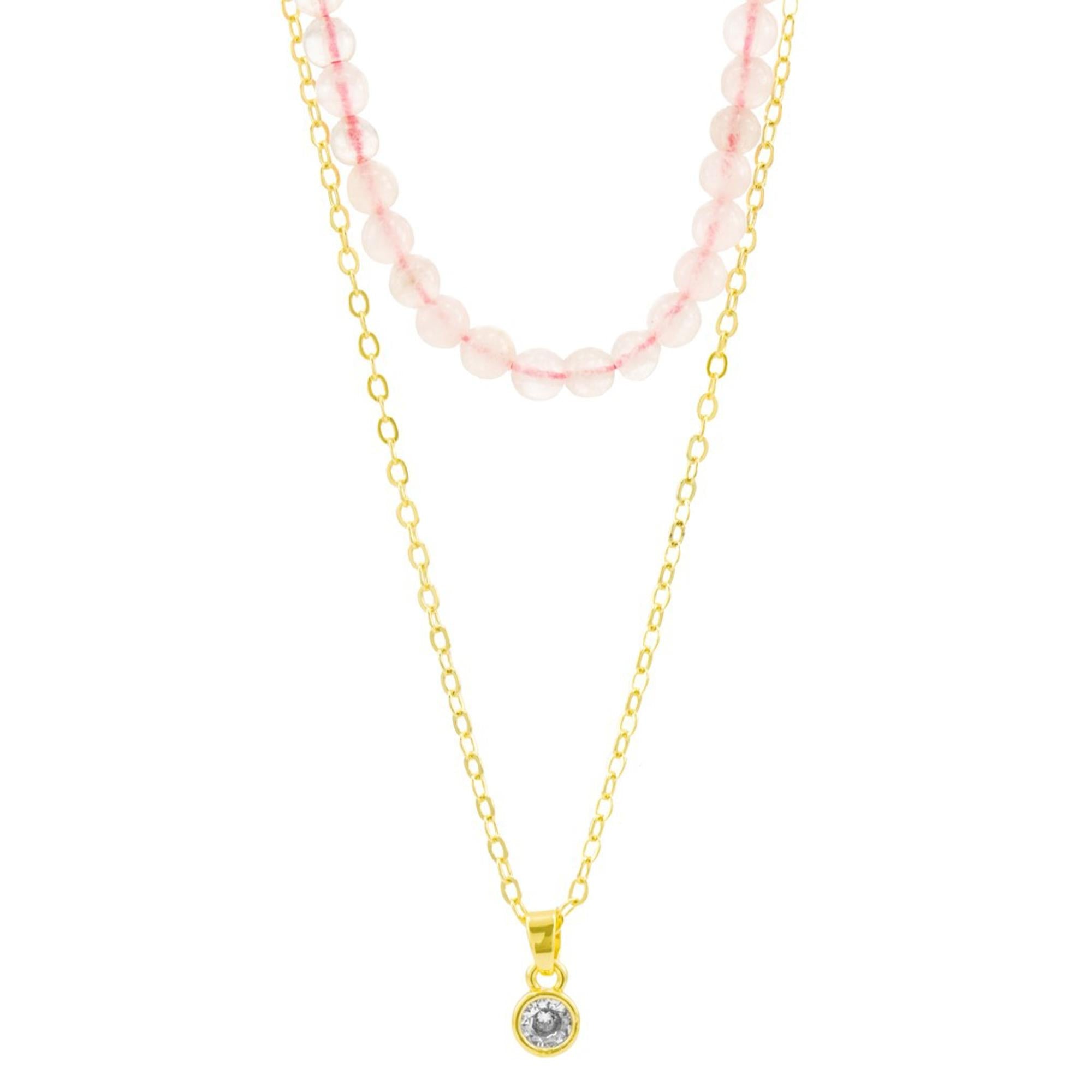 Collar doble bola cuarzo rosa circonia 40-50cm
