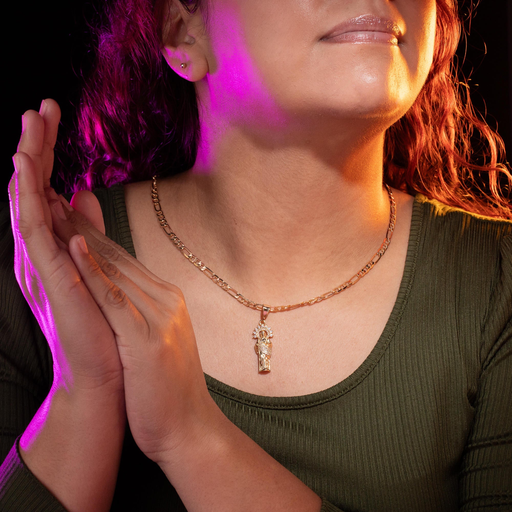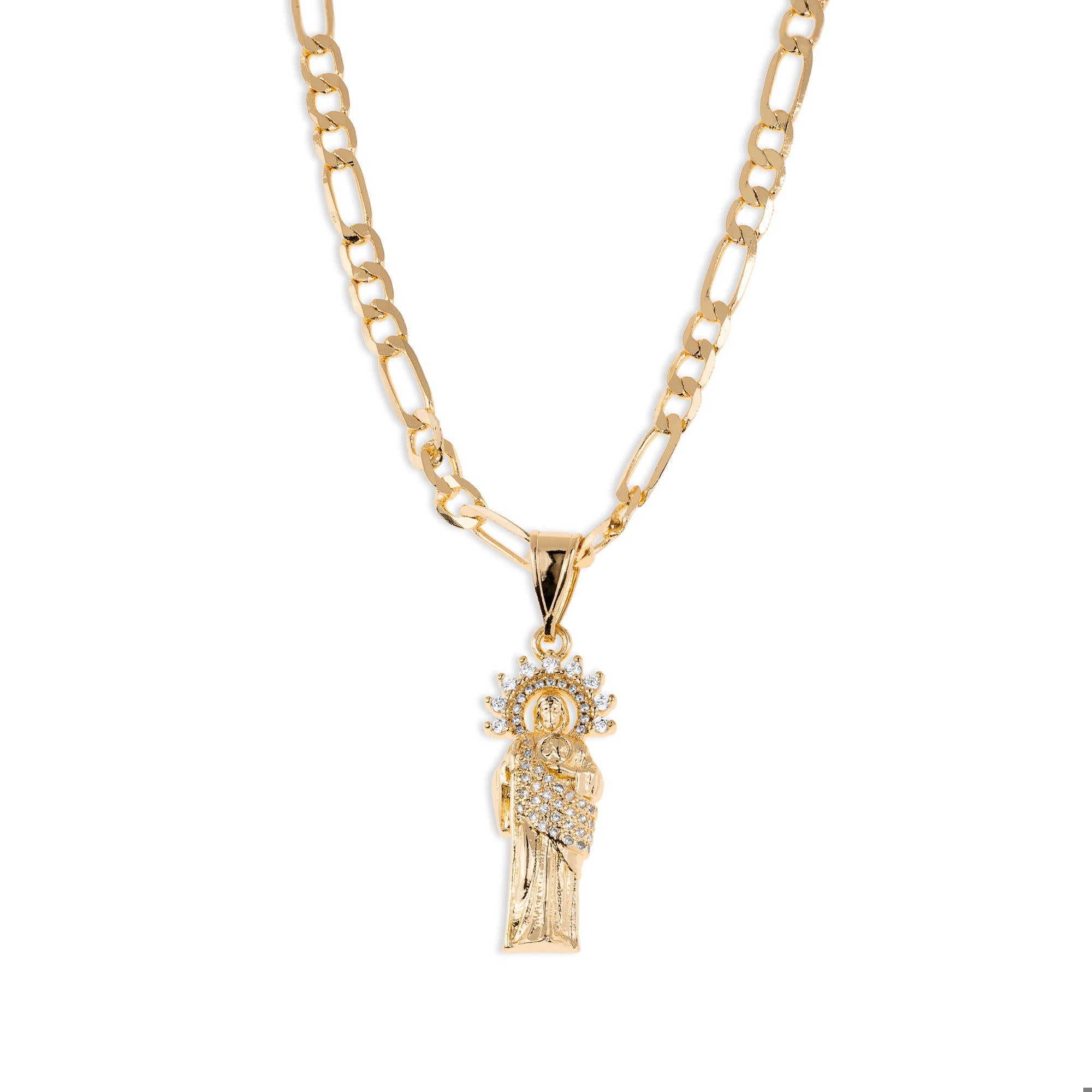 Collar eslabon 3x1 dije san judas tadeo con circonias 60cm