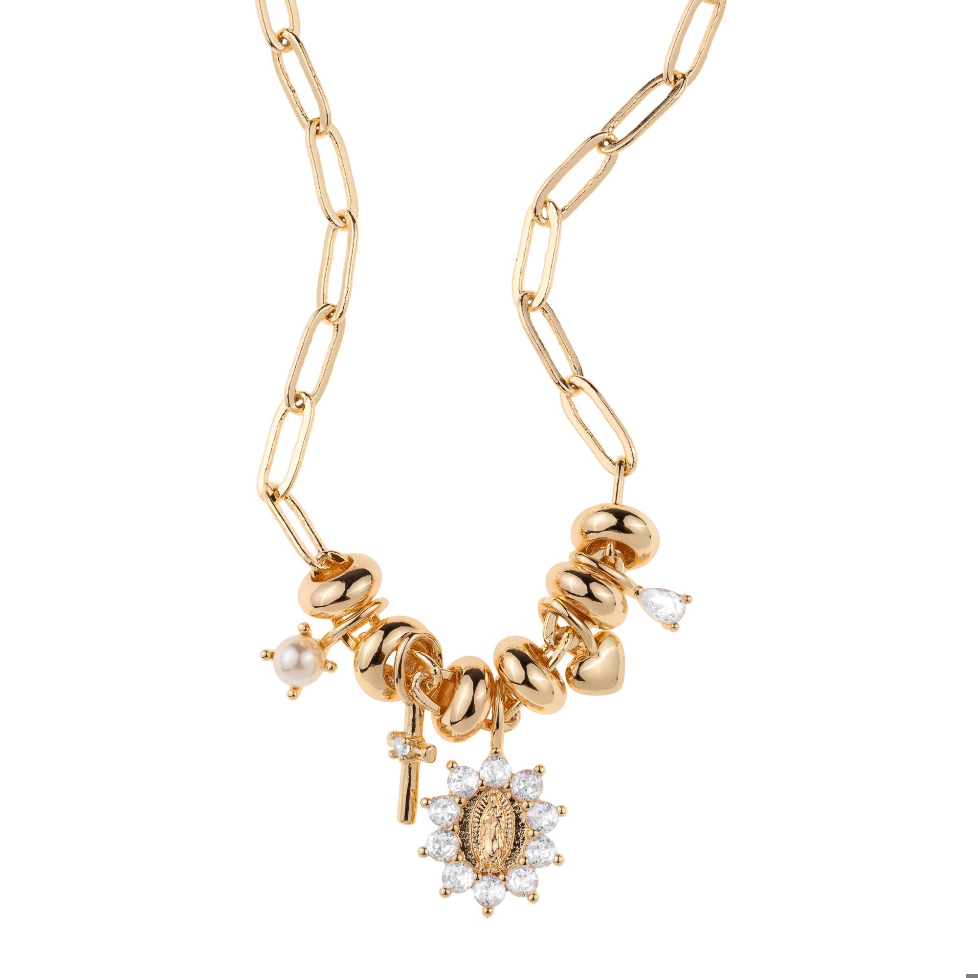 Collar con Medalla de Virgen de Guadalupe y cruz con circonias 45-50cm