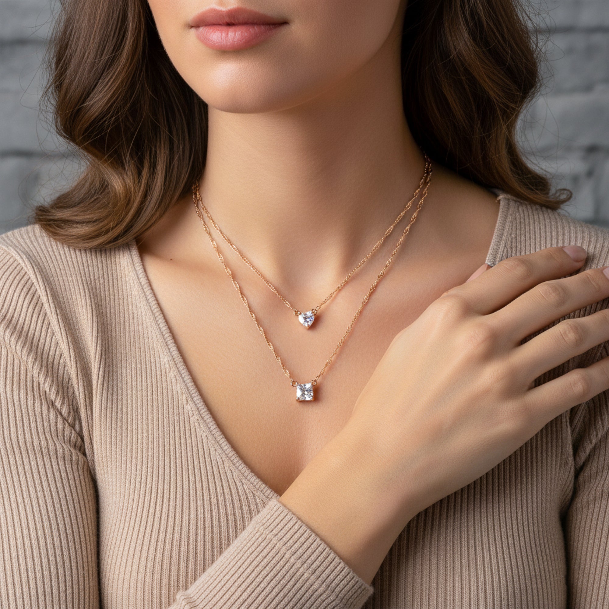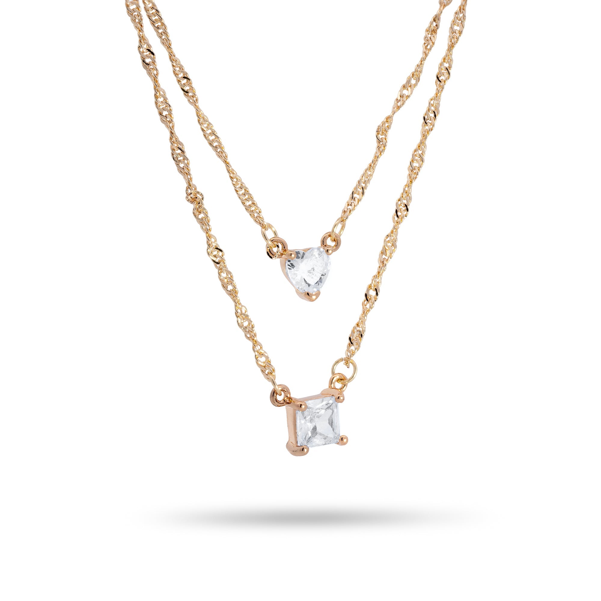 Collar doble cadena torzal circonia cuadrada y corazon 45-50cm