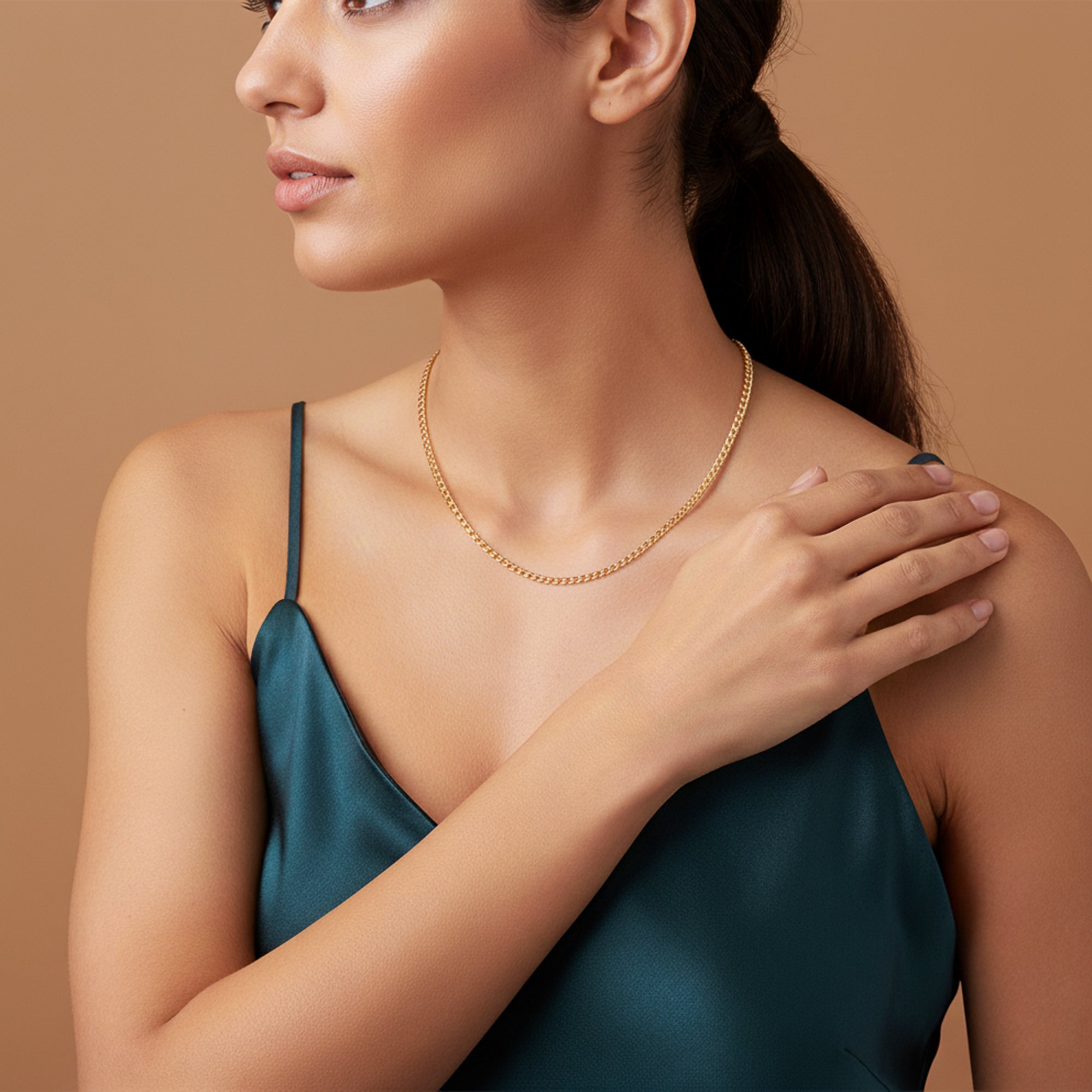 Material: Aleación de metal con chapa de oro Medidas: Largo 35-40cm y Ancho 4mm / Peso: 6.2 Gramos SKU: JCL0315-14P